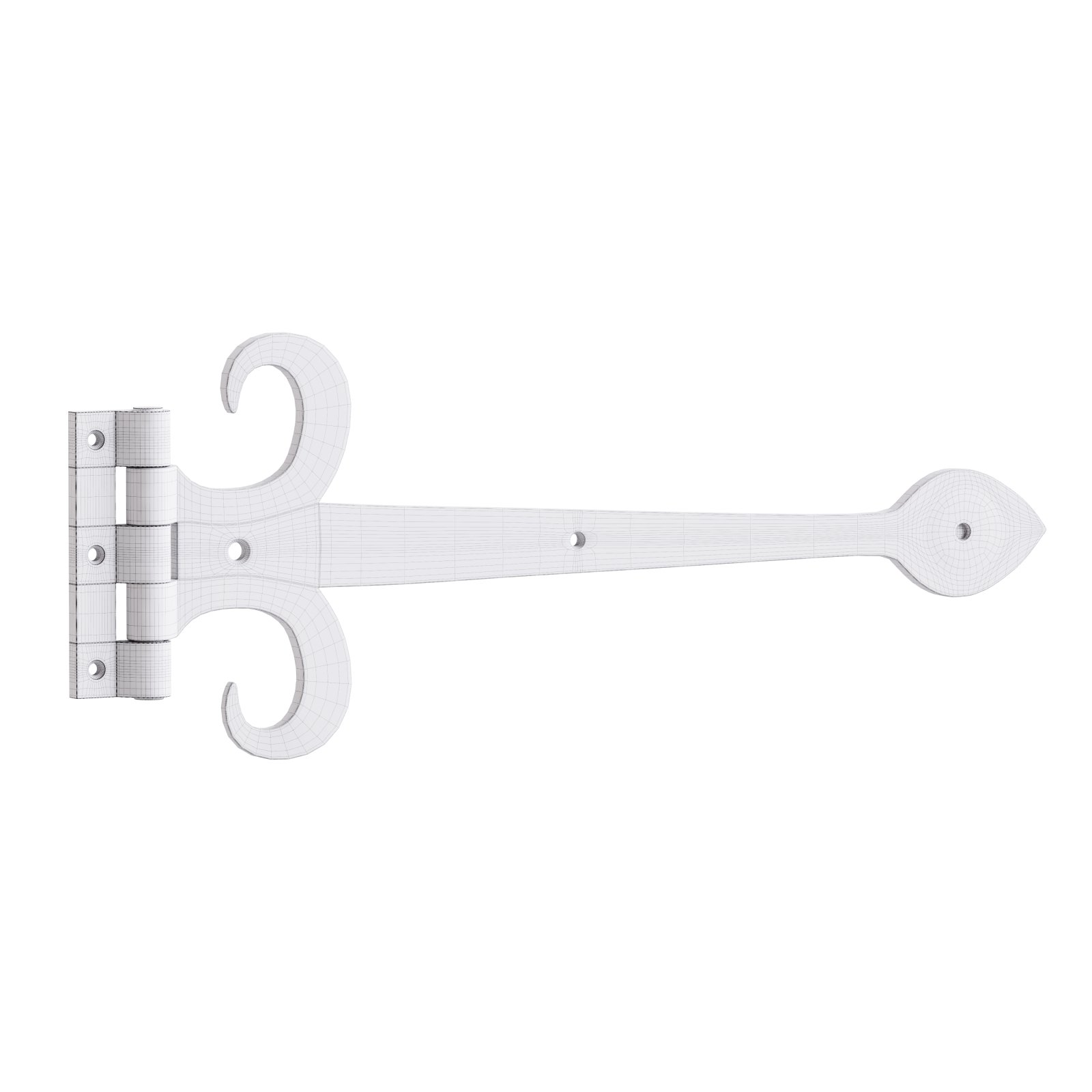 Tags: strap hinge, gate hinge, heavy-duty hinge, wrought iron hinge, fleur de lis hardware, door hardware 3D, realistic metal hinge, gate fitting model, historic hinge, architectural ironwork, traditional hinge model, rustic decor hinge, medieval hardware, exterior door hinge, blacksmith style hinge, vintage gate hinge, iron strap model, high poly hinge, old-world hardware, metal joinery, gate accessory, forged iron detail, door installation model, period architecture asset, decorative hinge, classic hinge design, gothic hinge, realistic hinge prop, hinge visualization, CAD iron fitting