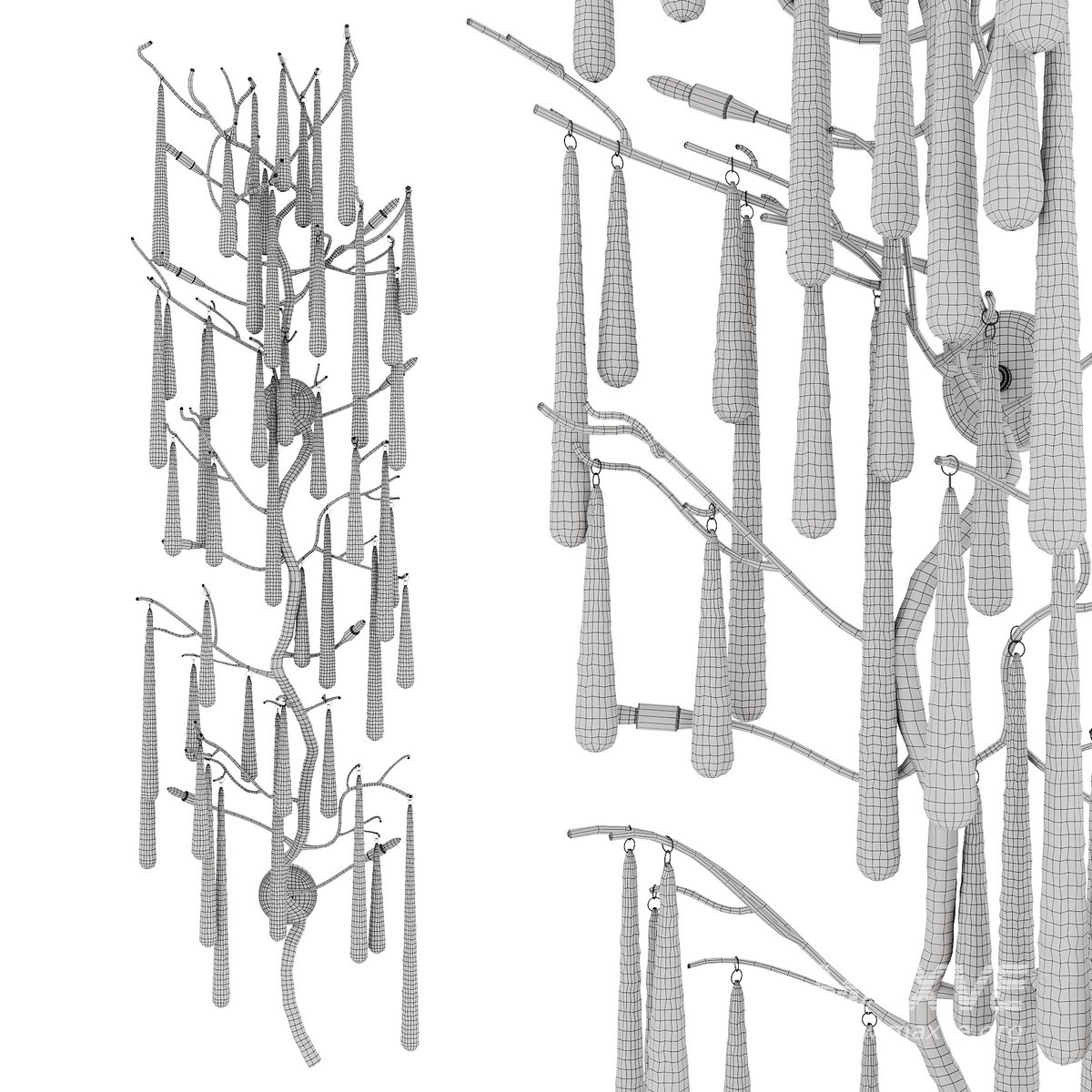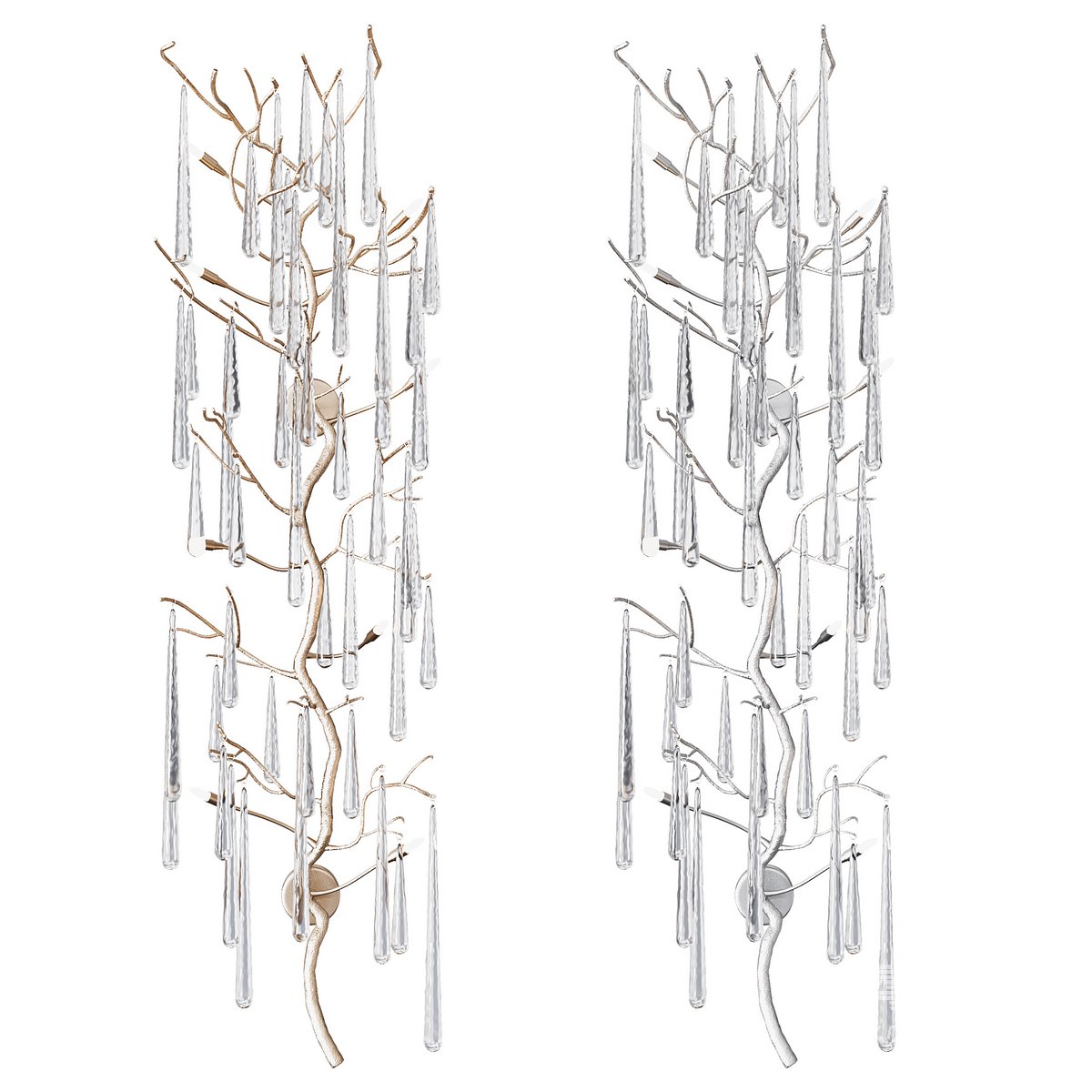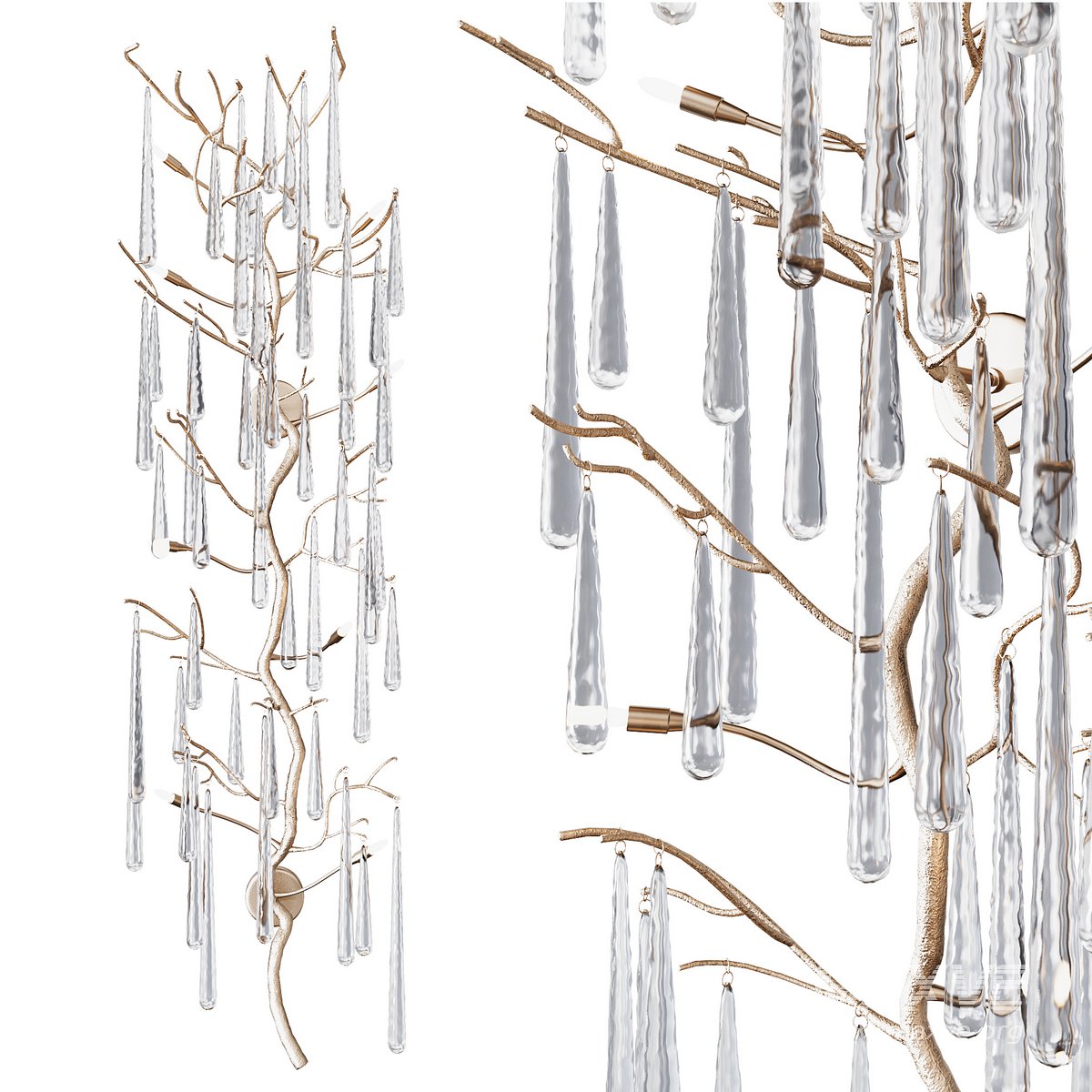 This dripping teardrop wall sculpture is illuminated with eight lights and has an antique brass finish.