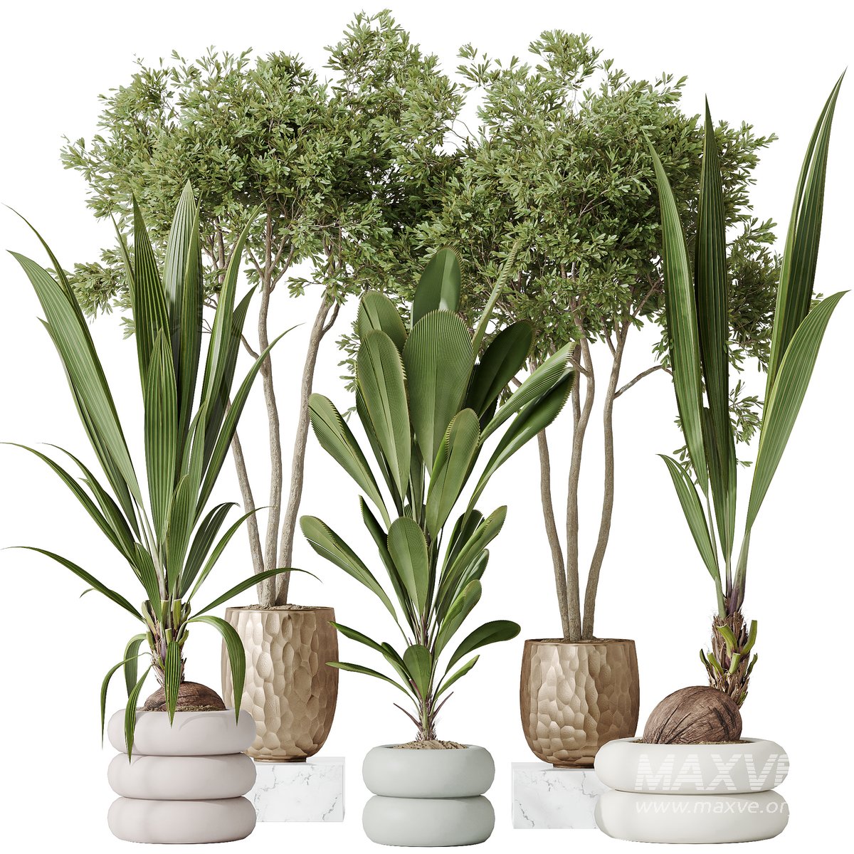 Indoor plants set 68_Wilsonii Chemlali Olive and Coconut Palm and Grandis Ruffled Fan Palm