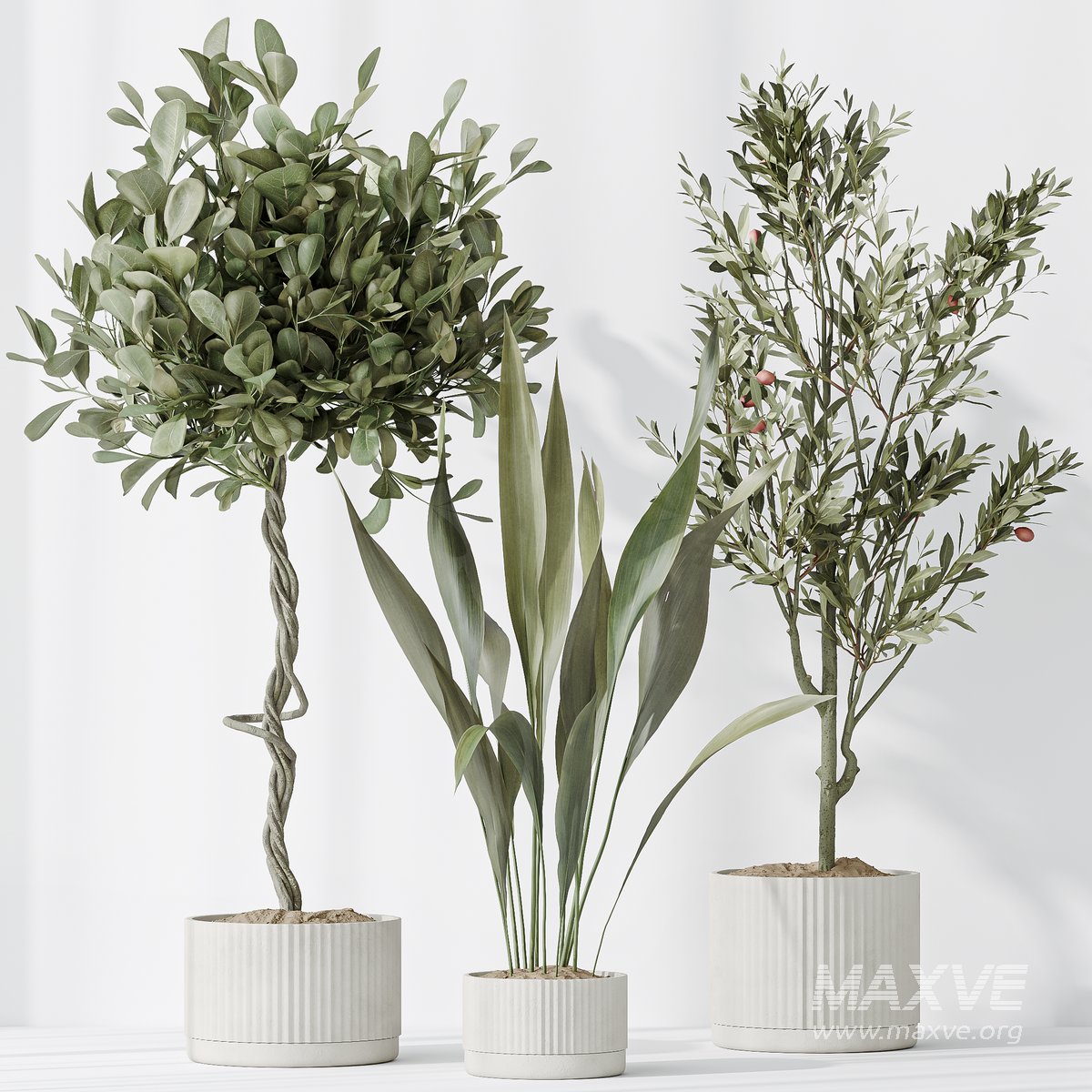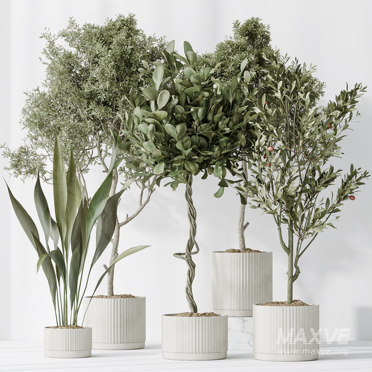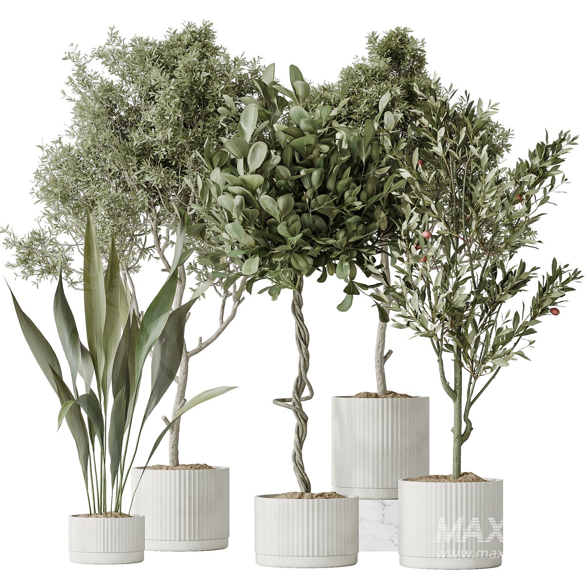 Indoor plants set 79 Wilsonii Chemlali Olive and Ficus Microcarpa and Mission Olive