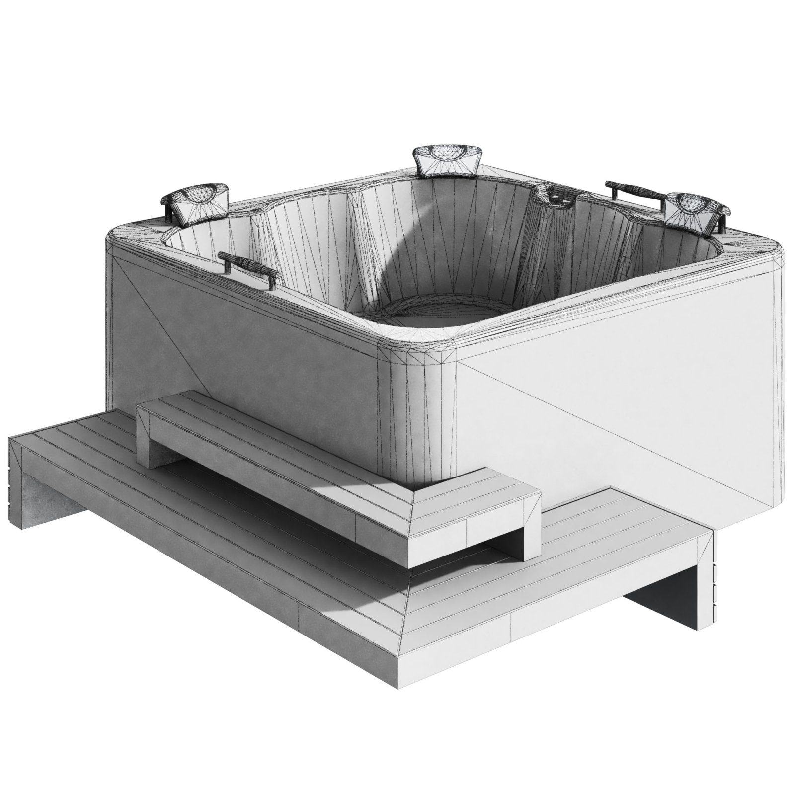This Jacuzzi Design comes with a set of detailed stairs, designed for use in architectural projects, renderings, and visualizations. Stairs included, with fully adjustable size and step count according to your floor plan.
