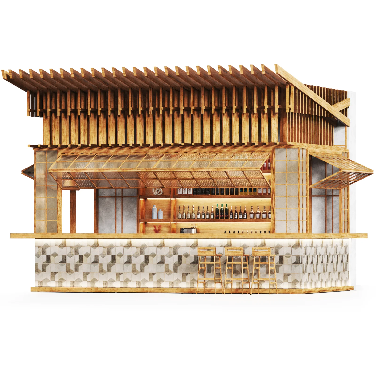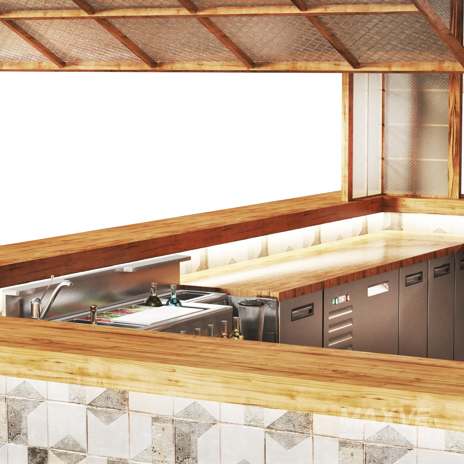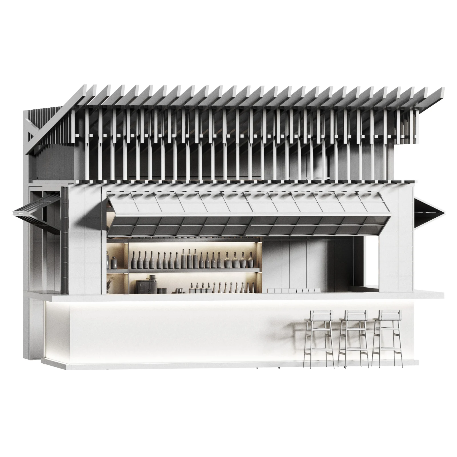 Cafe Restaurant and foodcourt Design,as a Kiosk Cafe - Booth Cafe, Includes shelving and cabinets, with a functional barista counter, suitable for coffee preparation and customer service.