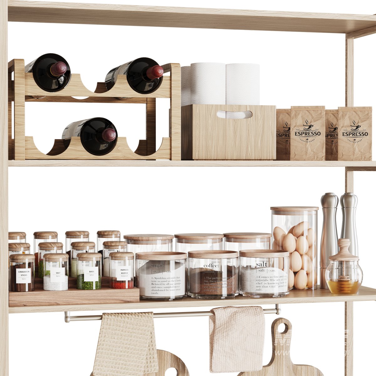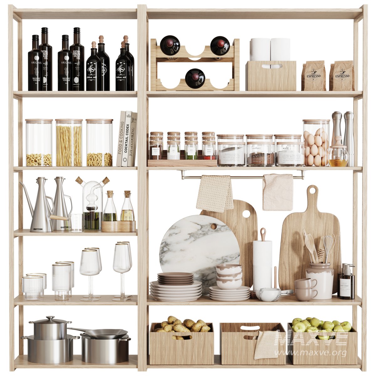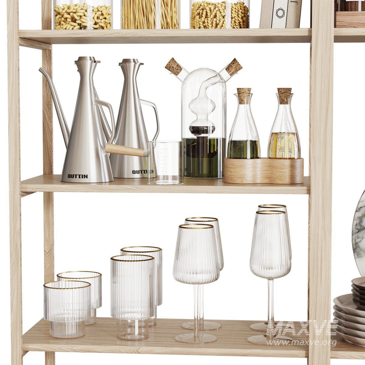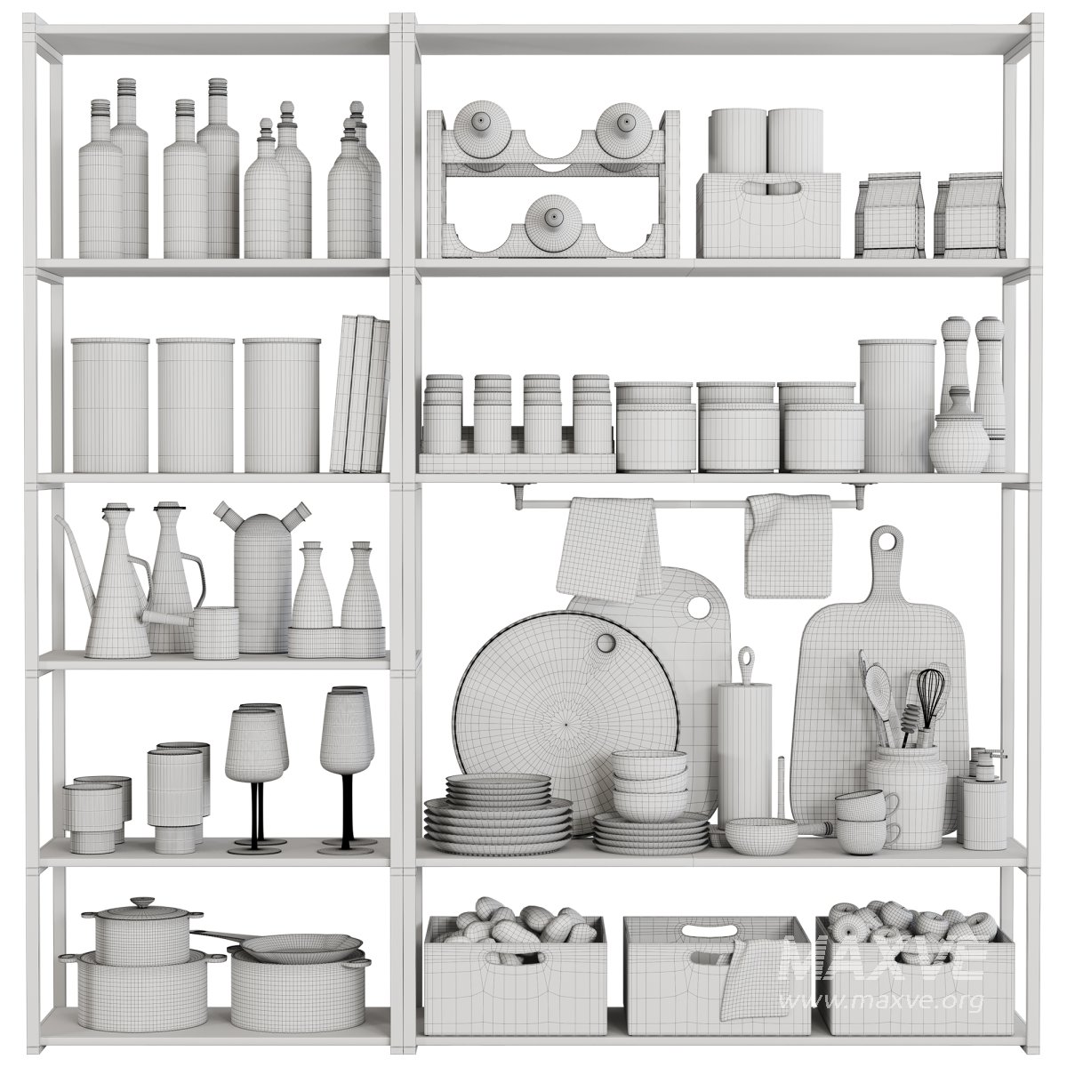 This kitchen set includes suitable and practical items for use in interior design. Its details and suitable material are used in close renderings.