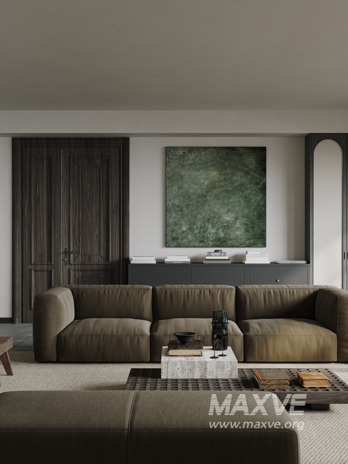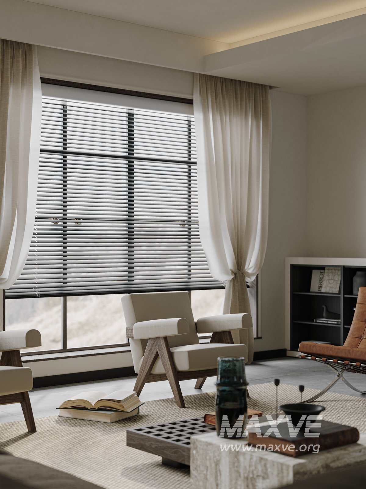 This fully textured interior scene with natural light setup is ready to render with Corona Renderer for 3D Studio MAX. This file does not have any type of protection. You can reuse the scene, the render settings, the lights, the materials, but above all, you can learn from the file by moving inside the project, observing how the light was created and handled, how materials are developed, what role each texture plays within them, and the values used in every single option.