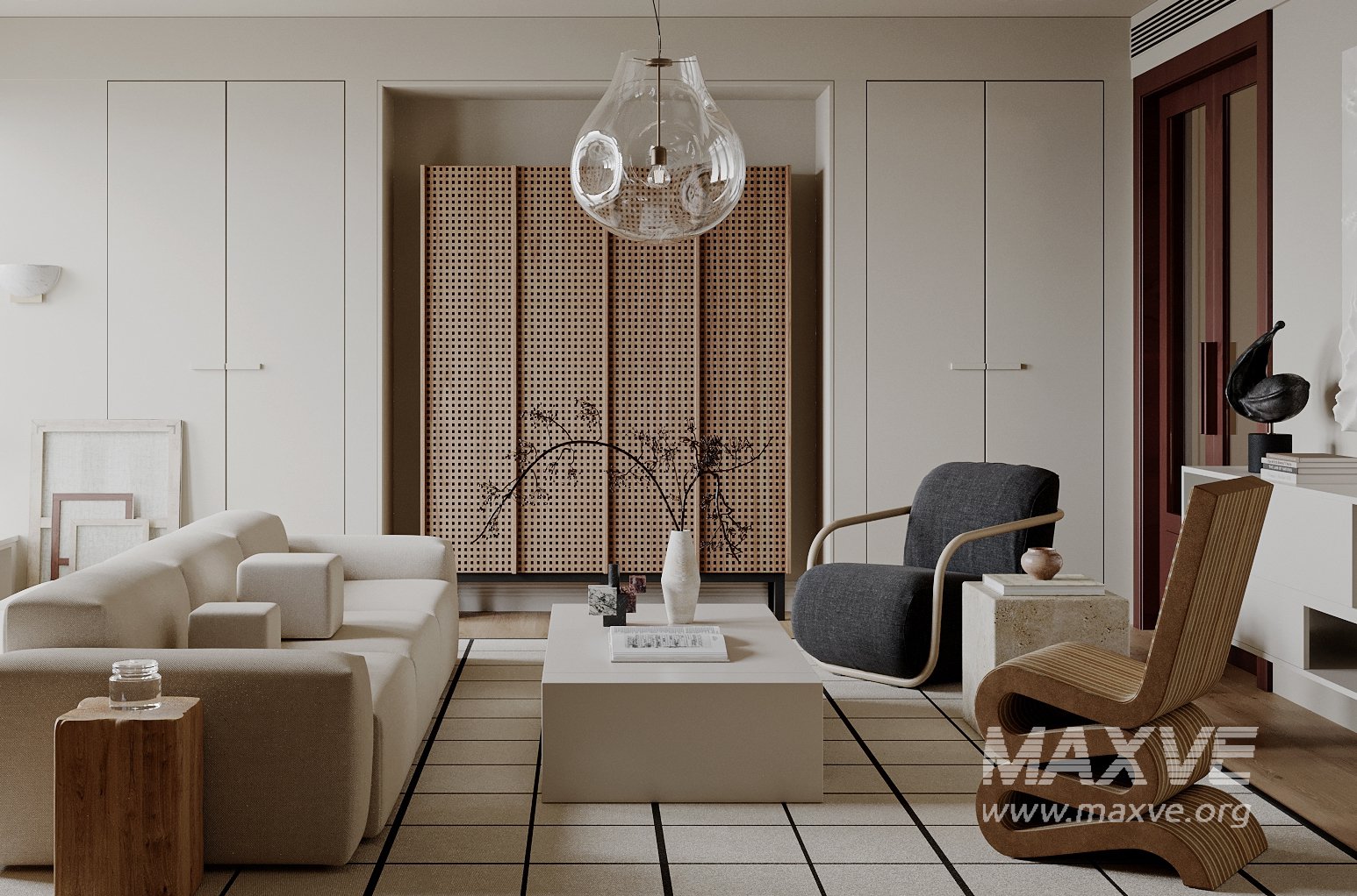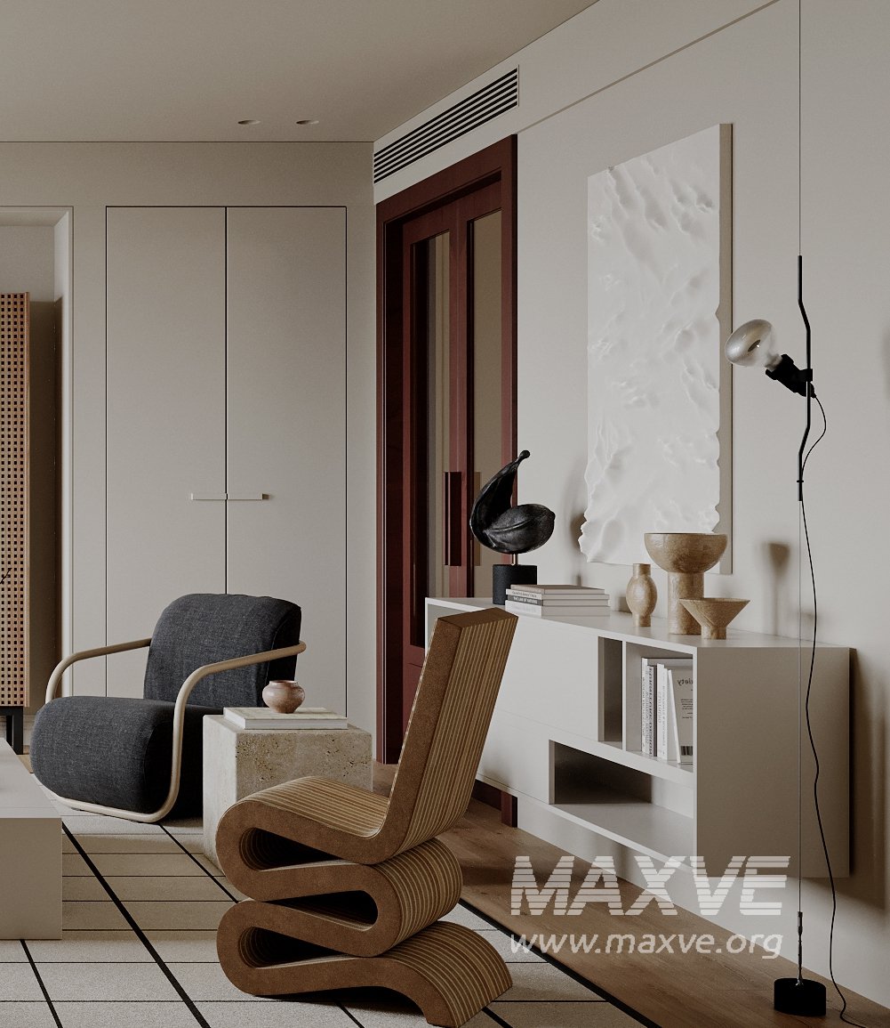 This Modern living room 3D scene was built in 3ds Max 2021 and rendered using Vray. It includes clean geometry, proper scene organization, and is optimized for smooth rendering performance. The model setup follows standard practices, making it easy to import and adapt into a variety of workflows. Delivered in MAX format, it is well-suited for architectural visualization, concept development, or design presentation. Dominant color tones include: White tones, Beige tones, Silver tones, Gray tones.