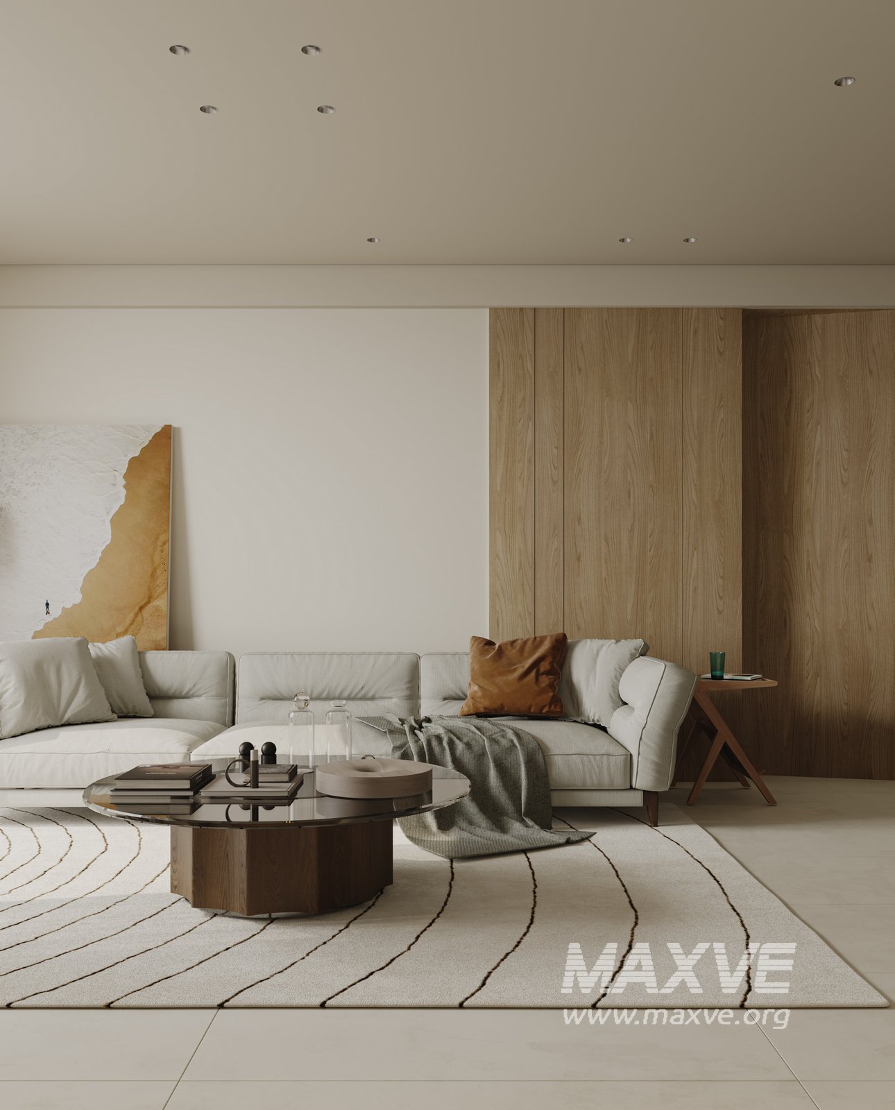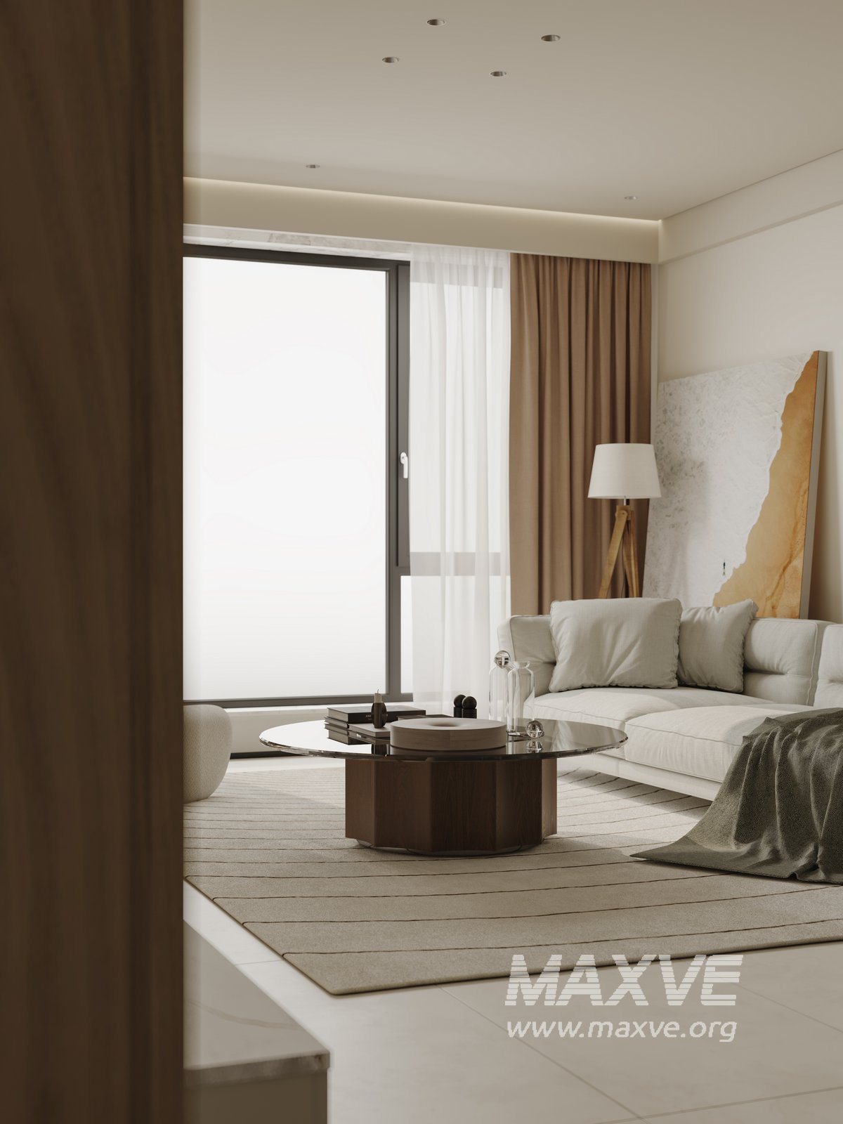 This fully textured interior scene with natural light setup is ready to render with Corona Renderer for 3D Studio MAX. This file does not have any type of protection. You can reuse the scene, the render settings, the lights, the materials, but above all, you can learn from the file by moving inside the project, observing how the light was created and handled, how materials are developed, what role each texture plays within them, and the values used in every single option.