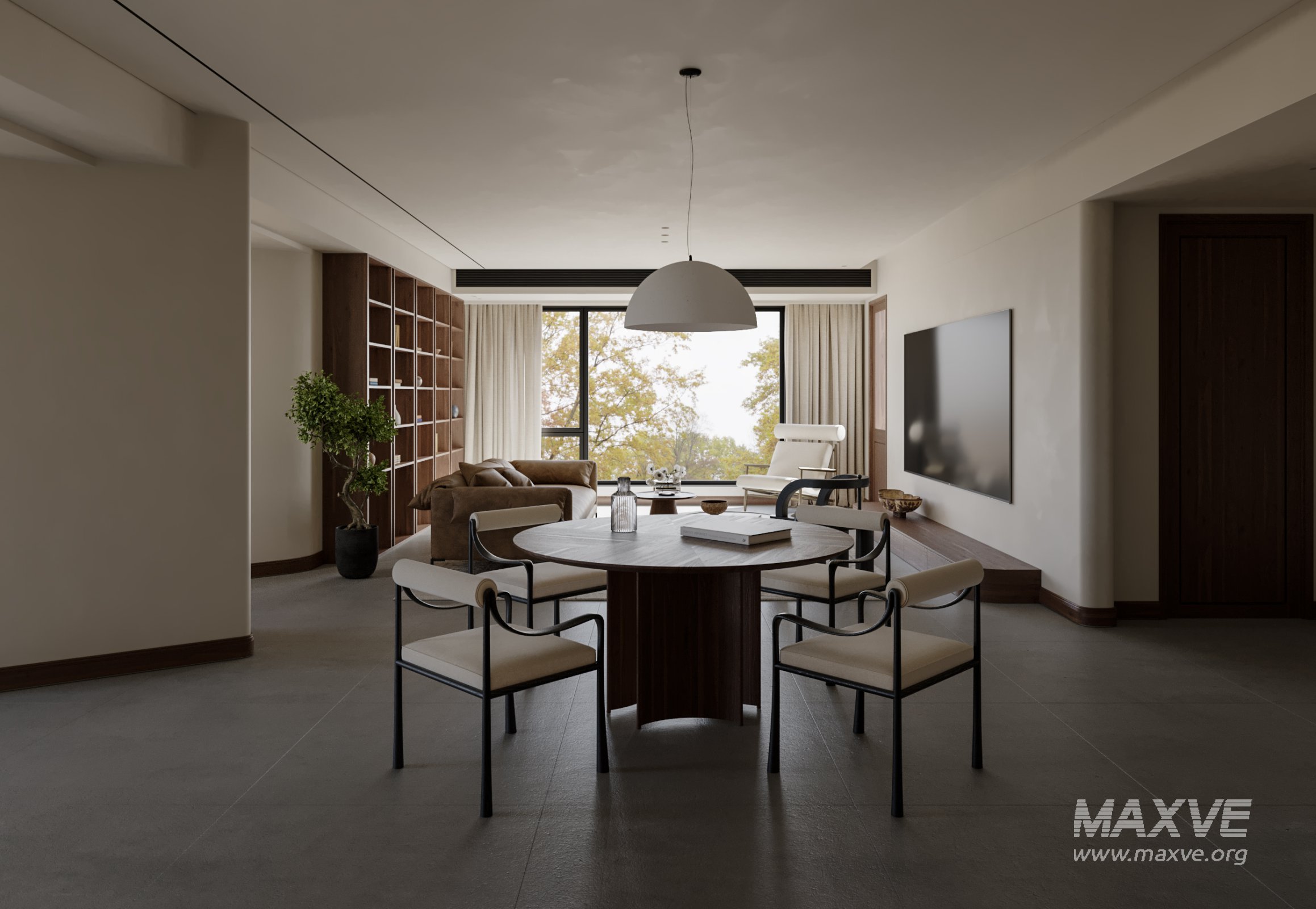 This Modern Living Room Dining Room 3D scene was built in 3ds Max 2021 and rendered using Corona. It includes clean geometry, proper scene organization, and is optimized for smooth rendering performance. The model setup follows standard practices, making it easy to import and adapt into a variety of workflows. Delivered in MAX format, it is well-suited for architectural visualization, concept development, or design presentation. Dominant color tones include: White tones, Beige tones, Silver tones, Gray tones.