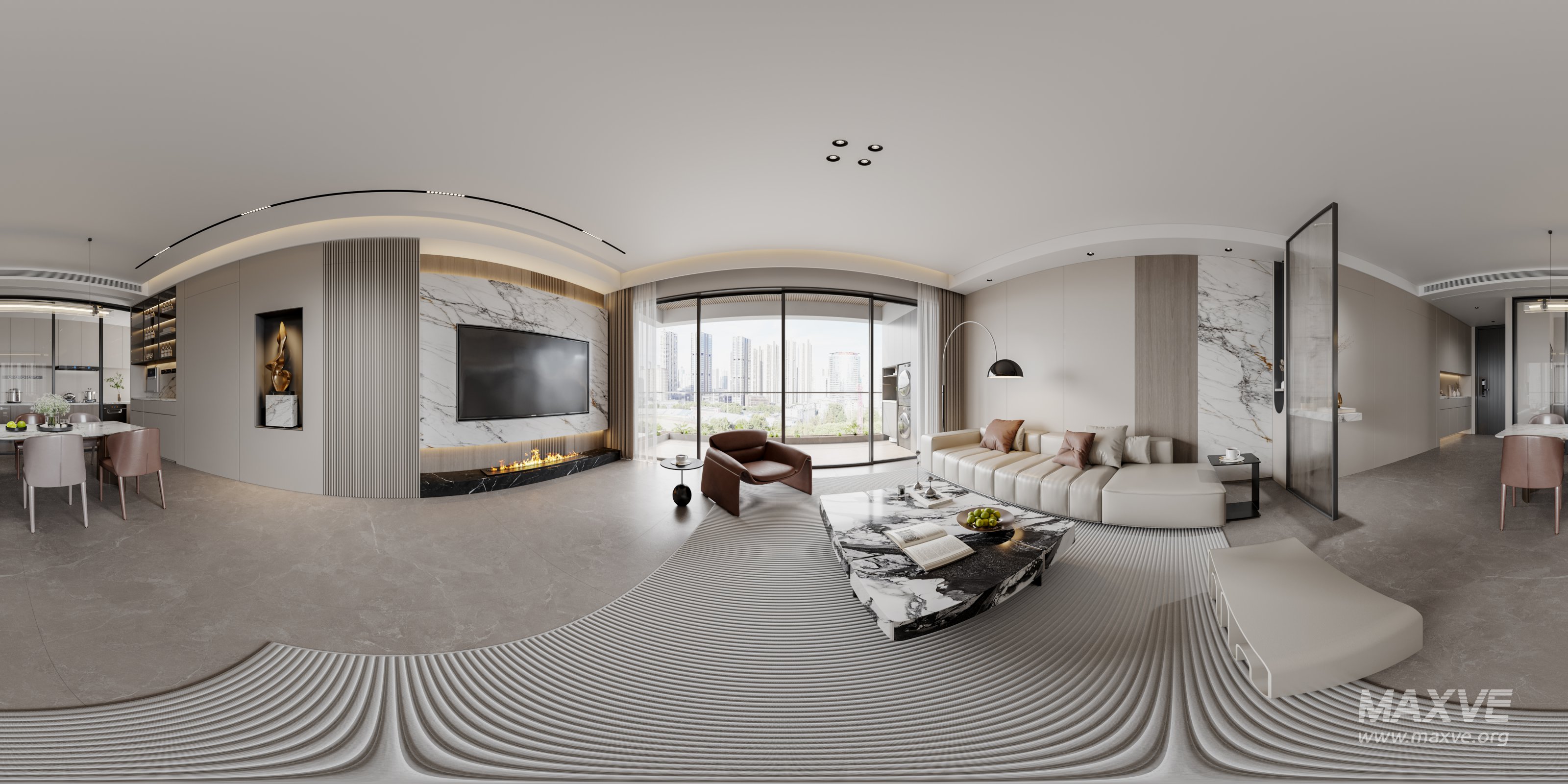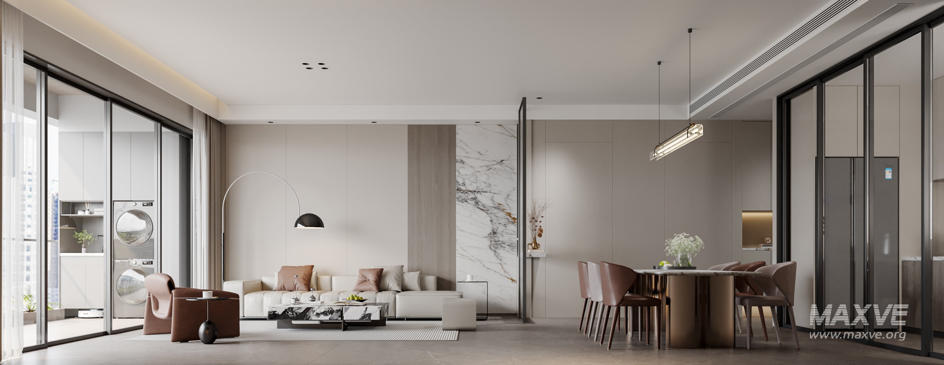 This Modern living room dining room 3D scene was built in 3ds Max 2021 and rendered using Corona. It includes clean geometry, proper scene organization, and is optimized for smooth rendering performance. The model setup follows standard practices, making it easy to import and adapt into a variety of workflows. Delivered in MAX format, it is well-suited for architectural visualization, concept development, or design presentation. Dominant color tones include: White tones, Beige tones, Silver tones.