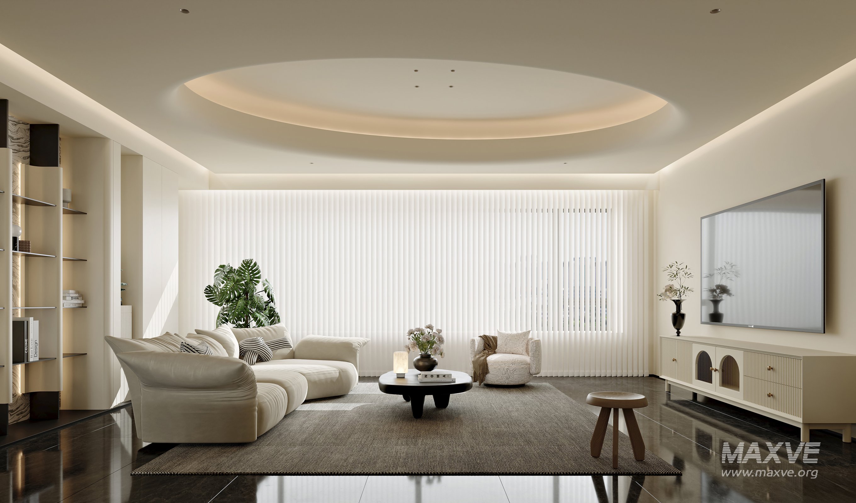 This Modern Living Room Dining Room 3D scene was built in 3ds Max 2021 and rendered using Corona. It includes clean geometry, proper scene organization, and is optimized for smooth rendering performance. The model setup follows standard practices, making it easy to import and adapt into a variety of workflows. Delivered in MAX format, it is well-suited for architectural visualization, concept development, or design presentation. Dominant color tones include: White tones, Beige tones, Silver tones.