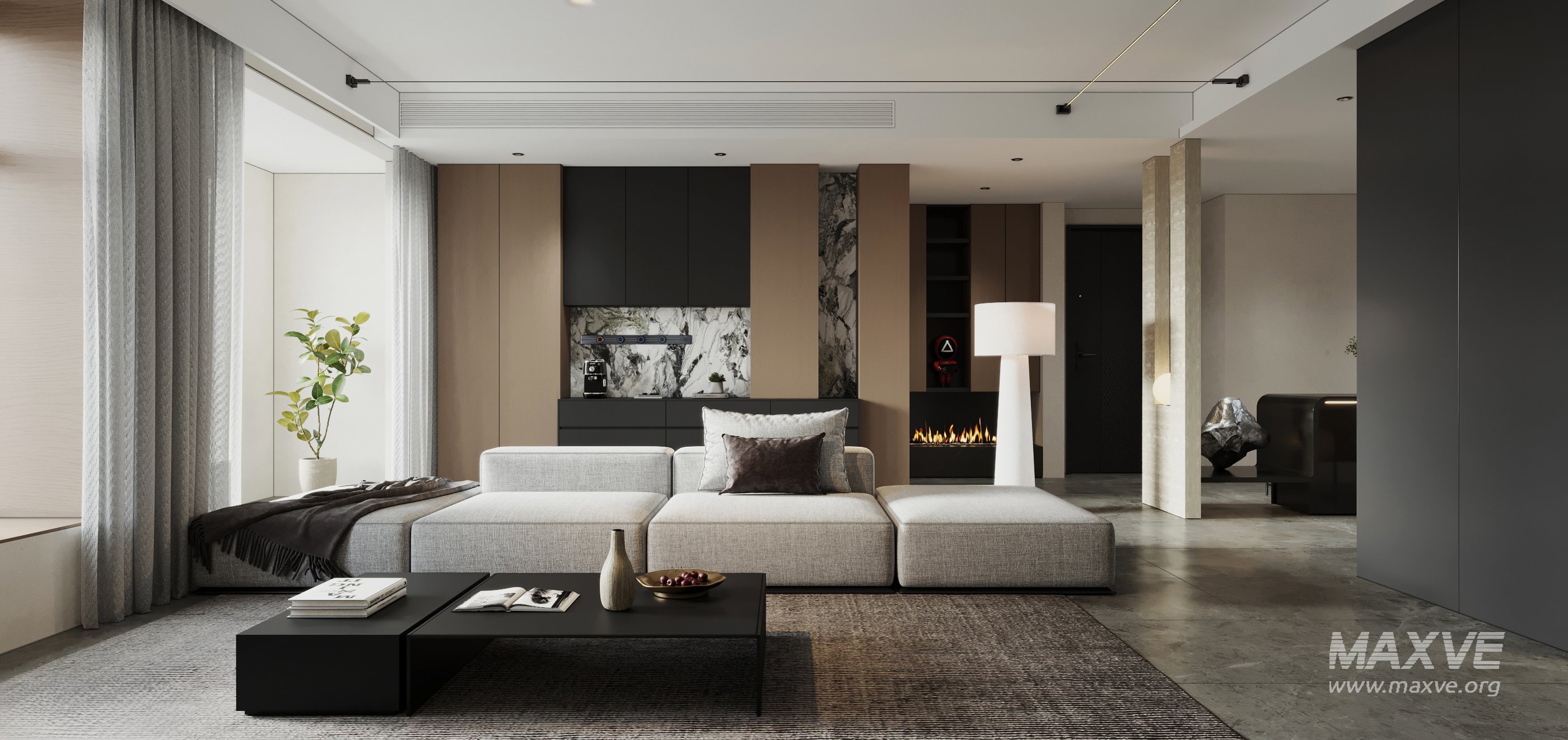 This Modern living room dining room 3D scene was built in 3ds Max 2021 and rendered using Corona. It includes clean geometry, proper scene organization, and is optimized for smooth rendering performance. The model setup follows standard practices, making it easy to import and adapt into a variety of workflows. Delivered in MAX format, it is well-suited for architectural visualization, concept development, or design presentation. Dominant color tones include: White tones, Beige tones, Silver tones, Gray tones.