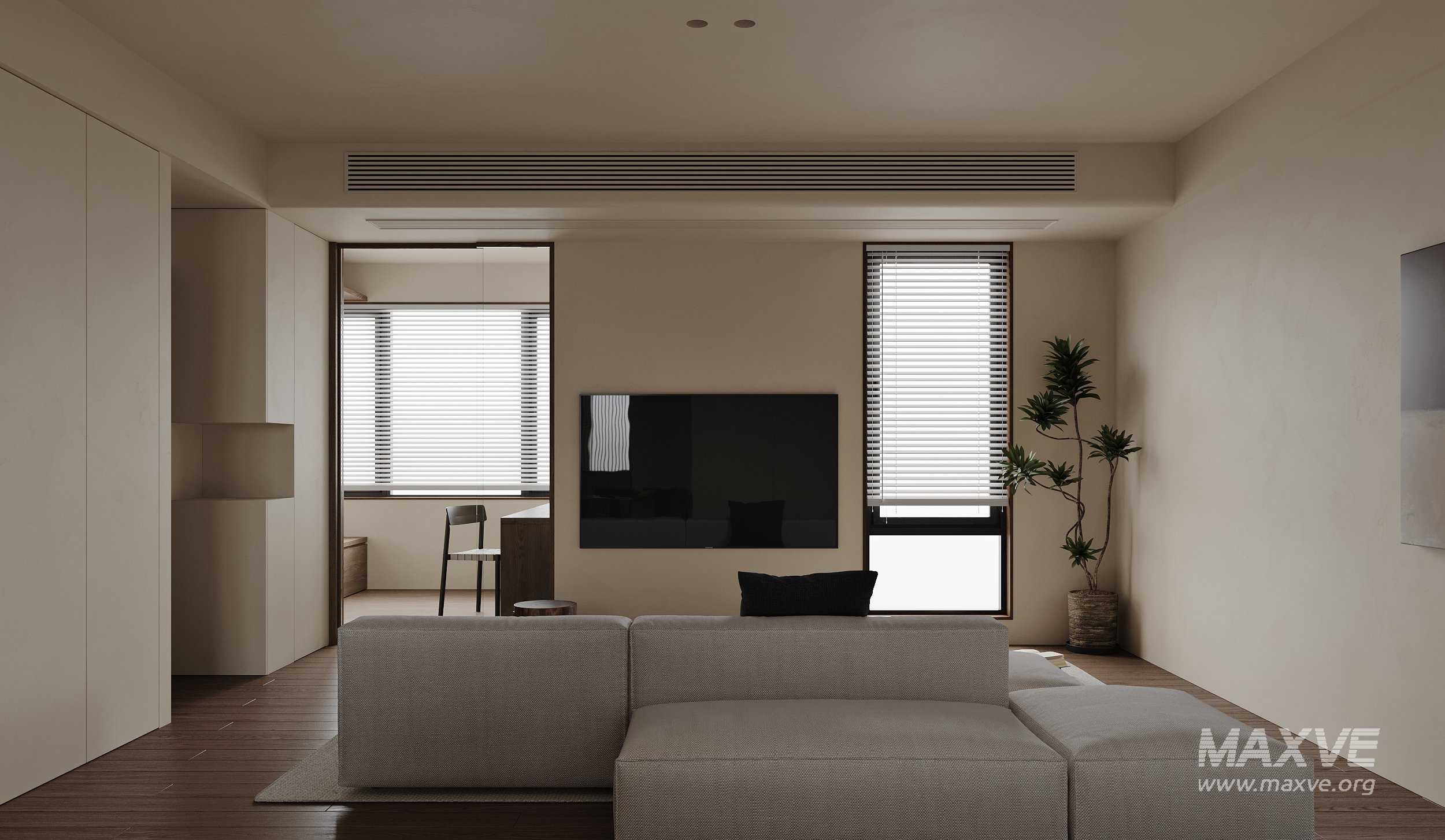 This Modern living room dining room 3D scene was built in 3ds Max 2021 and rendered using Corona. It includes clean geometry, proper scene organization, and is optimized for smooth rendering performance. The model setup follows standard practices, making it easy to import and adapt into a variety of workflows. Delivered in MAX format, it is well-suited for architectural visualization, concept development, or design presentation. Dominant color tones include: White tones, Beige tones, Silver tones.
