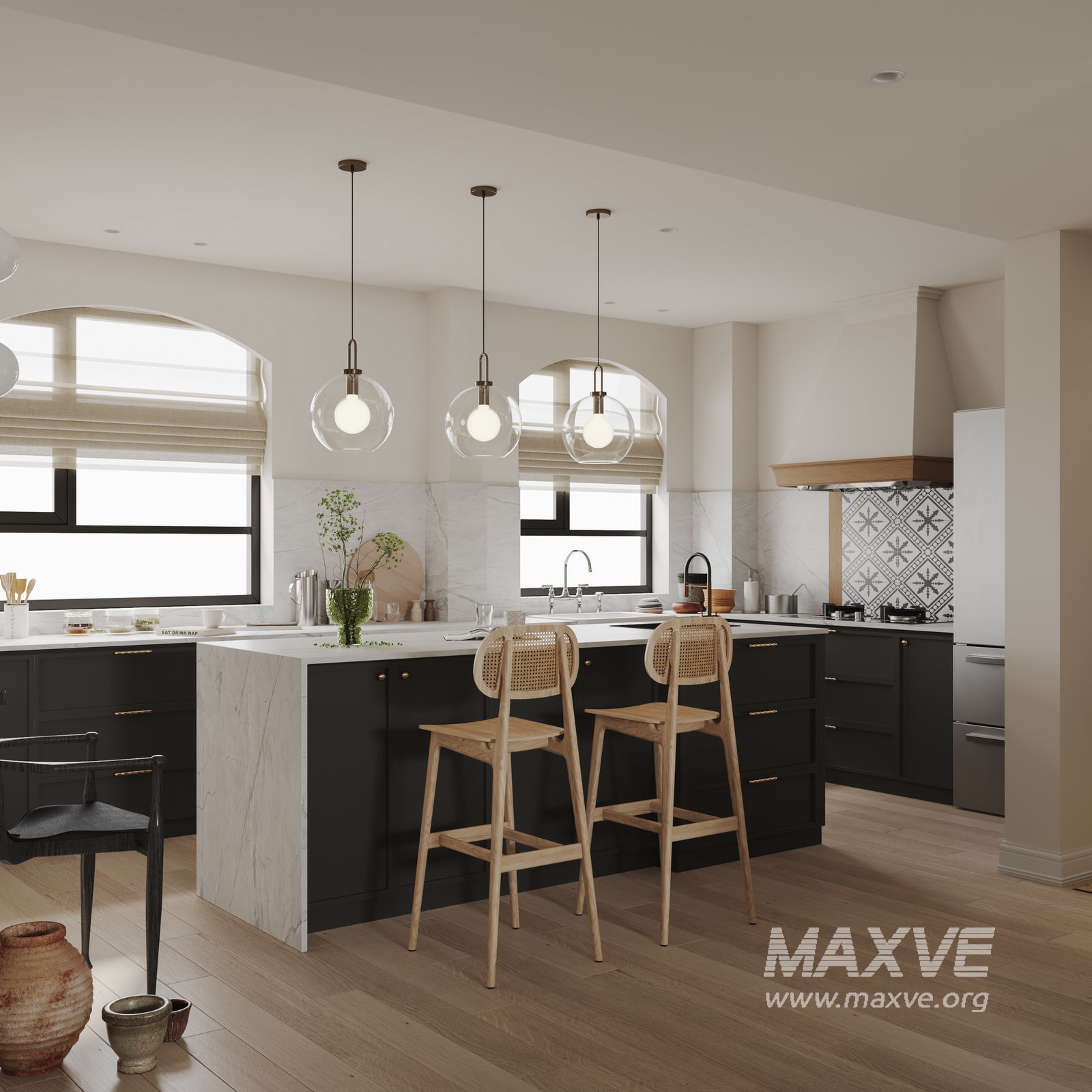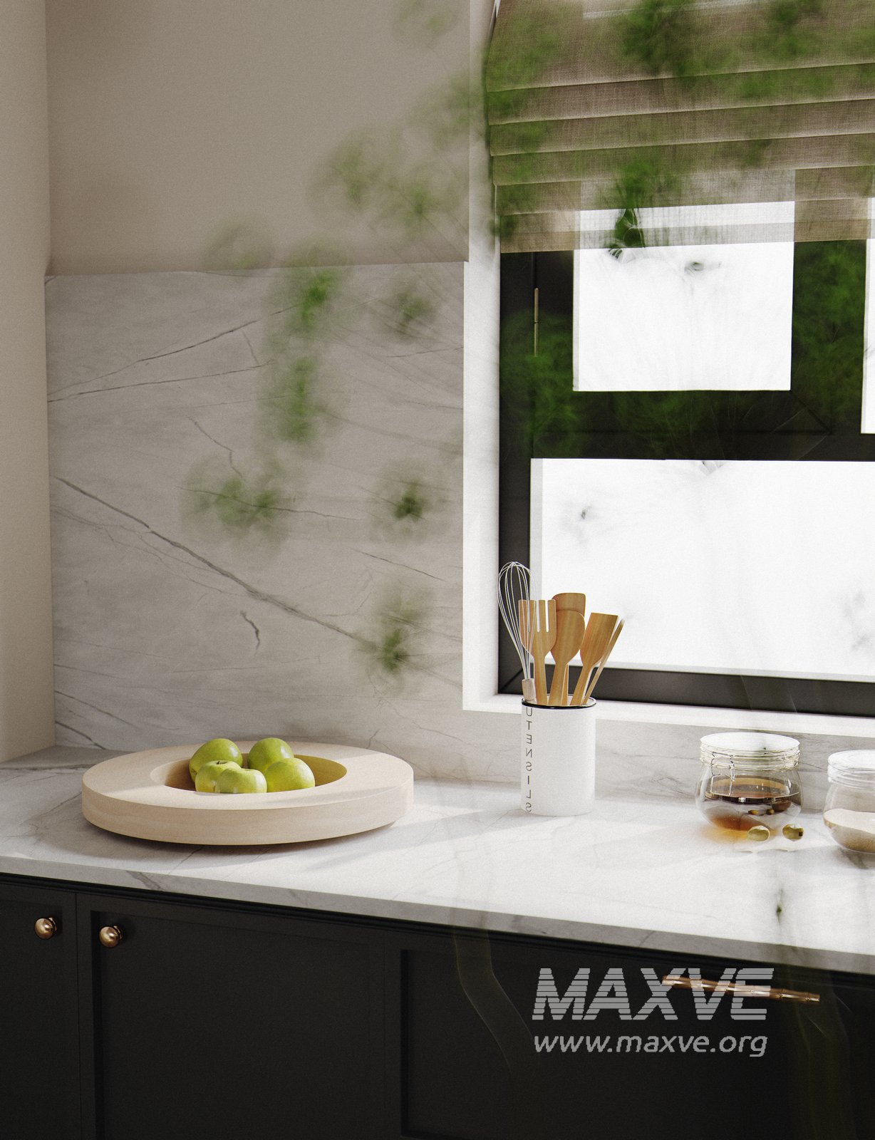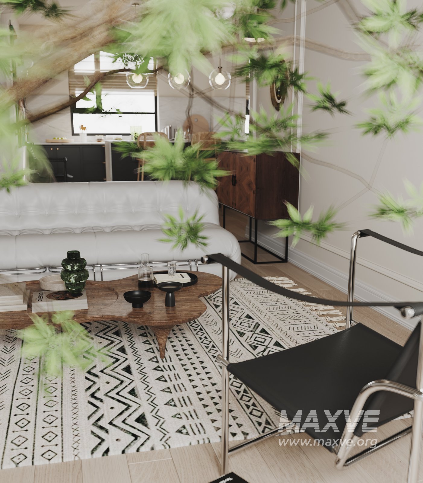 This fully textured interior scene with natural light setup is ready to render with Corona Renderer for 3D Studio MAX. This file does not have any type of protection. You can reuse the scene, the render settings, the lights, the materials, but above all, you can learn from the file by moving inside the project, observing how the light was created and handled, how materials are developed, what role each texture plays within them, and the values used in every single option.