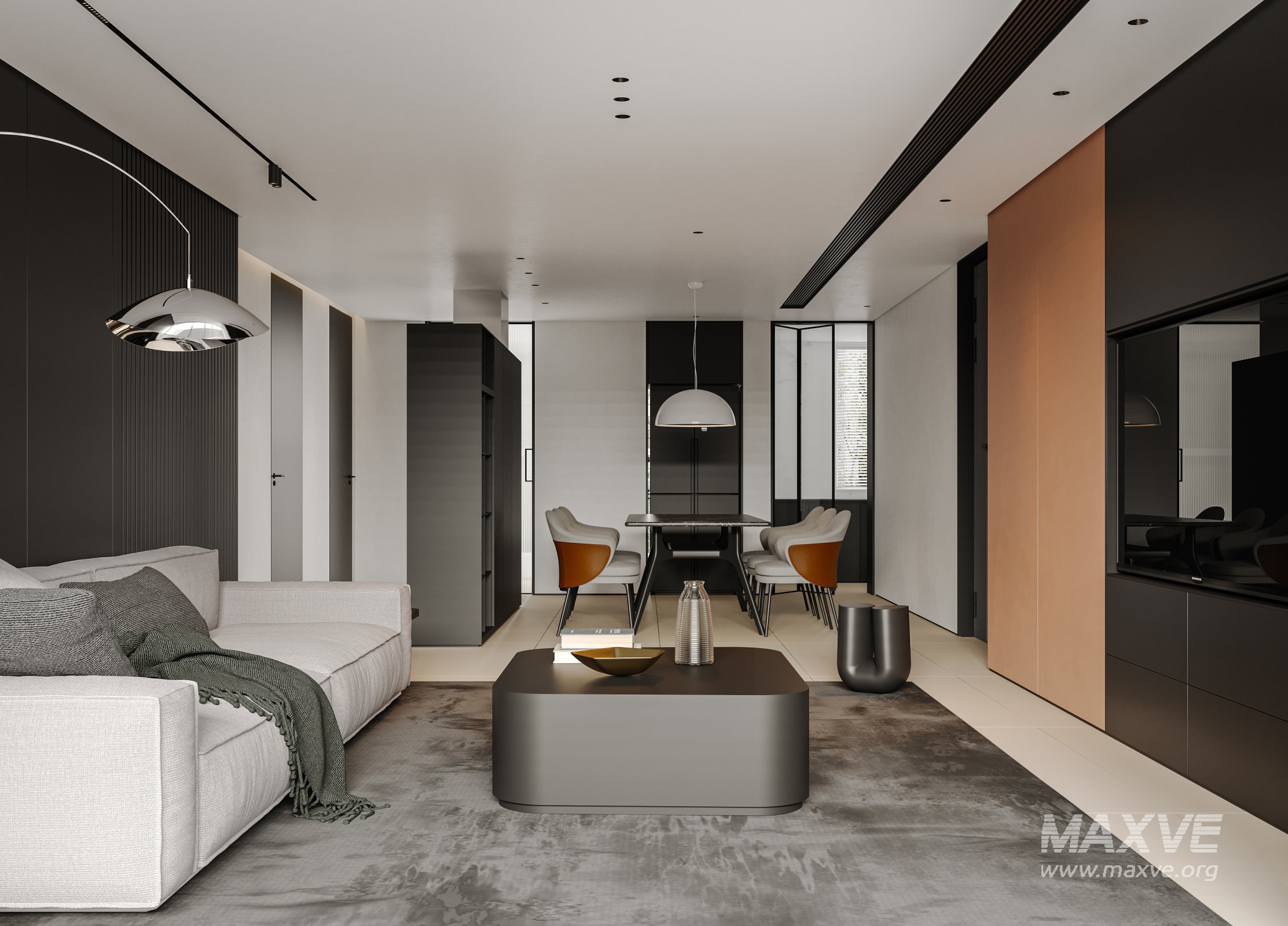 This Modern living room dining room 3D scene was built in 3ds Max 2021 and rendered using Corona. It includes clean geometry, proper scene organization, and is optimized for smooth rendering performance. The model setup follows standard practices, making it easy to import and adapt into a variety of workflows. Delivered in MAX format, it is well-suited for architectural visualization, concept development, or design presentation. Dominant color tones include: White tones, Beige tones.