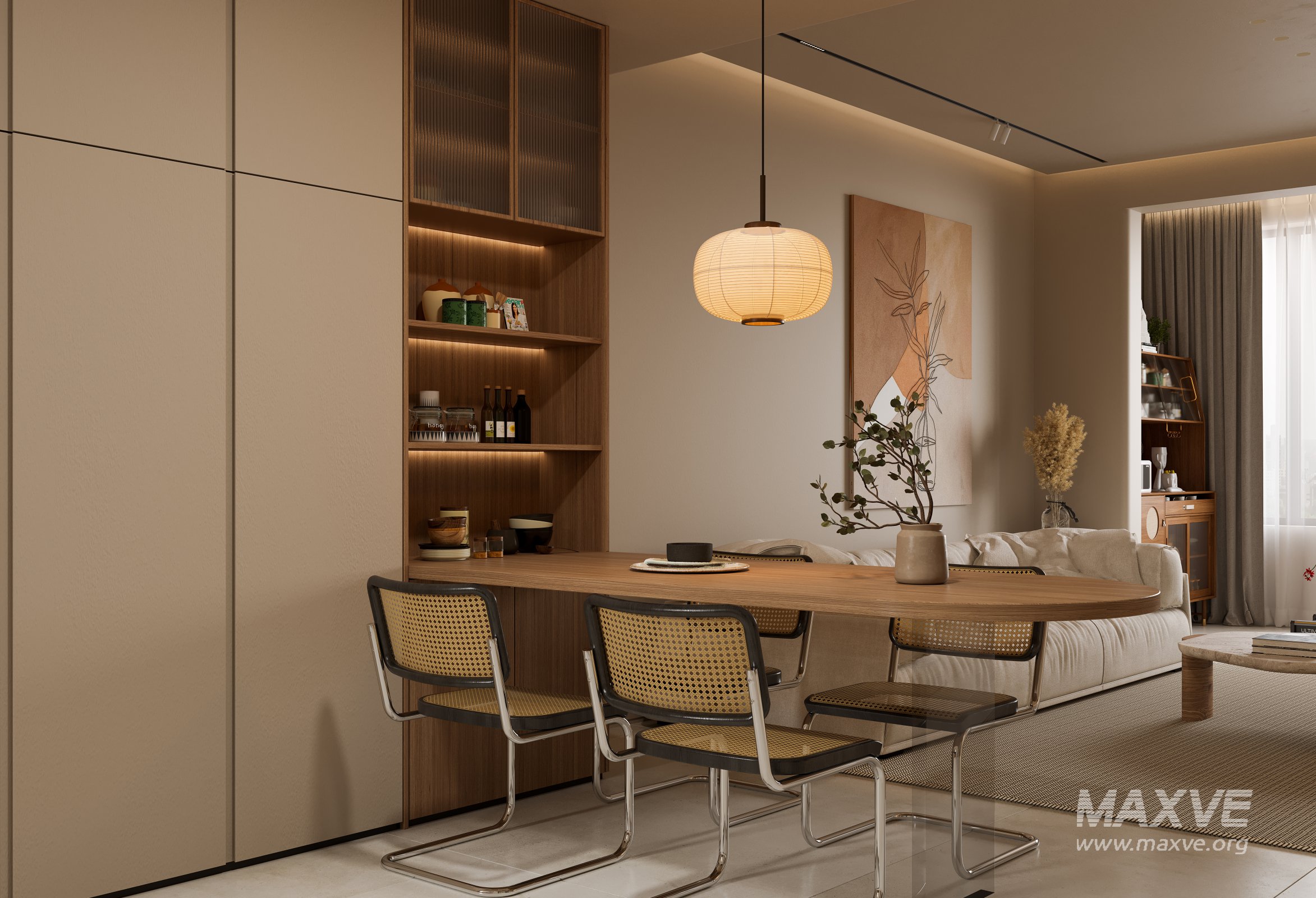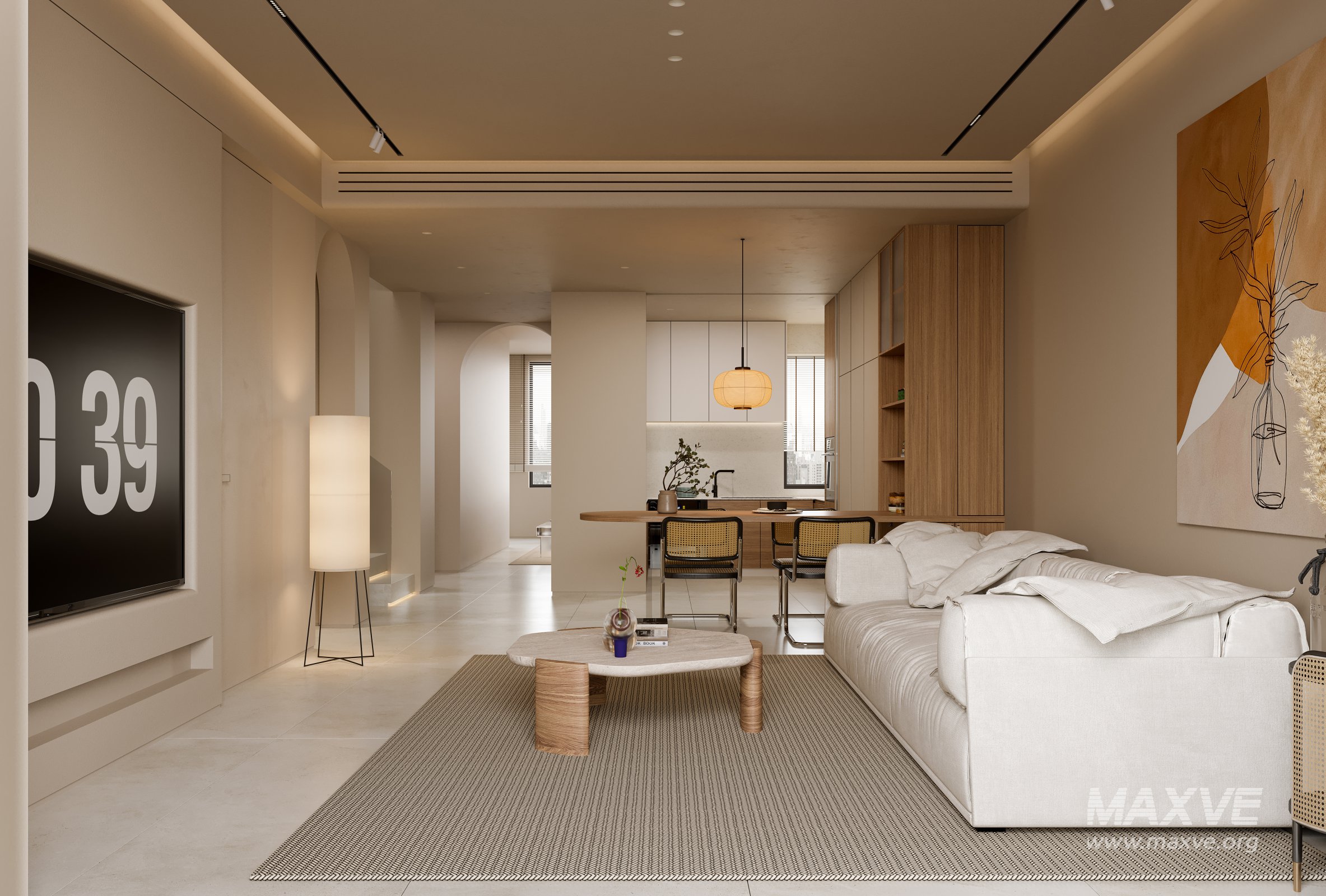This Modern living room dining room 3D scene was built in 3ds Max 2021 and rendered using Corona. It includes clean geometry, proper scene organization, and is optimized for smooth rendering performance. The model setup follows standard practices, making it easy to import and adapt into a variety of workflows. Delivered in MAX format, it is well-suited for architectural visualization, concept development, or design presentation. Dominant color tones include: White tones, Beige tones.