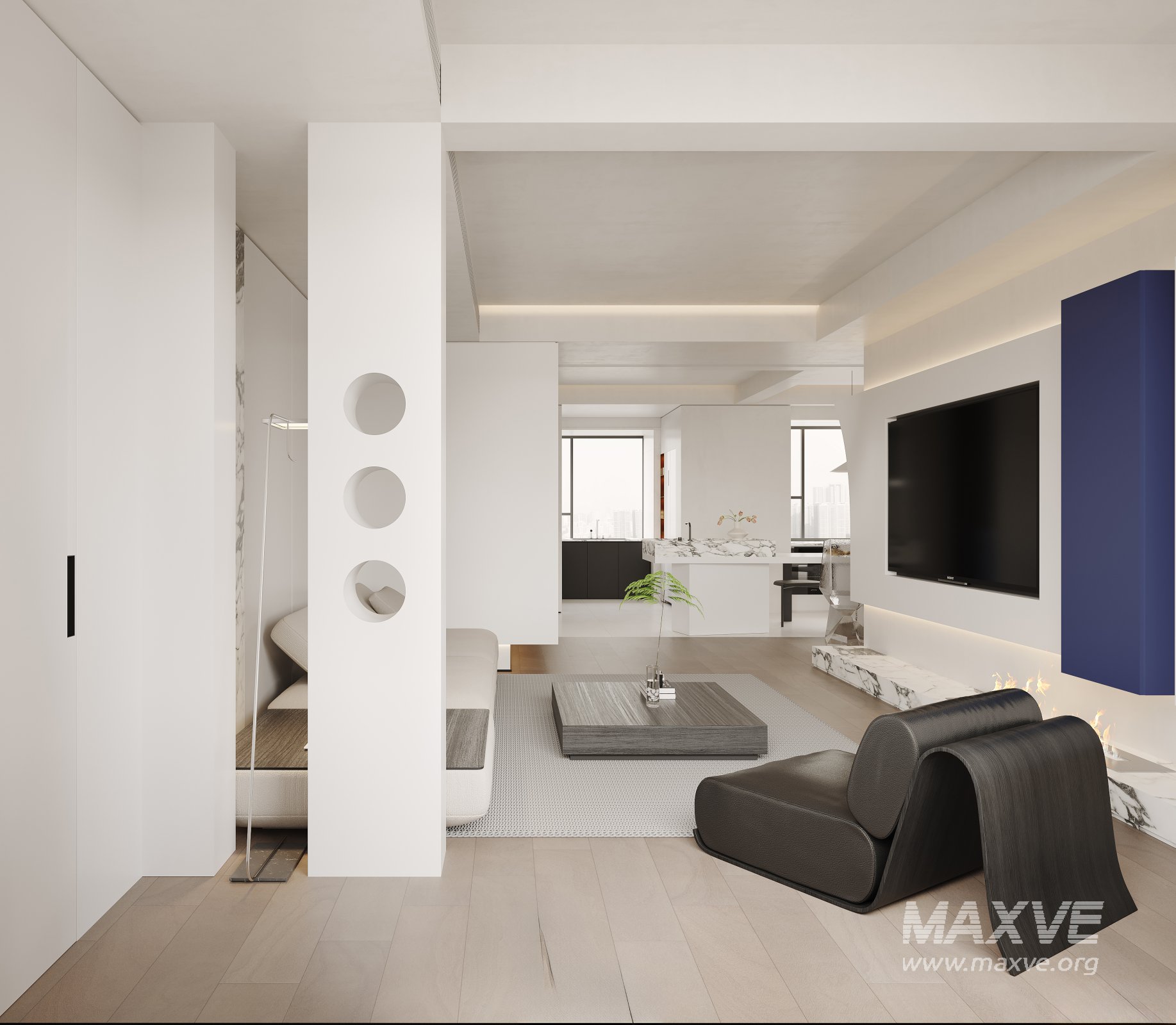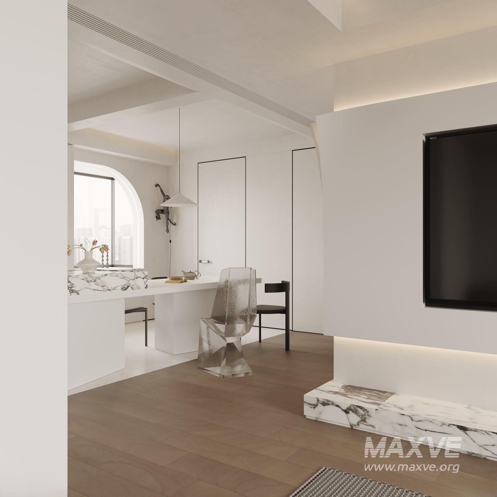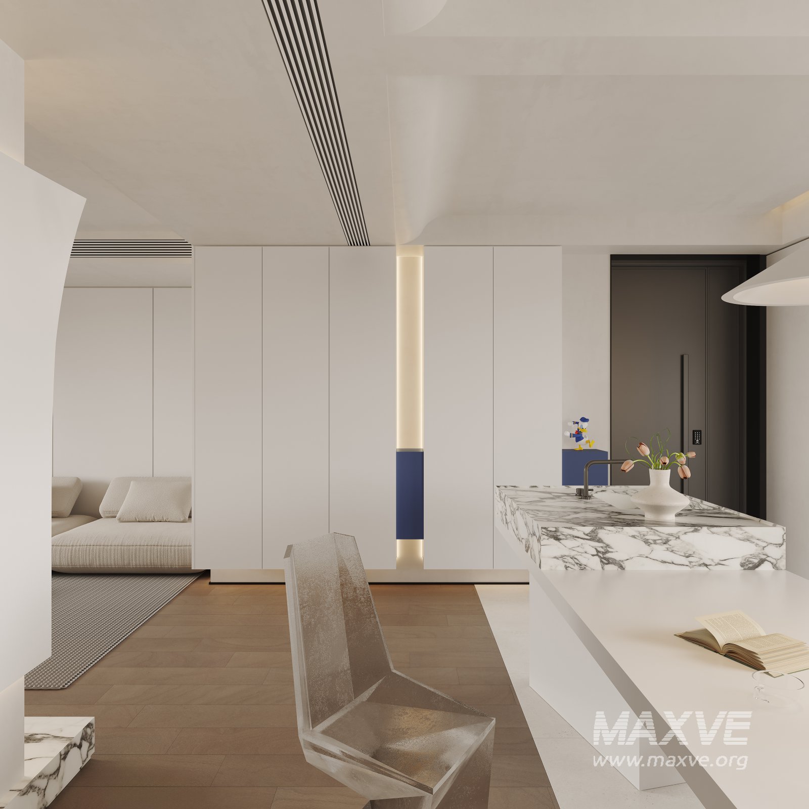 This Modern living room dining room 3D scene was built in 3ds Max 2021 and rendered using Corona. It includes clean geometry, proper scene organization, and is optimized for smooth rendering performance. The model setup follows standard practices, making it easy to import and adapt into a variety of workflows. Delivered in MAX format, it is well-suited for architectural visualization, concept development, or design presentation. Dominant color tones include: White tones, Beige tones, Silver tones, Gray tones.