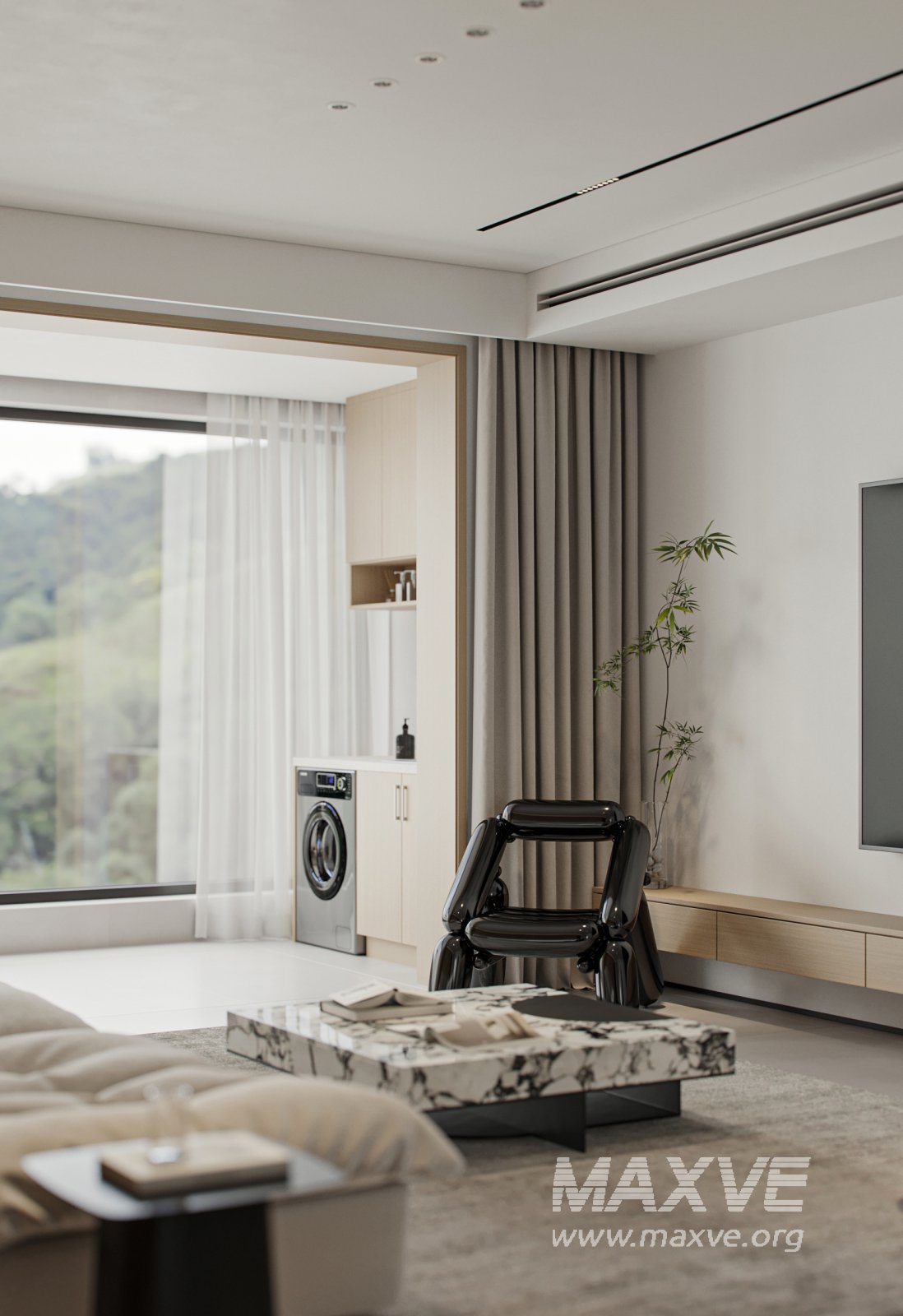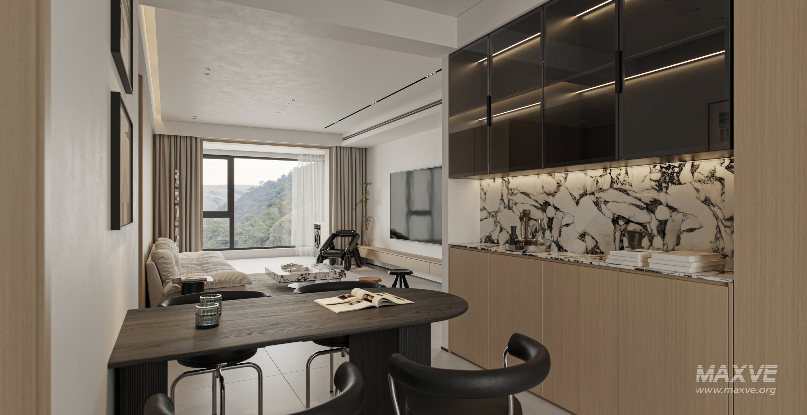 This Modern living room dining room 3D scene was built in 3ds Max 2021 and rendered using Corona. It includes clean geometry, proper scene organization, and is optimized for smooth rendering performance. The model setup follows standard practices, making it easy to import and adapt into a variety of workflows. Delivered in MAX format, it is well-suited for architectural visualization, concept development, or design presentation. Dominant color tones include: White tones, Beige tones, Silver tones.