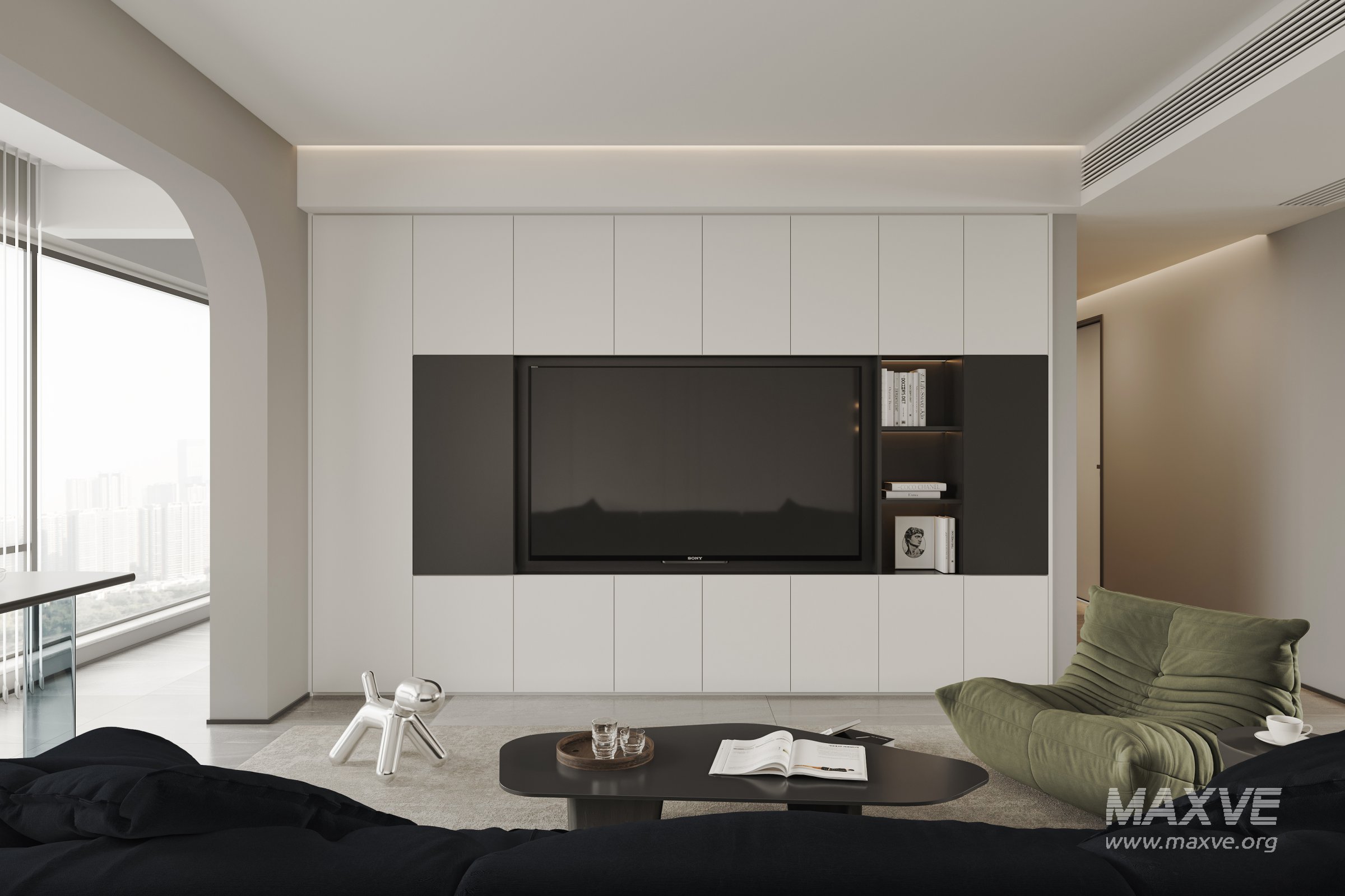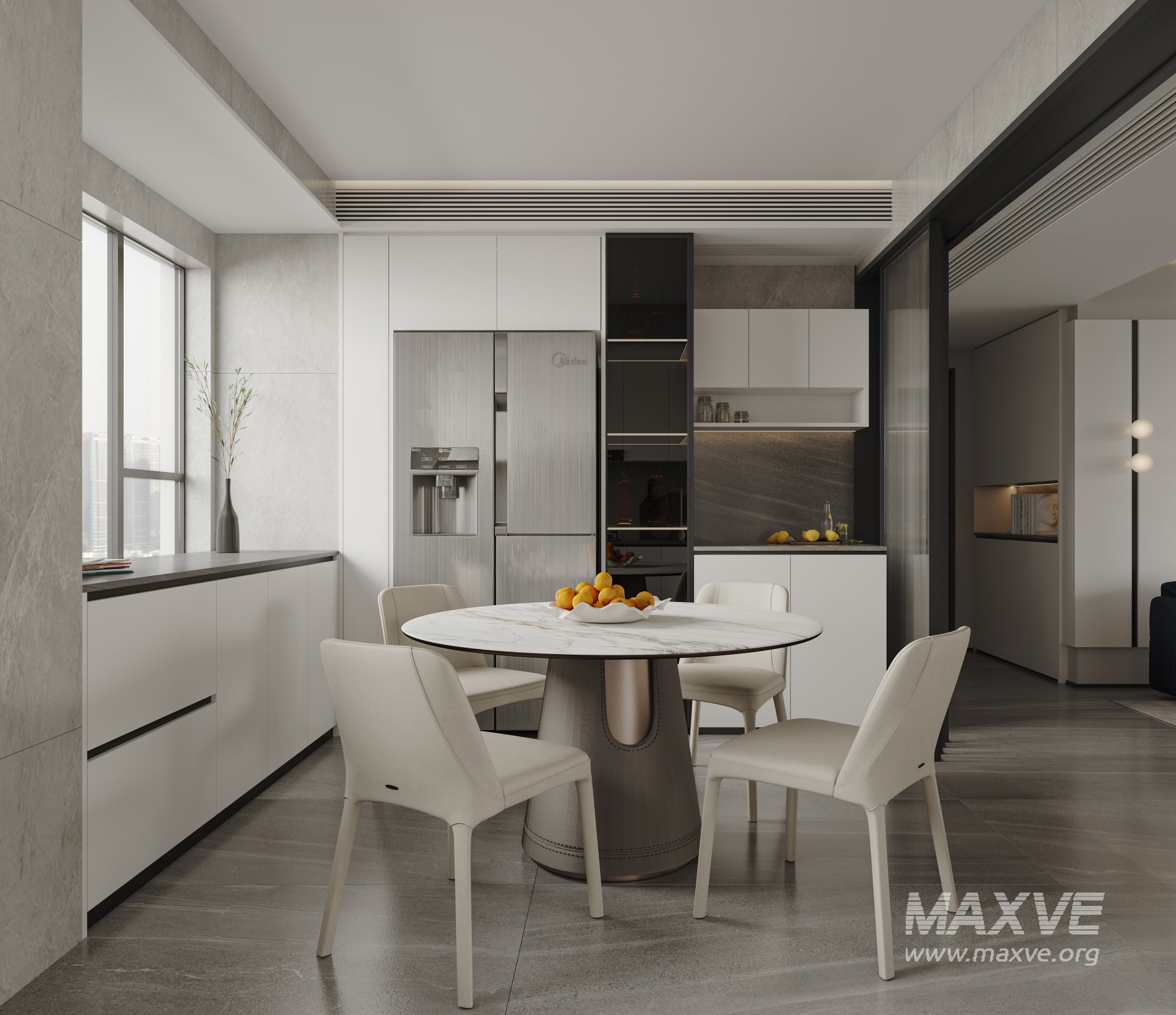 This Modern living room dining room 3D scene was built in 3ds Max 2021 and rendered using Corona. It includes clean geometry, proper scene organization, and is optimized for smooth rendering performance. The model setup follows standard practices, making it easy to import and adapt into a variety of workflows. Delivered in MAX format, it is well-suited for architectural visualization, concept development, or design presentation. Dominant color tones include: White tones, Beige tones, Silver tones.