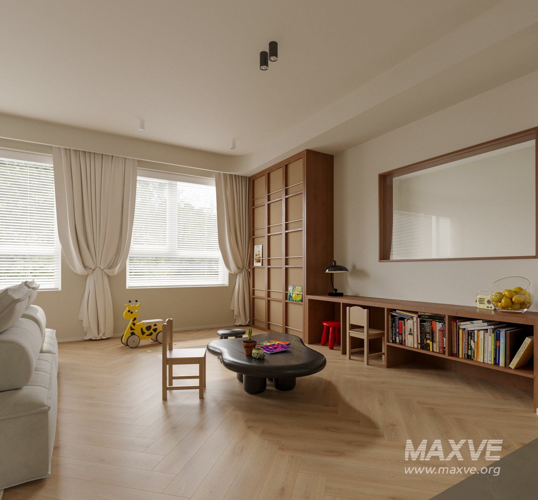 This Modern living room dining room 3D scene was built in 3ds Max 2021 and rendered using Corona. It includes clean geometry, proper scene organization, and is optimized for smooth rendering performance. The model setup follows standard practices, making it easy to import and adapt into a variety of workflows. Delivered in MAX format, it is well-suited for architectural visualization, concept development, or design presentation. Dominant color tones include: White tones, Beige tones.