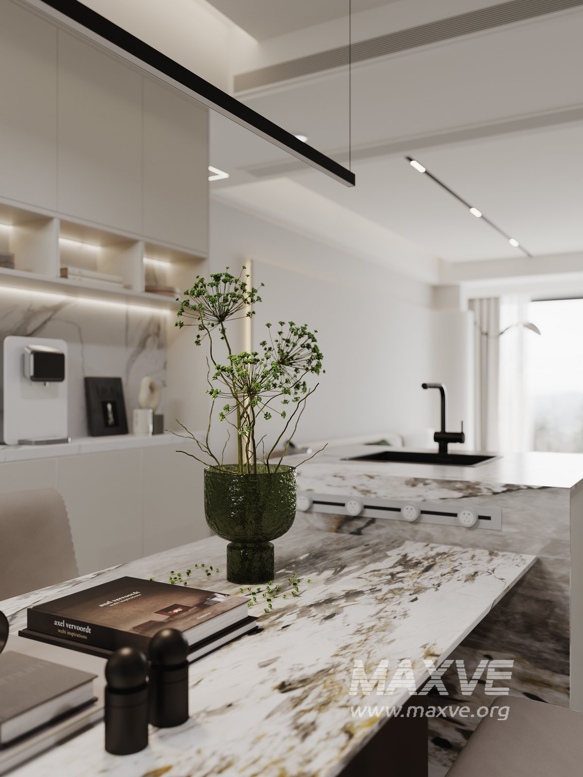 This fully textured interior scene with natural light setup is ready to render with Corona Renderer for 3D Studio MAX. This file does not have any type of protection. You can reuse the scene, the render settings, the lights, the materials, but above all, you can learn from the file by moving inside the project, observing how the light was created and handled, how materials are developed, what role each texture plays within them, and the values used in every single option.