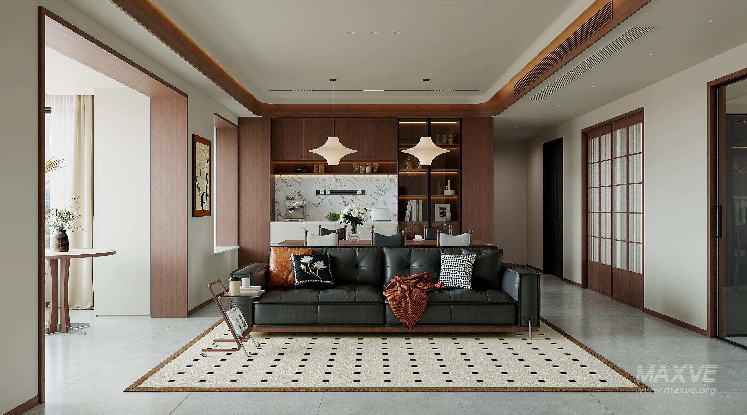 This Modern living room dining room 3D scene was built in 3ds Max 2021 and rendered using Corona. It includes clean geometry, proper scene organization, and is optimized for smooth rendering performance. The model setup follows standard practices, making it easy to import and adapt into a variety of workflows. Delivered in MAX format, it is well-suited for architectural visualization, concept development, or design presentation. Dominant color tones include: White tones, Beige tones, Silver tones.