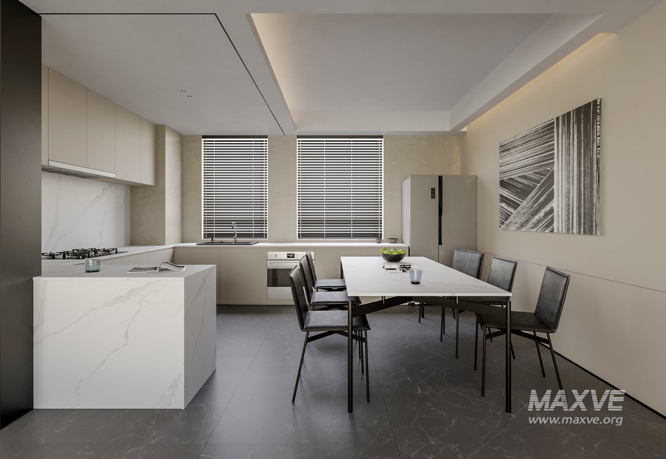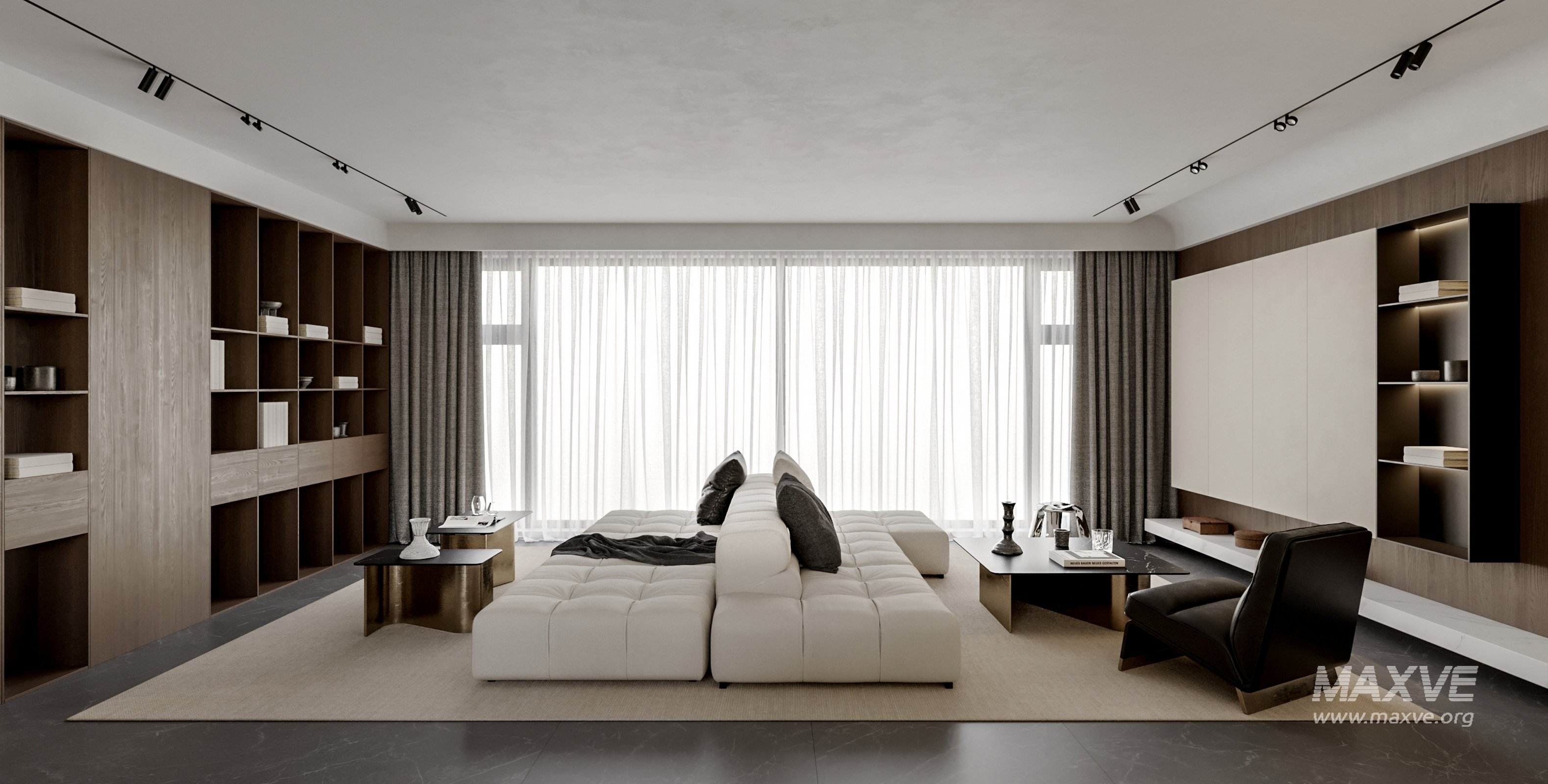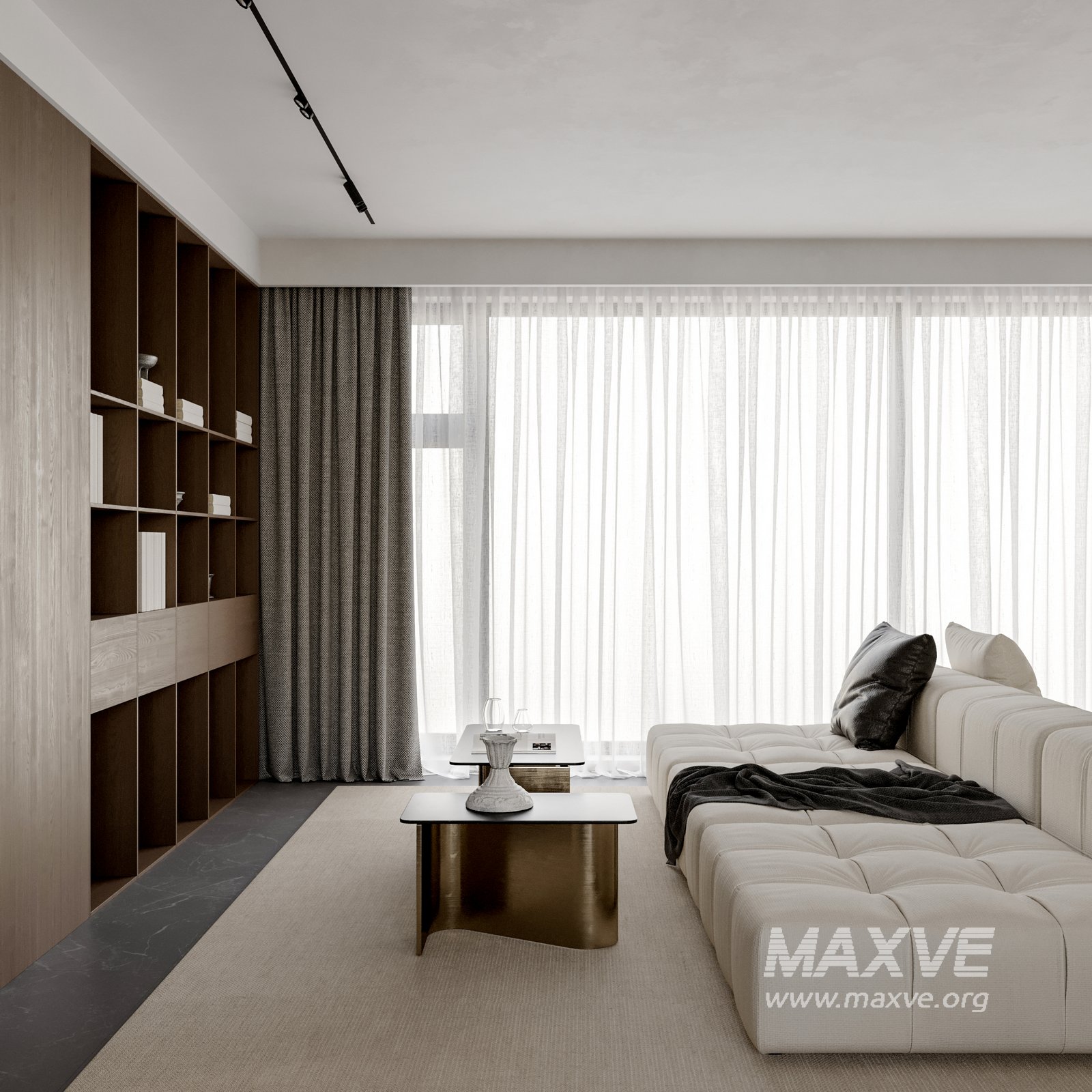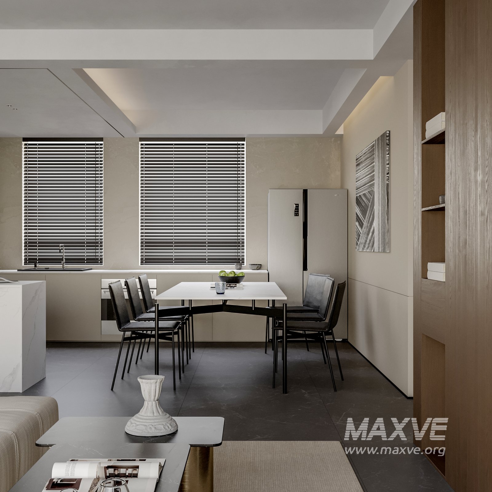 This fully textured interior scene with natural light setup is ready to render with Corona Renderer for 3D Studio MAX. This file does not have any type of protection. You can reuse the scene, the render settings, the lights, the materials, but above all, you can learn from the file by moving inside the project, observing how the light was created and handled, how materials are developed, what role each texture plays within them, and the values used in every single option.
