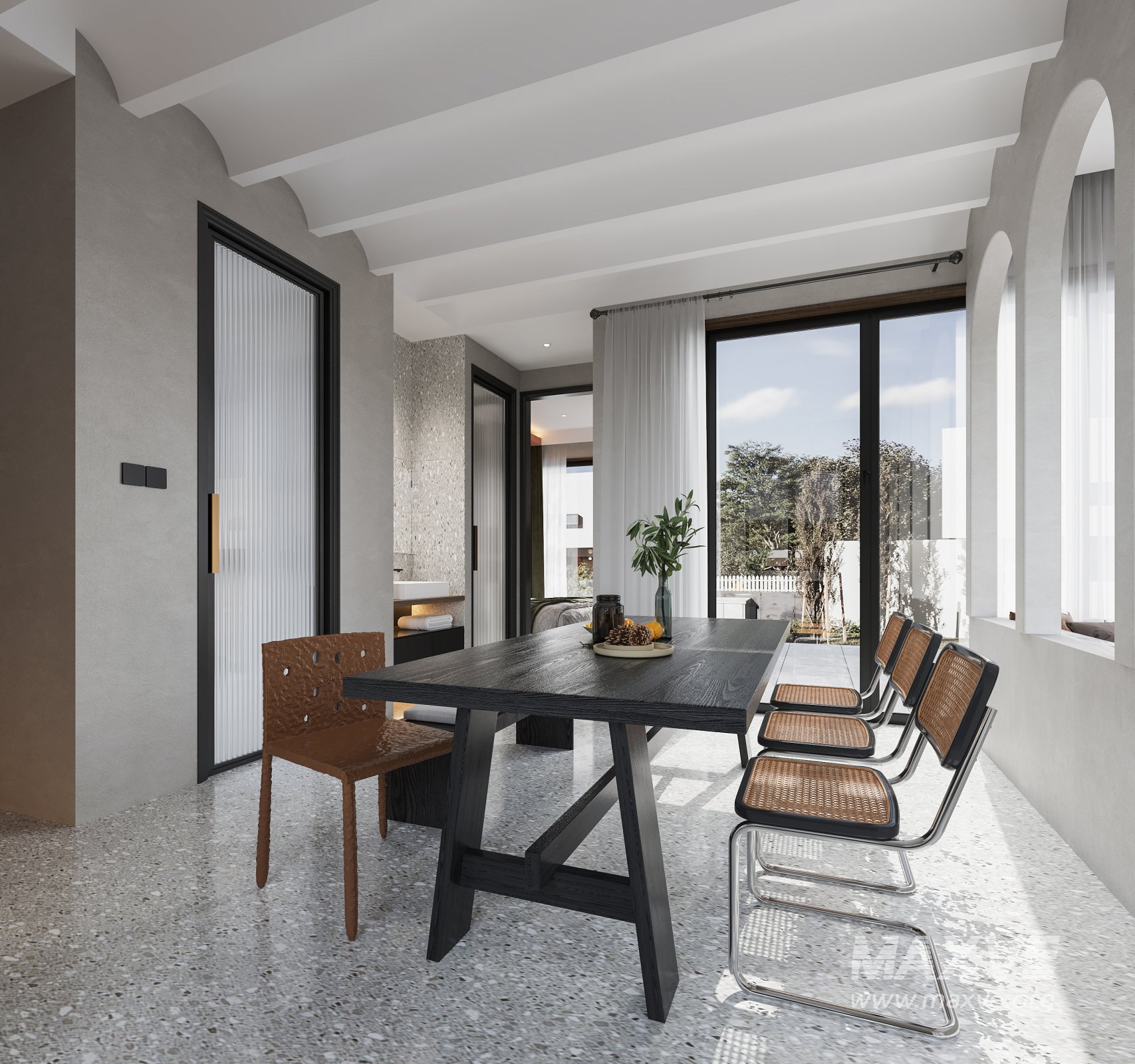 This Modern Living Room Dining Room Bedroom 3D scene was built in 3ds Max 2021 and rendered using Corona. It includes clean geometry, proper scene organization, and is optimized for smooth rendering performance. The model setup follows standard practices, making it easy to import and adapt into a variety of workflows. Delivered in MAX format, it is well-suited for architectural visualization, concept development, or design presentation. Dominant color tones include: White tones, Beige tones, Gray tones.