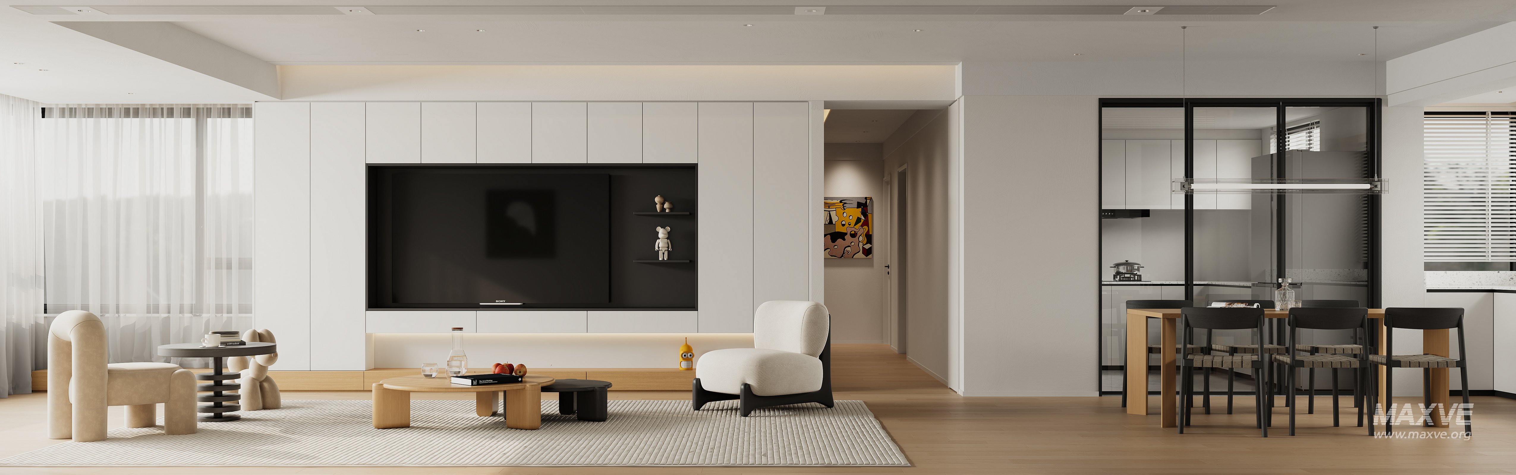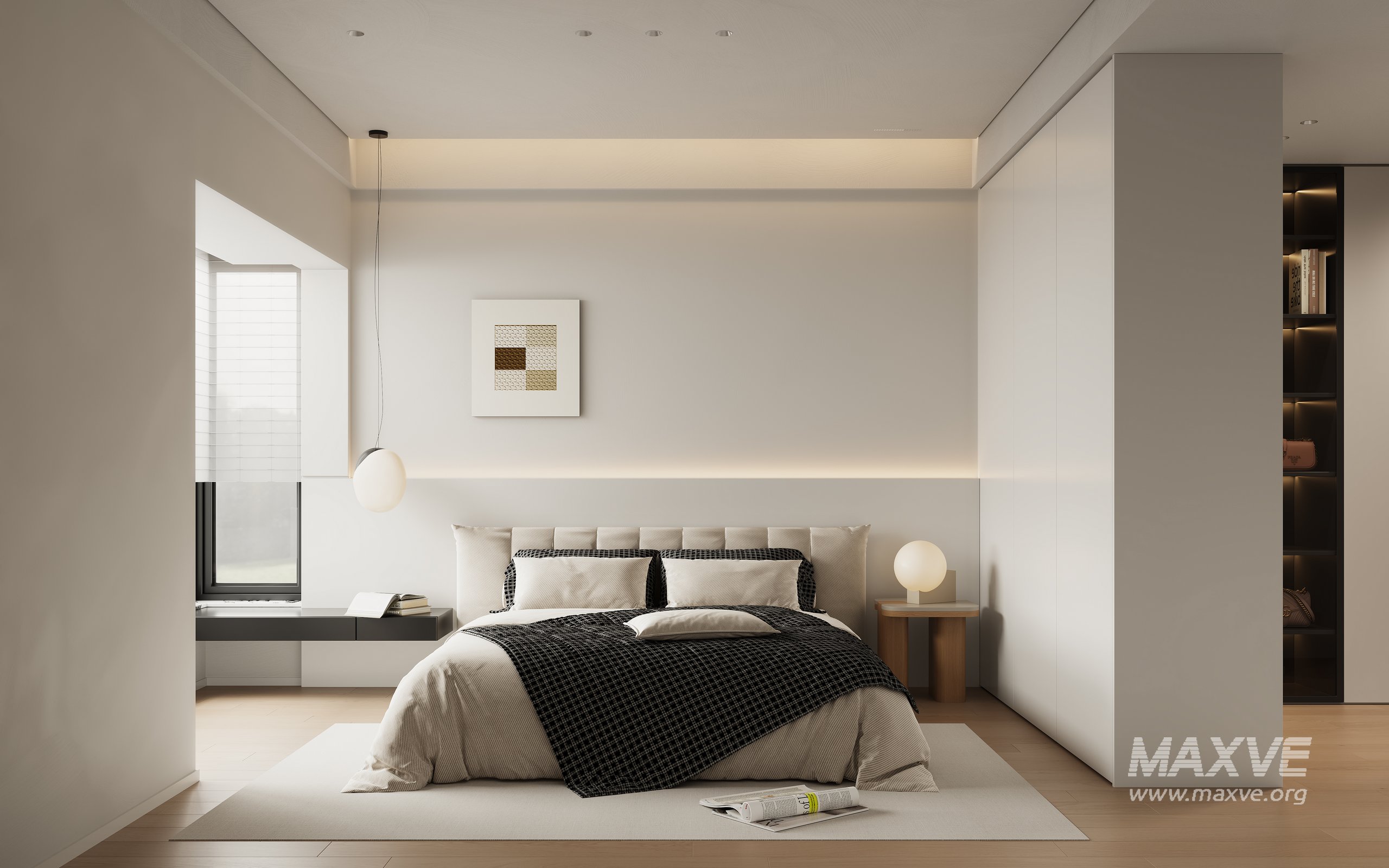 This fully textured interior scene with natural light setup is ready to render with Corona Renderer for 3D Studio MAX. This file does not have any type of protection. You can reuse the scene, the render settings, the lights, the materials, but above all, you can learn from the file by moving inside the project, observing how the light was created and handled, how materials are developed, what role each texture plays within them, and the values used in every single option.