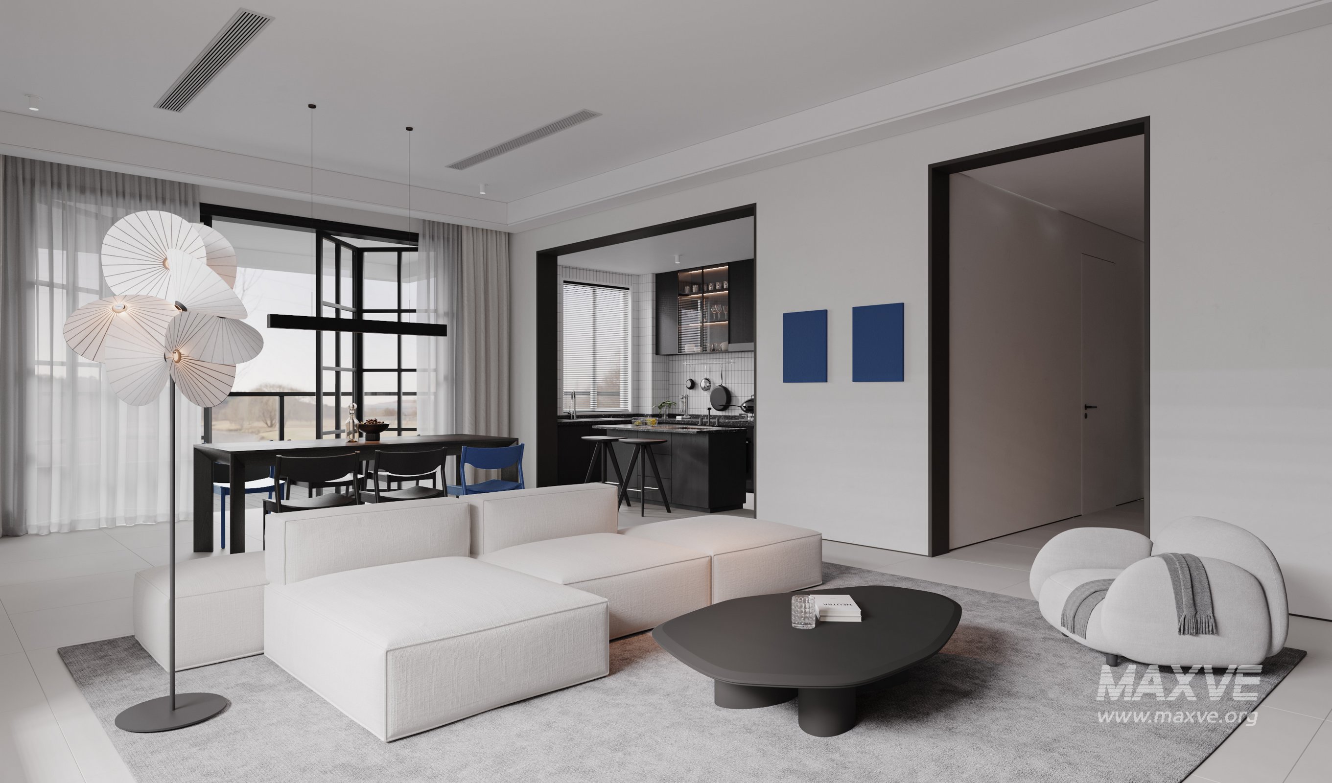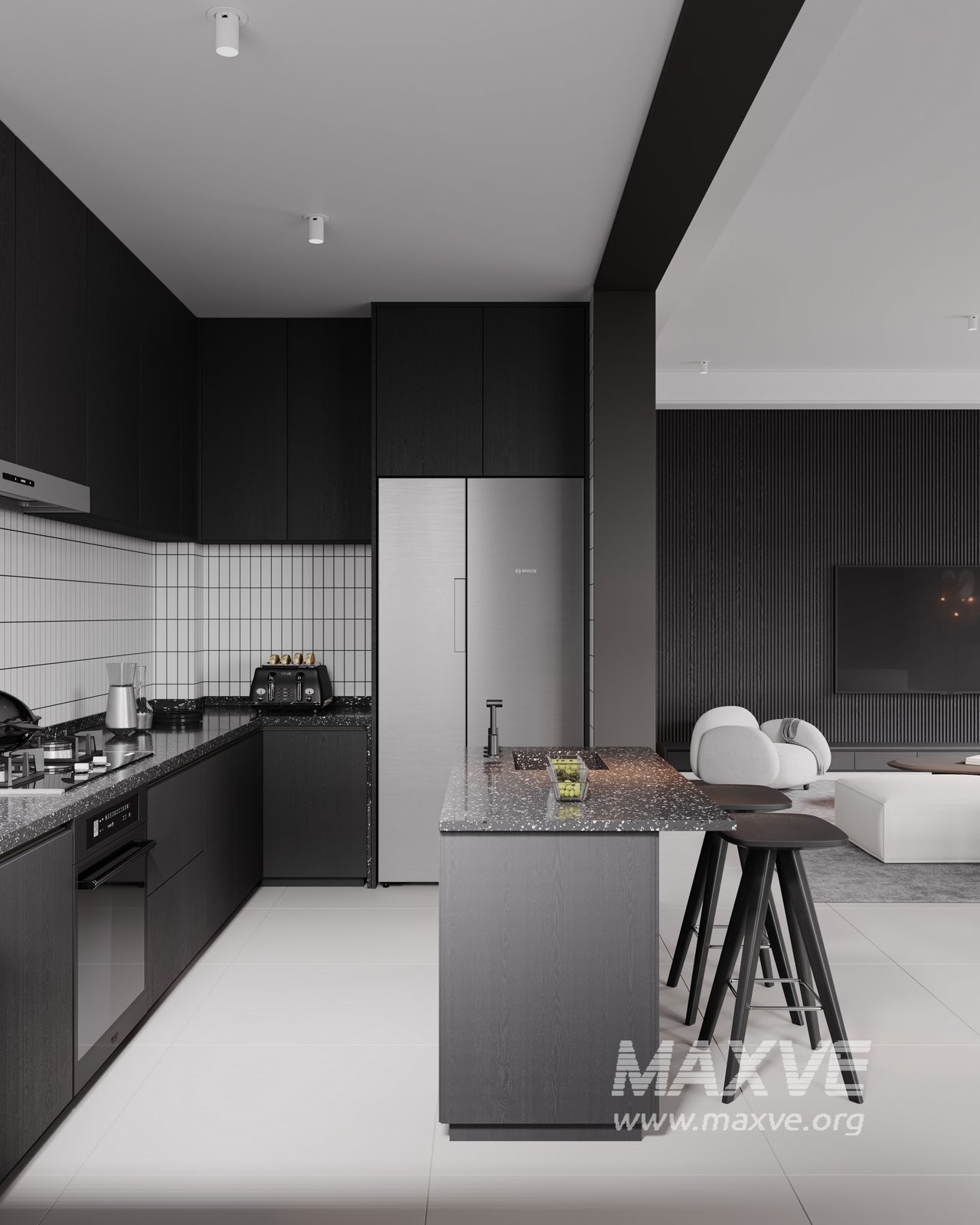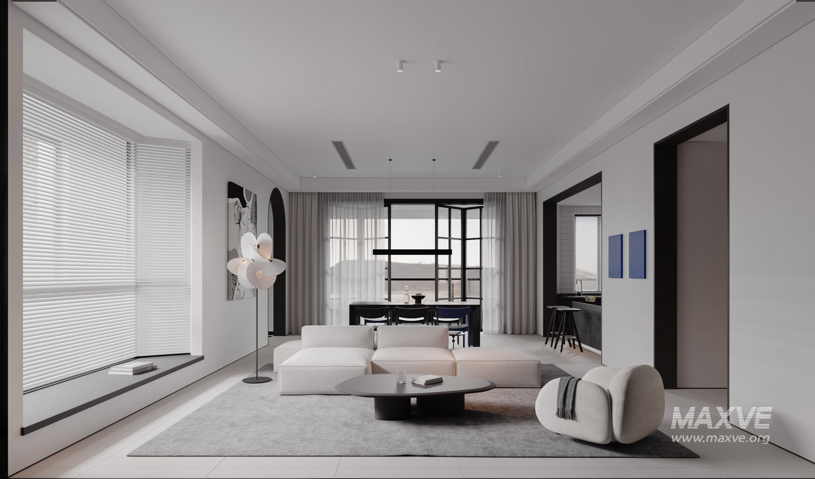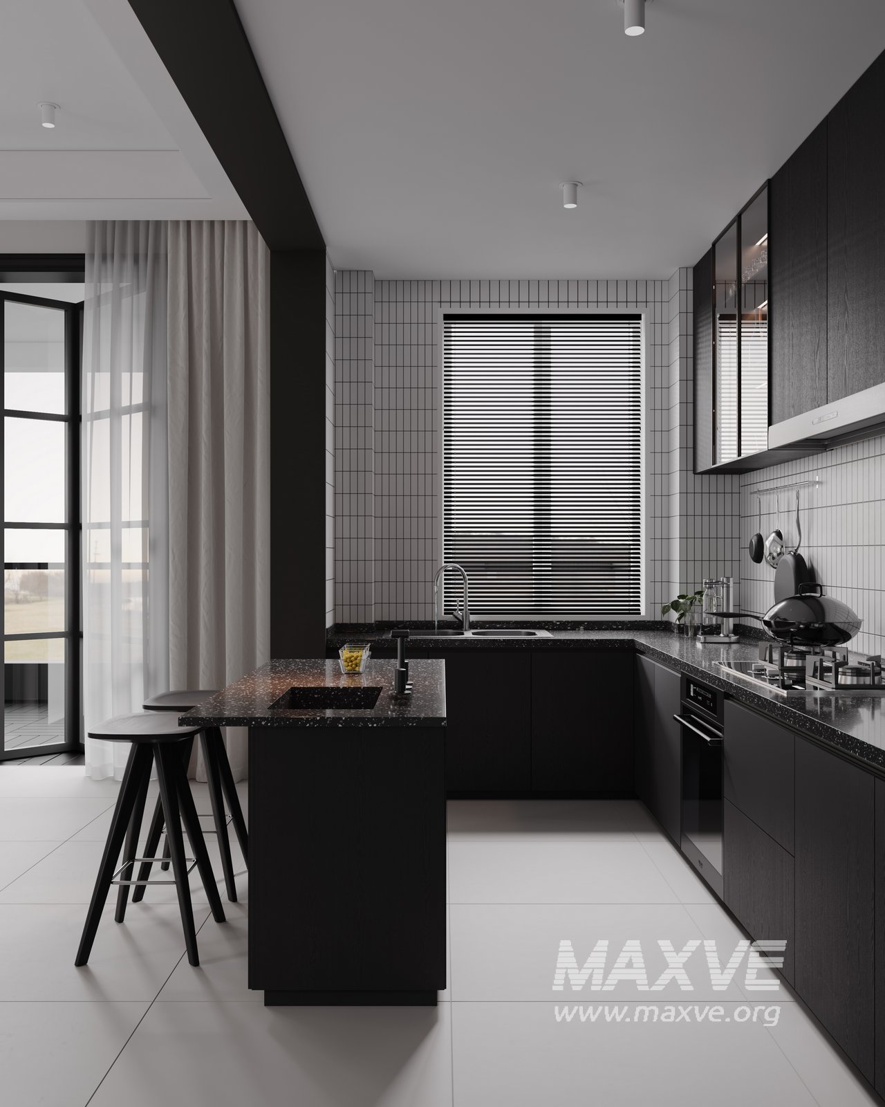 This fully textured interior scene with natural light setup is ready to render with Corona Renderer for 3D Studio MAX. This file does not have any type of protection. You can reuse the scene, the render settings, the lights, the materials, but above all, you can learn from the file by moving inside the project, observing how the light was created and handled, how materials are developed, what role each texture plays within them, and the values used in every single option.