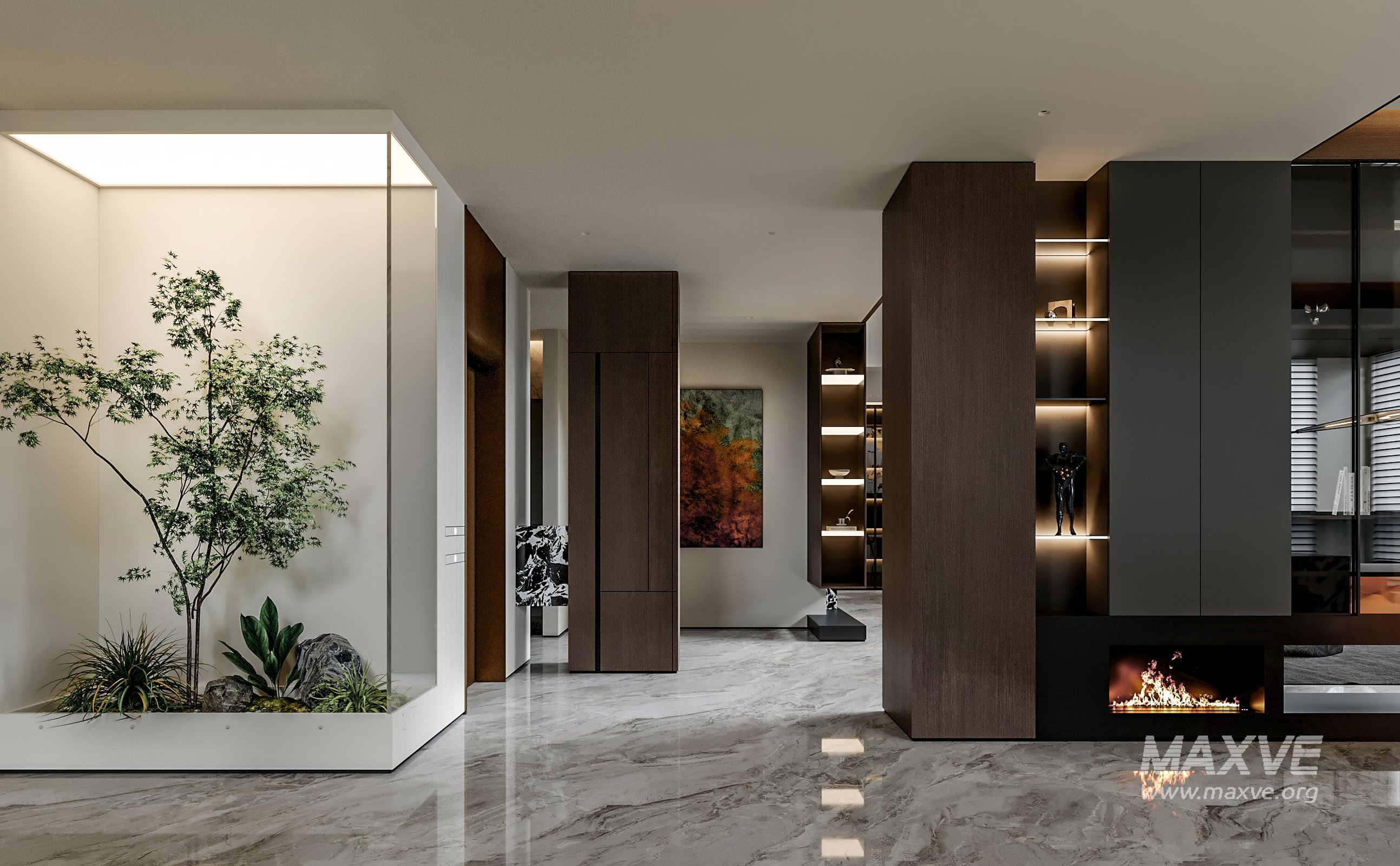 This fully textured interior scene with natural light setup is ready to render with Corona Renderer for 3D Studio MAX. This file does not have any type of protection. You can reuse the scene, the render settings, the lights, the materials, but above all, you can learn from the file by moving inside the project, observing how the light was created and handled, how materials are developed, what role each texture plays within them, and the values used in every single option.