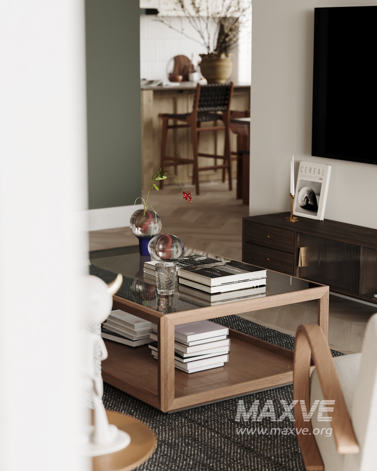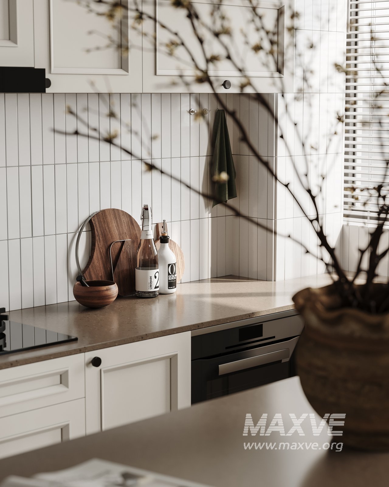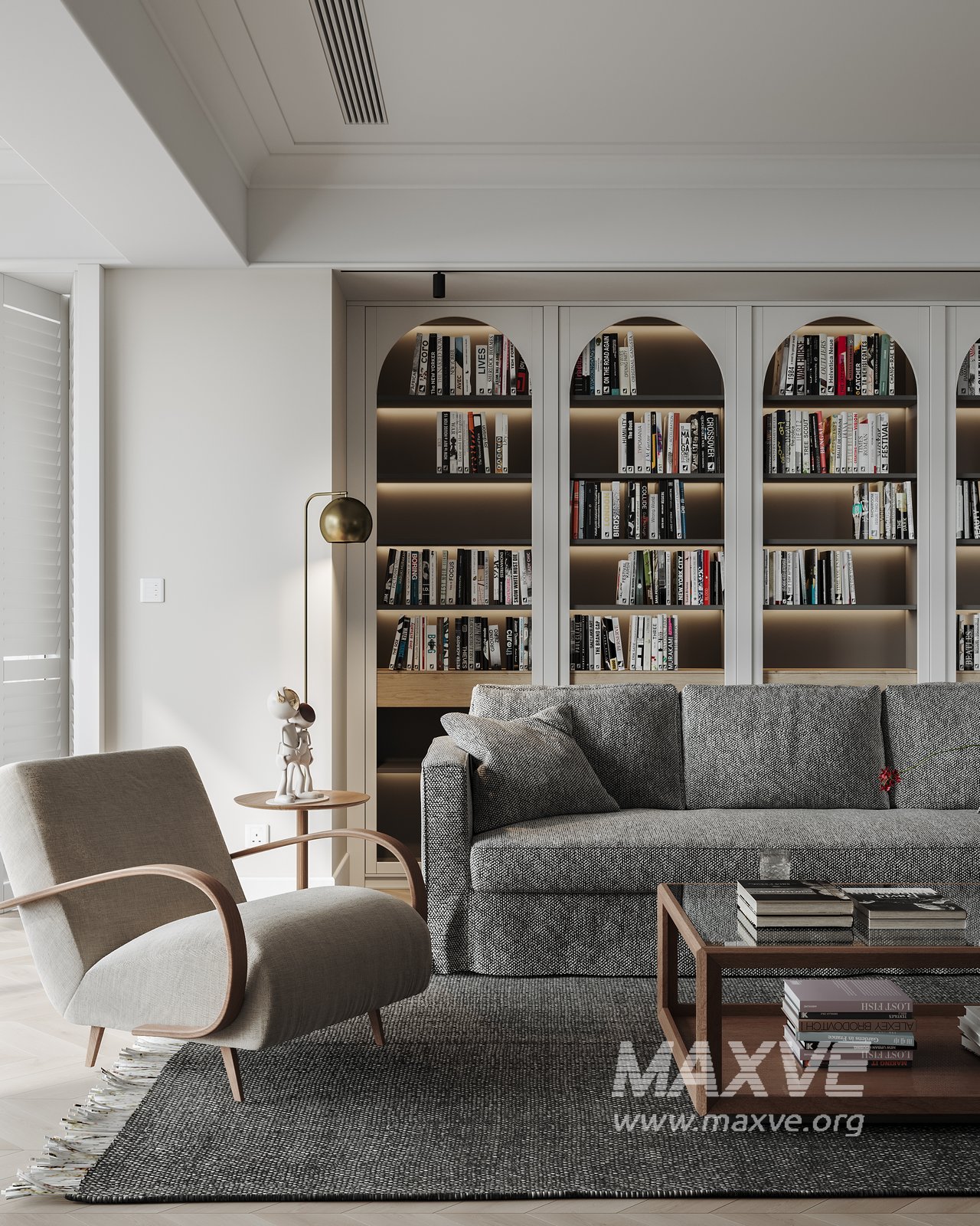 This fully textured interior scene with natural light setup is ready to render with Corona Renderer for 3D Studio MAX. This file does not have any type of protection. You can reuse the scene, the render settings, the lights, the materials, but above all, you can learn from the file by moving inside the project, observing how the light was created and handled, how materials are developed, what role each texture plays within them, and the values used in every single option.