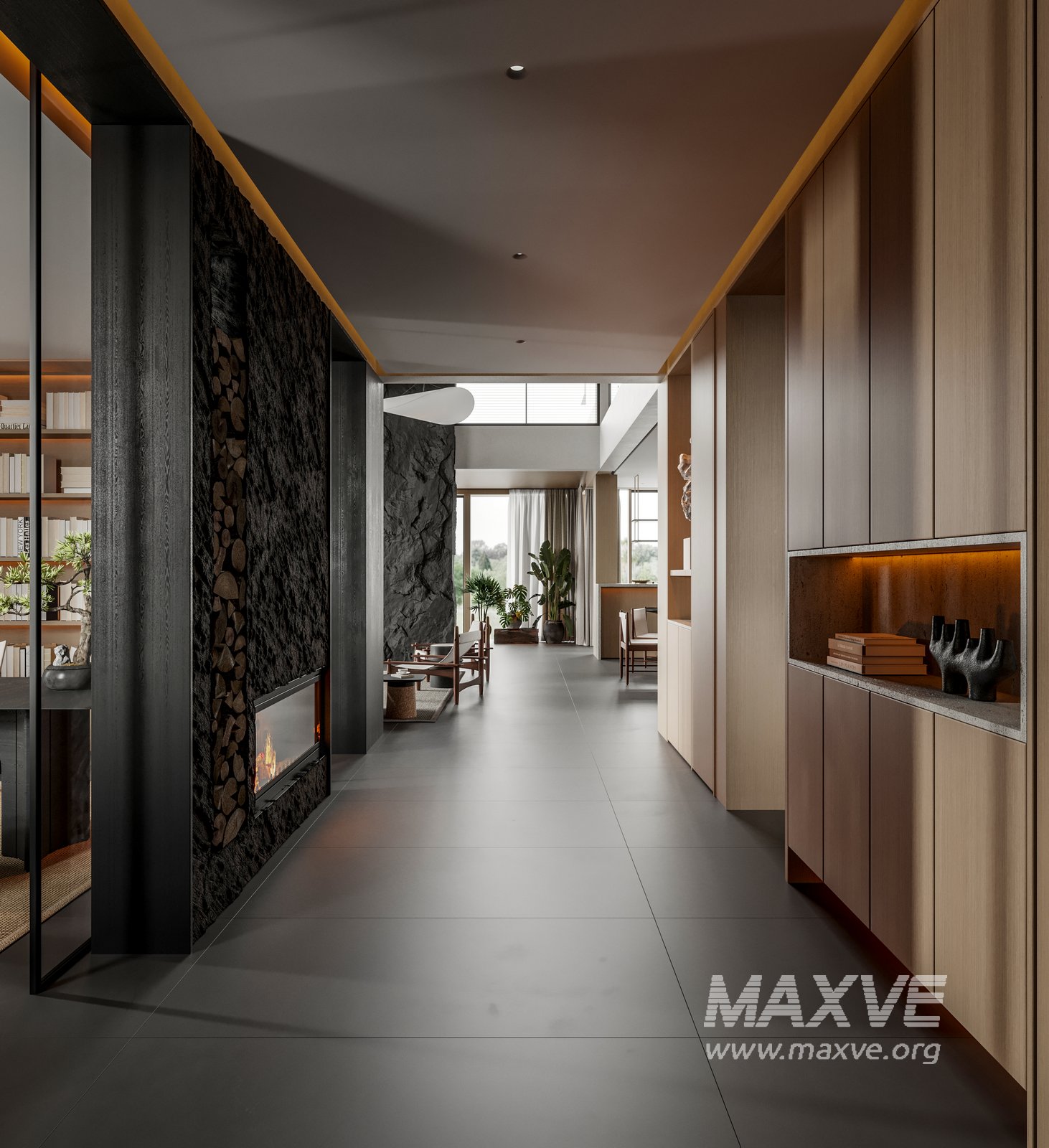 This fully textured interior scene with natural light setup is ready to render with Corona Renderer for 3D Studio MAX. This file does not have any type of protection. You can reuse the scene, the render settings, the lights, the materials, but above all, you can learn from the file by moving inside the project, observing how the light was created and handled, how materials are developed, what role each texture plays within them, and the values used in every single option.
