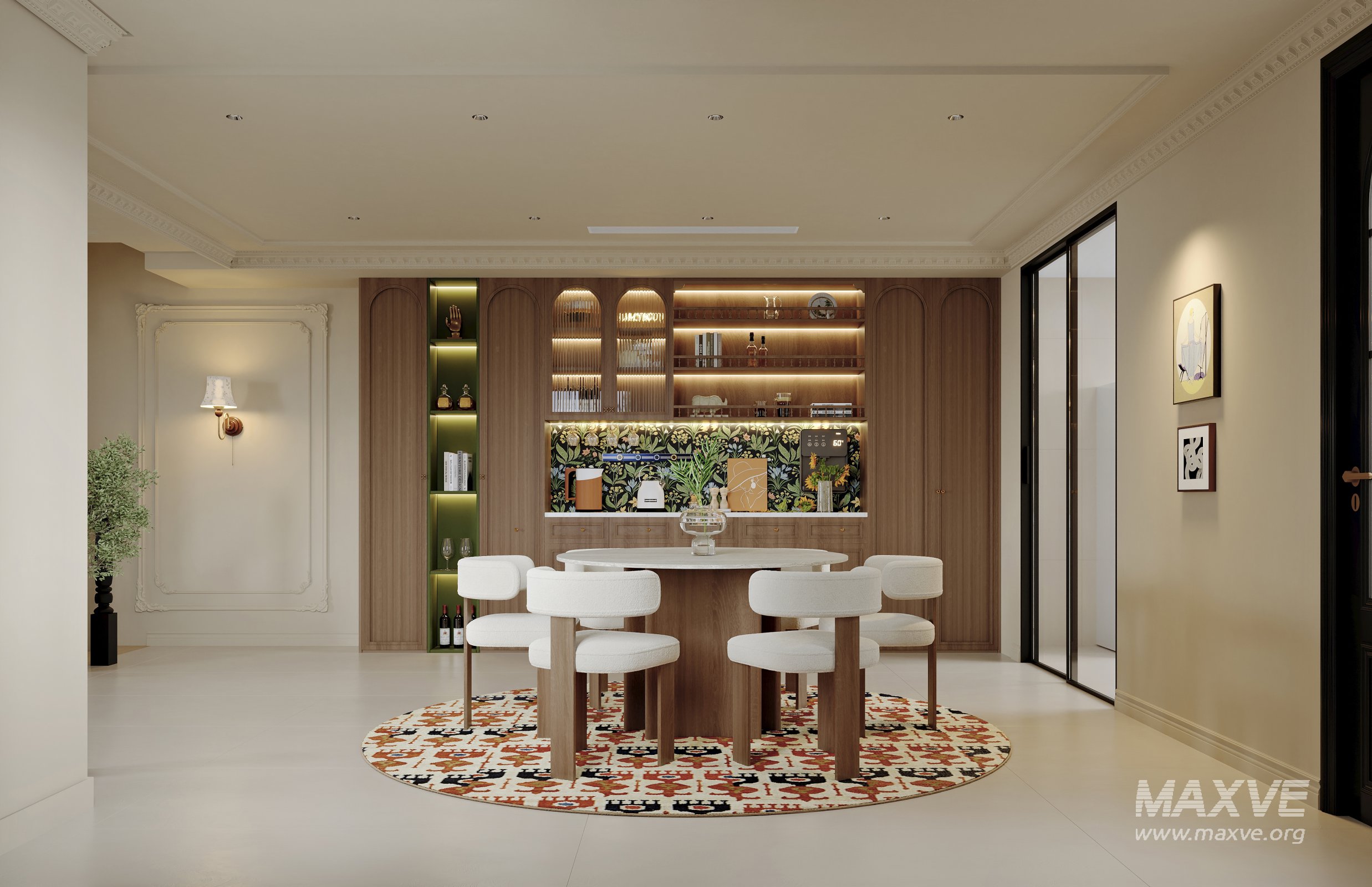 This Modern Luxurious living room and dining room 3D scene was built in 3ds Max 2021 and rendered using Corona. It includes clean geometry, proper scene organization, and is optimized for smooth rendering performance. The model setup follows standard practices, making it easy to import and adapt into a variety of workflows. Delivered in MAX format, it is well-suited for architectural visualization, concept development, or design presentation. Dominant color tones include: White tones, Beige tones, Gray tones.