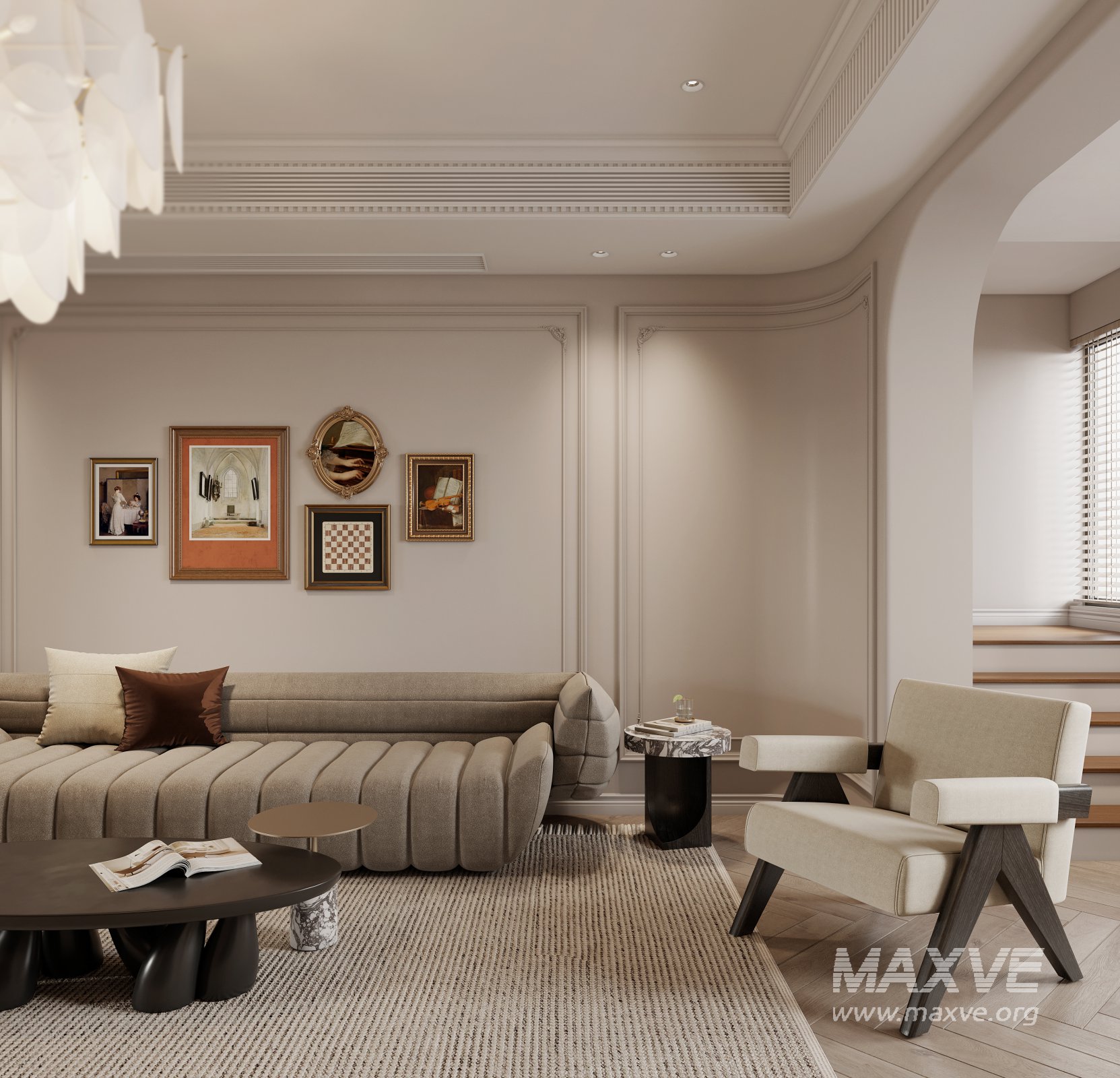 This Classic Luxurious living room and dining room 3D scene was built in 3ds Max 2021 and rendered using Corona. It includes clean geometry, proper scene organization, and is optimized for smooth rendering performance. The model setup follows standard practices, making it easy to import and adapt into a variety of workflows. Delivered in MAX format, it is well-suited for architectural visualization, concept development, or design presentation. Dominant color tones include: White tones, Beige tones, Silver tones, Gray tones.