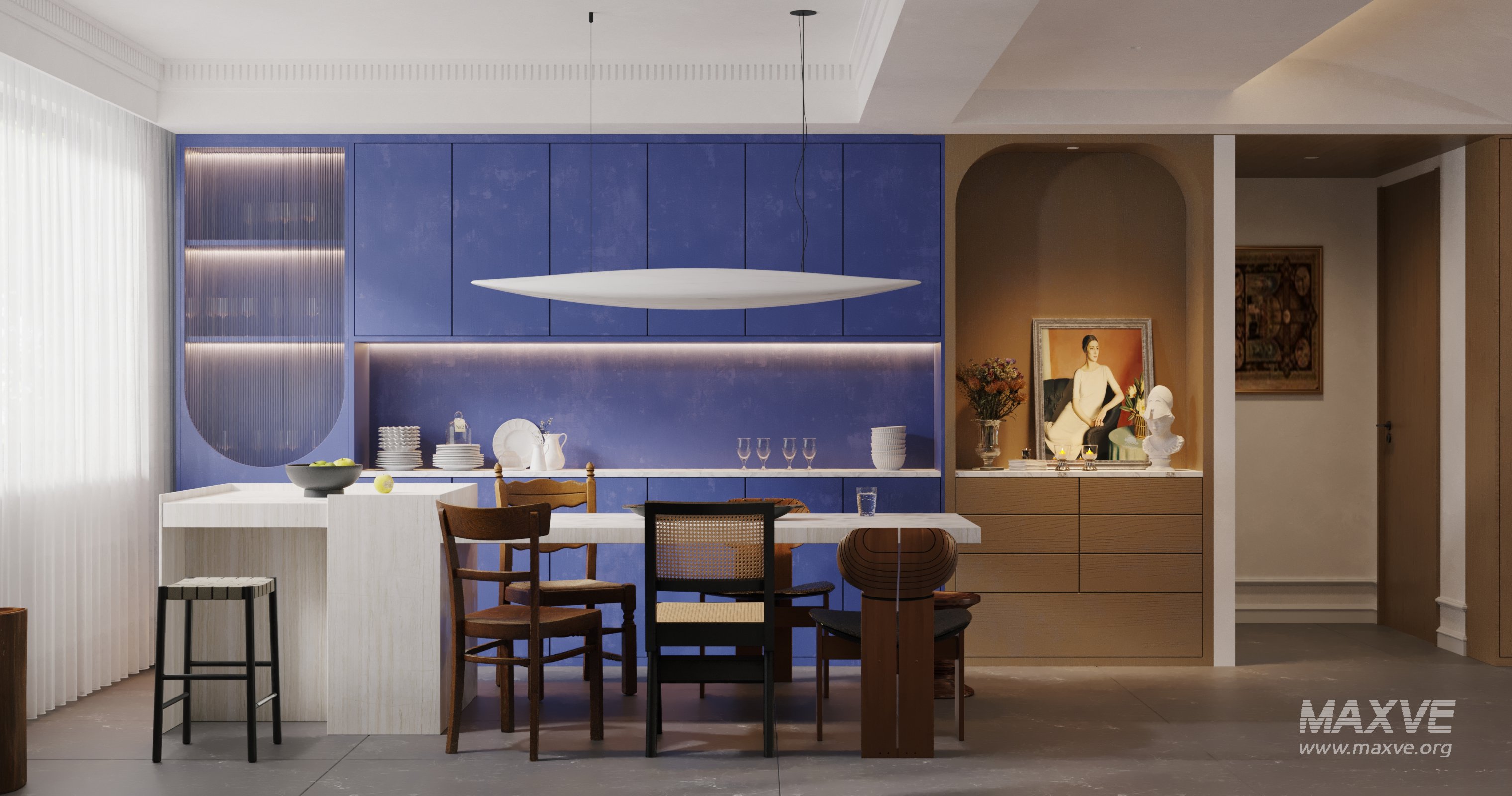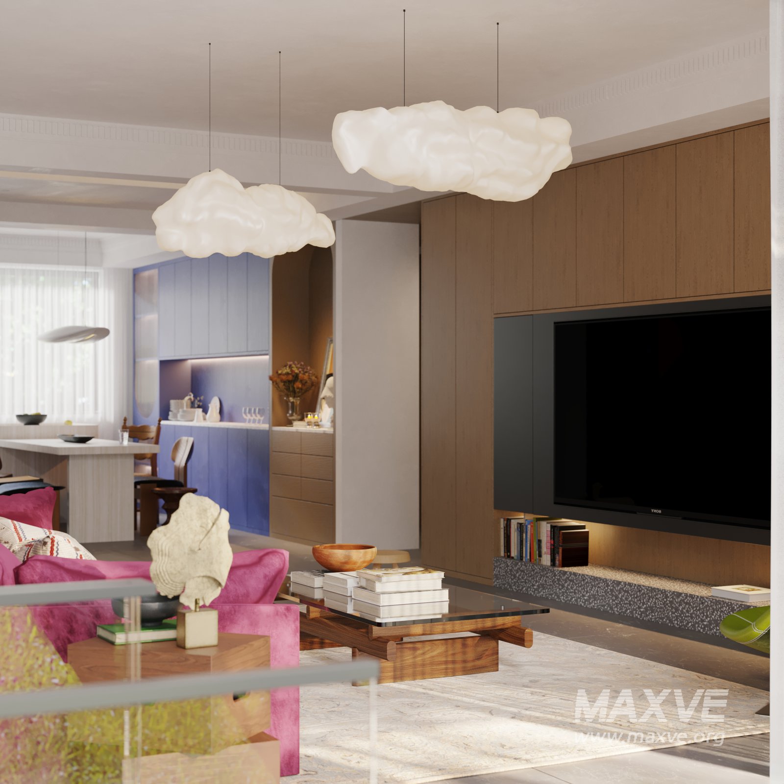 This Modern Luxurious living room and dining room 3D scene was built in 3ds Max 2021 and rendered using Corona. It includes clean geometry, proper scene organization, and is optimized for smooth rendering performance. The model setup follows standard practices, making it easy to import and adapt into a variety of workflows. Delivered in MAX format, it is well-suited for architectural visualization, concept development, or design presentation. Dominant color tones include: White tones, Beige tones, Silver tones, Gray tones.