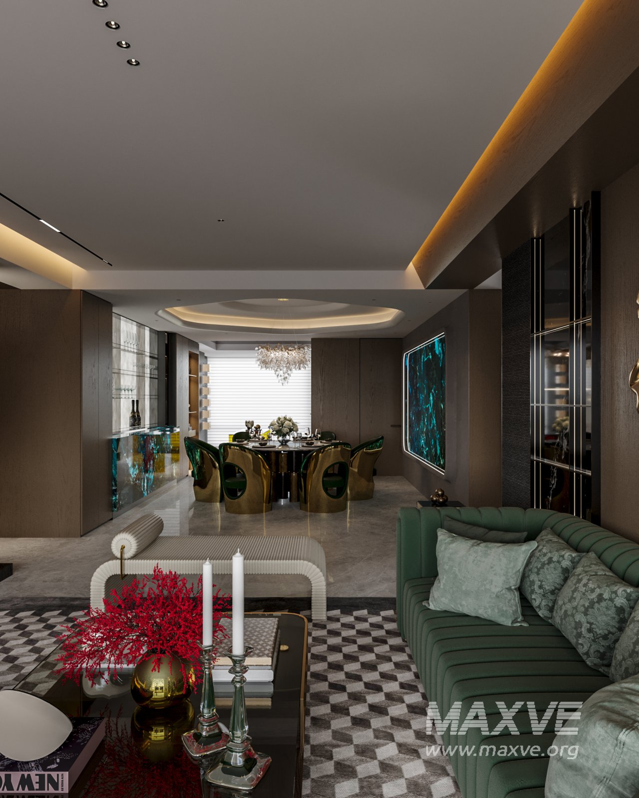 Luxurious living room and dining room