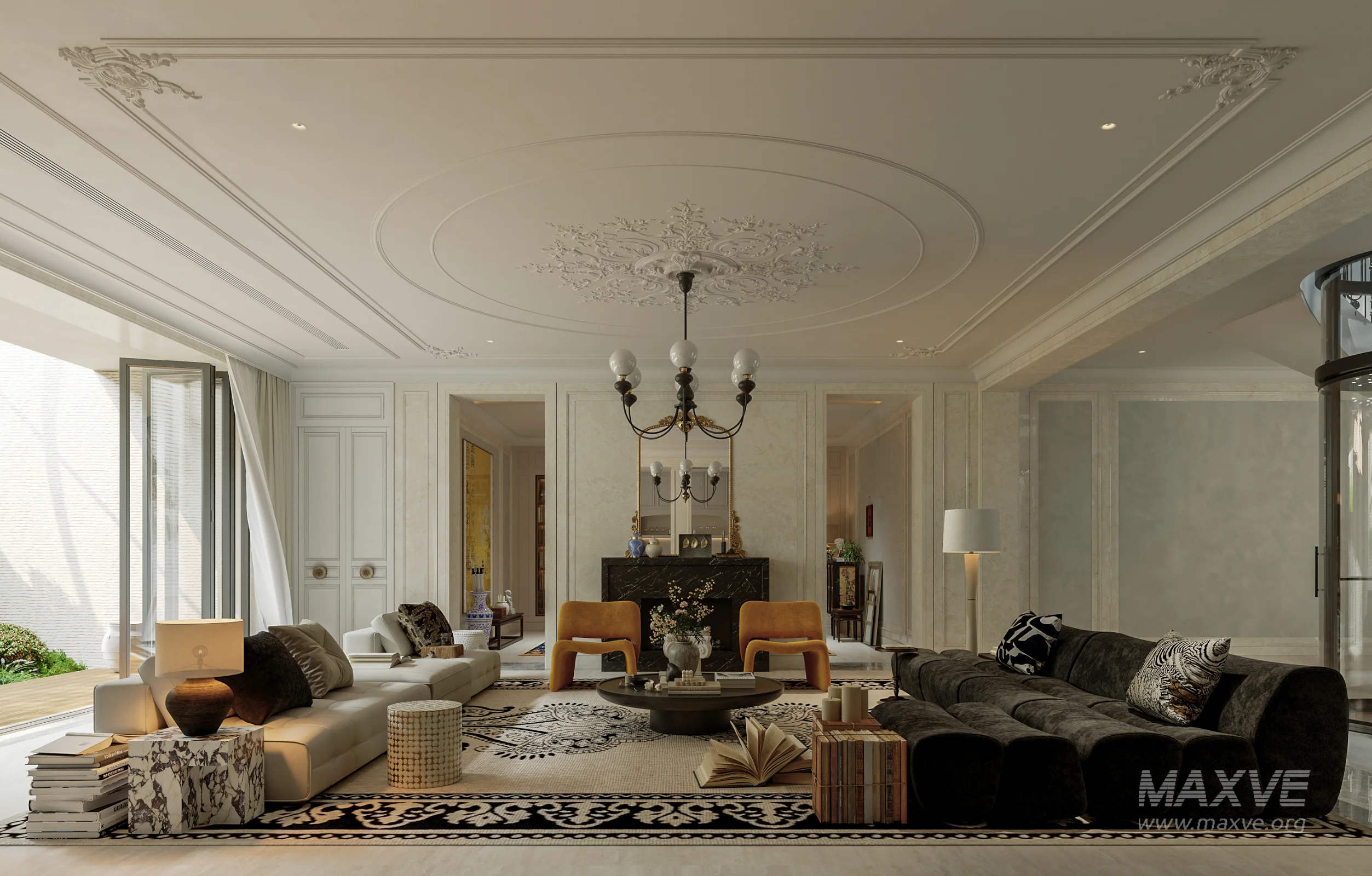 Luxury villa living room and work room