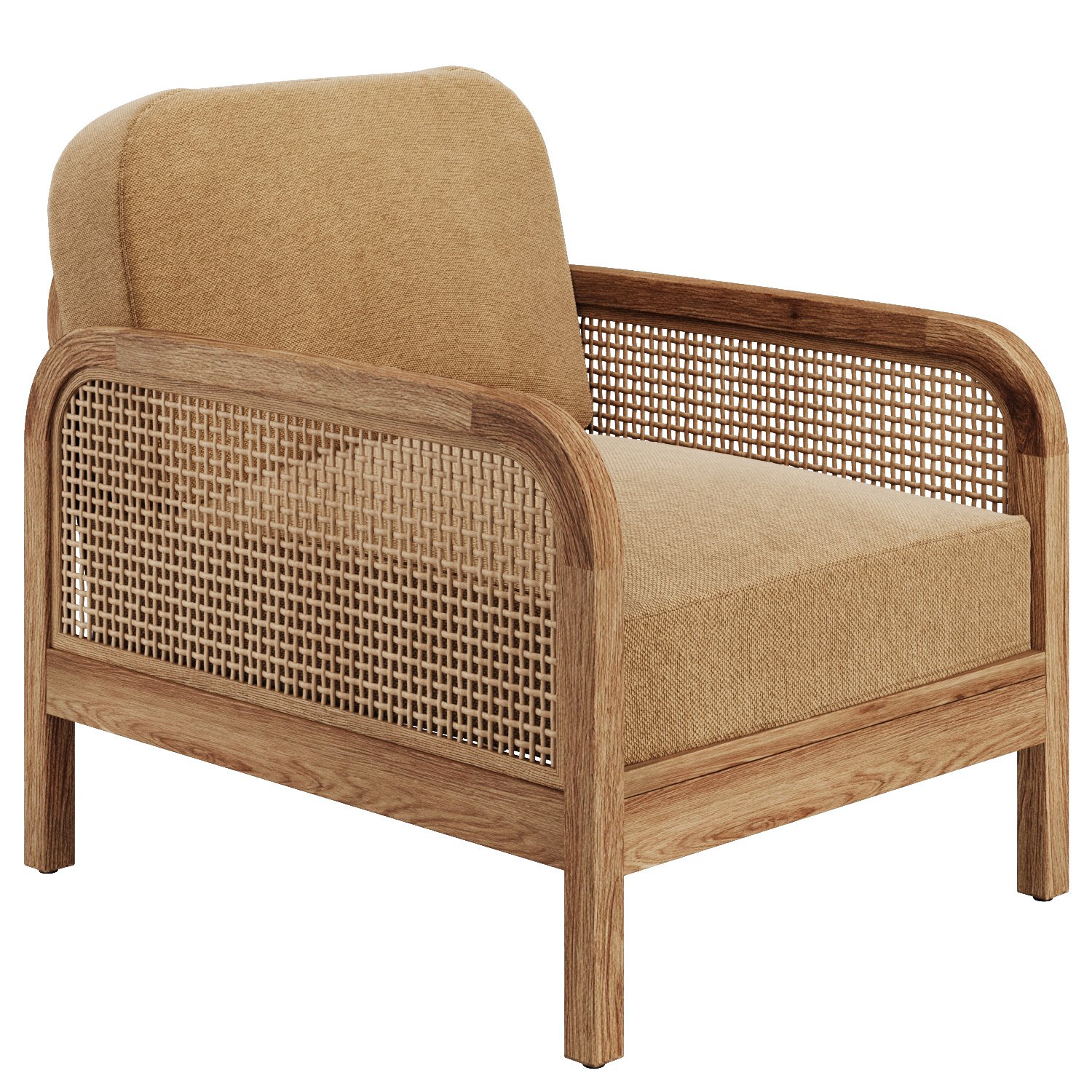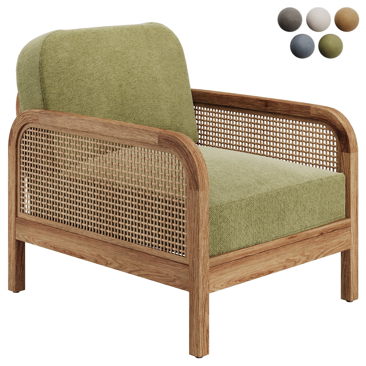 fabric, rattan, wood | |