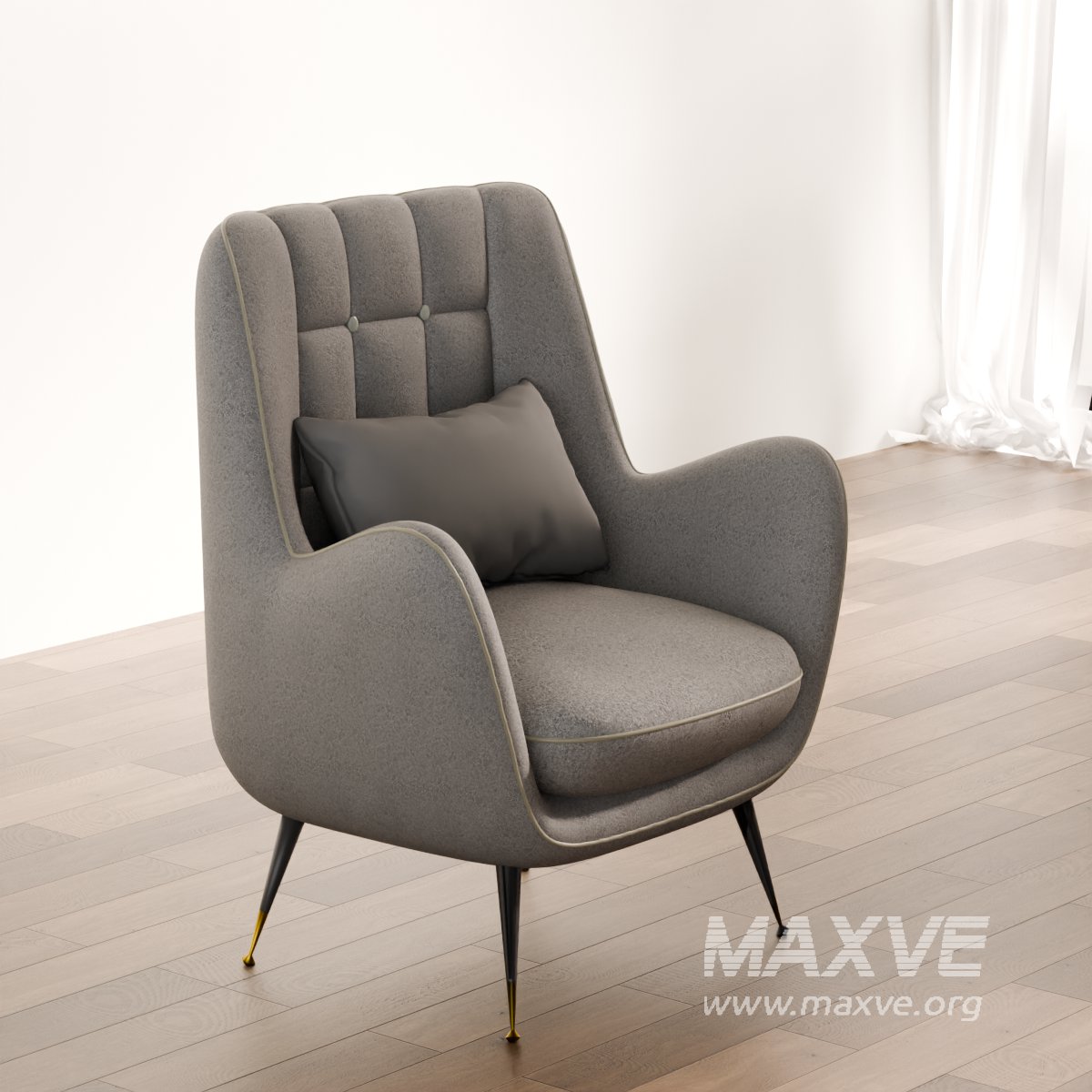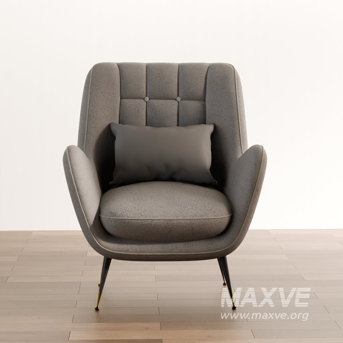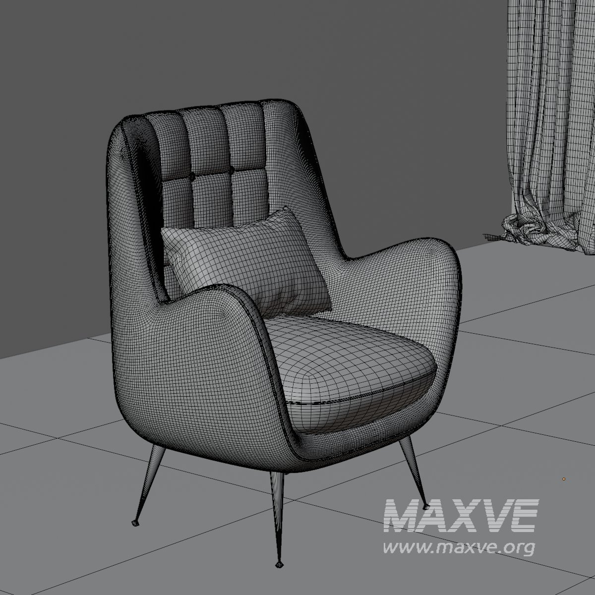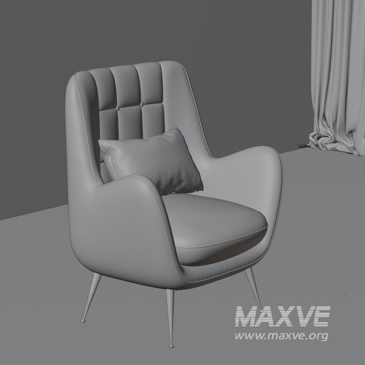 This premium-quality 3D model showcases a mid-century modern high-back armchair, designed with elegant quilting on the backrest and paired with plush cushions for added comfort. Ideal for use in architectural visualization, virtual interiors, and stylish home design scenes.