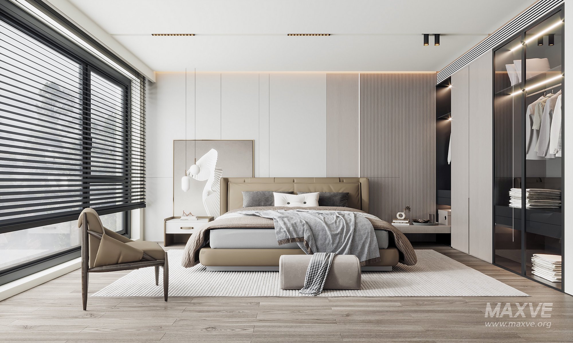 This Modern bedroom 3D scene was built in 3ds Max 2014 and rendered using Vray. It includes clean geometry, proper scene organization, and is optimized for smooth rendering performance. The model setup follows standard practices, making it easy to import and adapt into a variety of workflows. Delivered in MAX format, it is well-suited for architectural visualization, concept development, or design presentation.