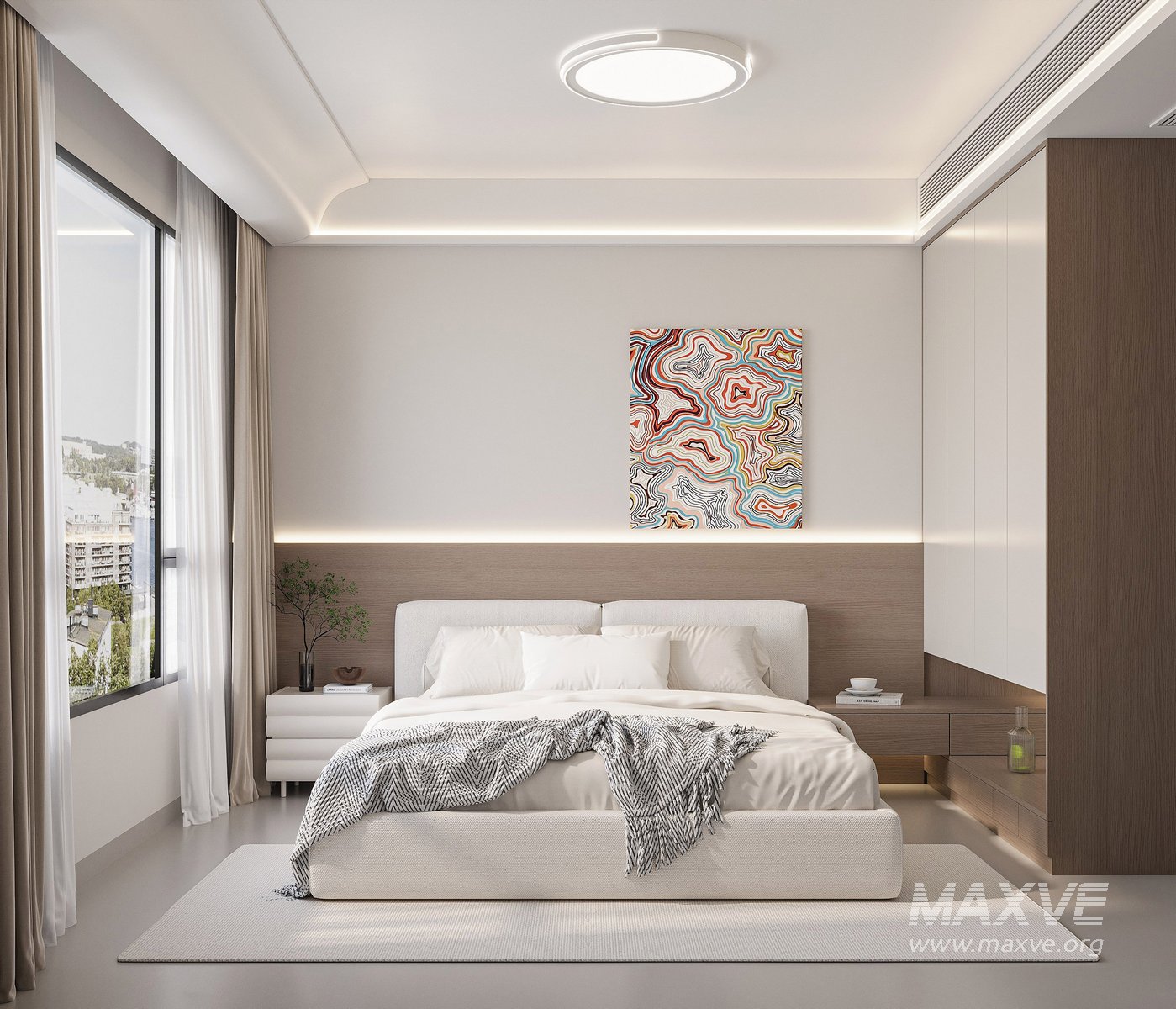 This Modern bedroom 3D scene was built in 3ds Max 2018 and rendered using Vray. It includes clean geometry, proper scene organization, and is optimized for smooth rendering performance. The model setup follows standard practices, making it easy to import and adapt into a variety of workflows. Delivered in MAX format, it is well-suited for architectural visualization, concept development, or design presentation.