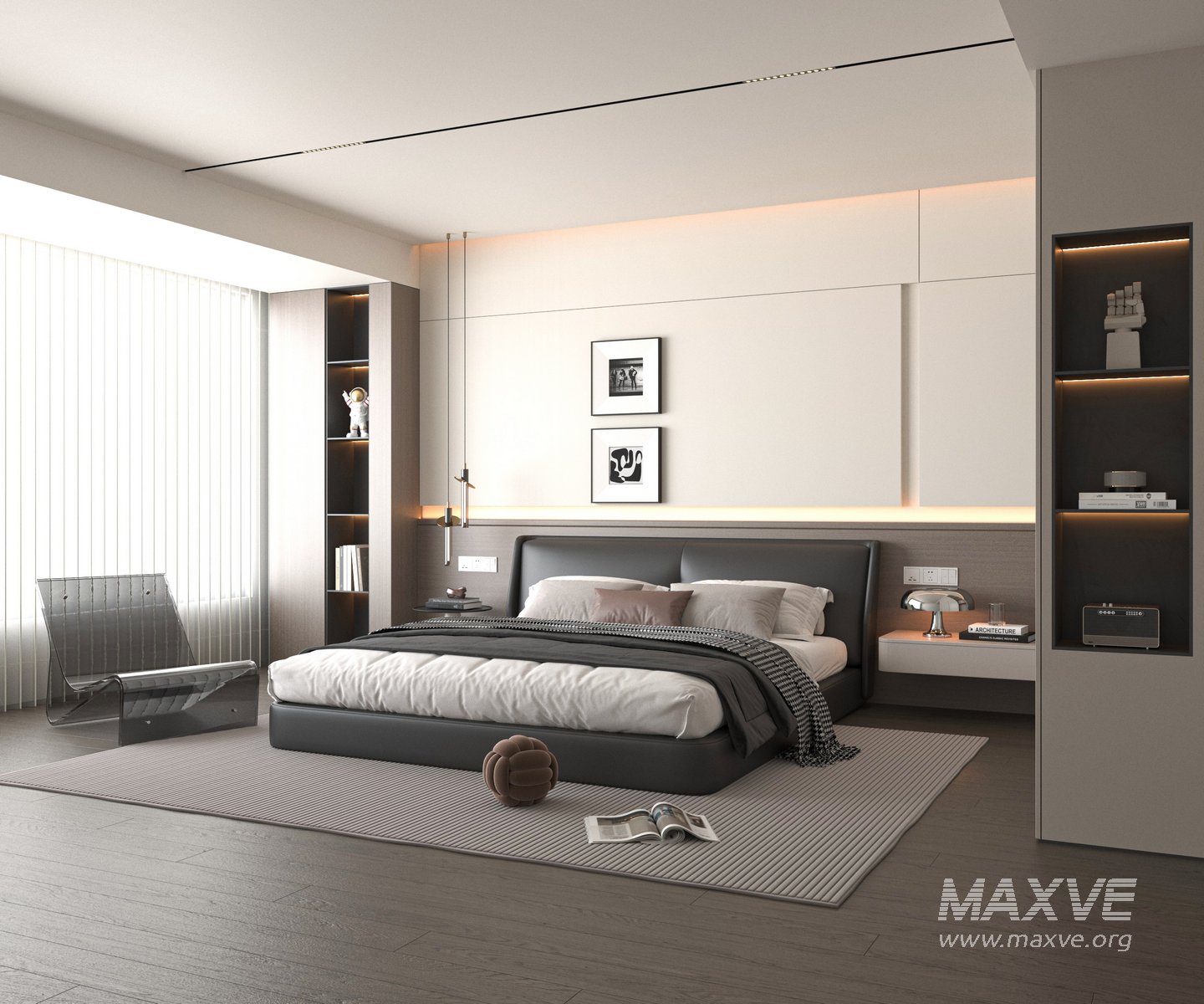 This Modern bedroom 3D scene was built in 3ds Max 2018 and rendered using Vray. It includes clean geometry, proper scene organization, and is optimized for smooth rendering performance. The model setup follows standard practices, making it easy to import and adapt into a variety of workflows. Delivered in MAX format, it is well-suited for architectural visualization, concept development, or design presentation.