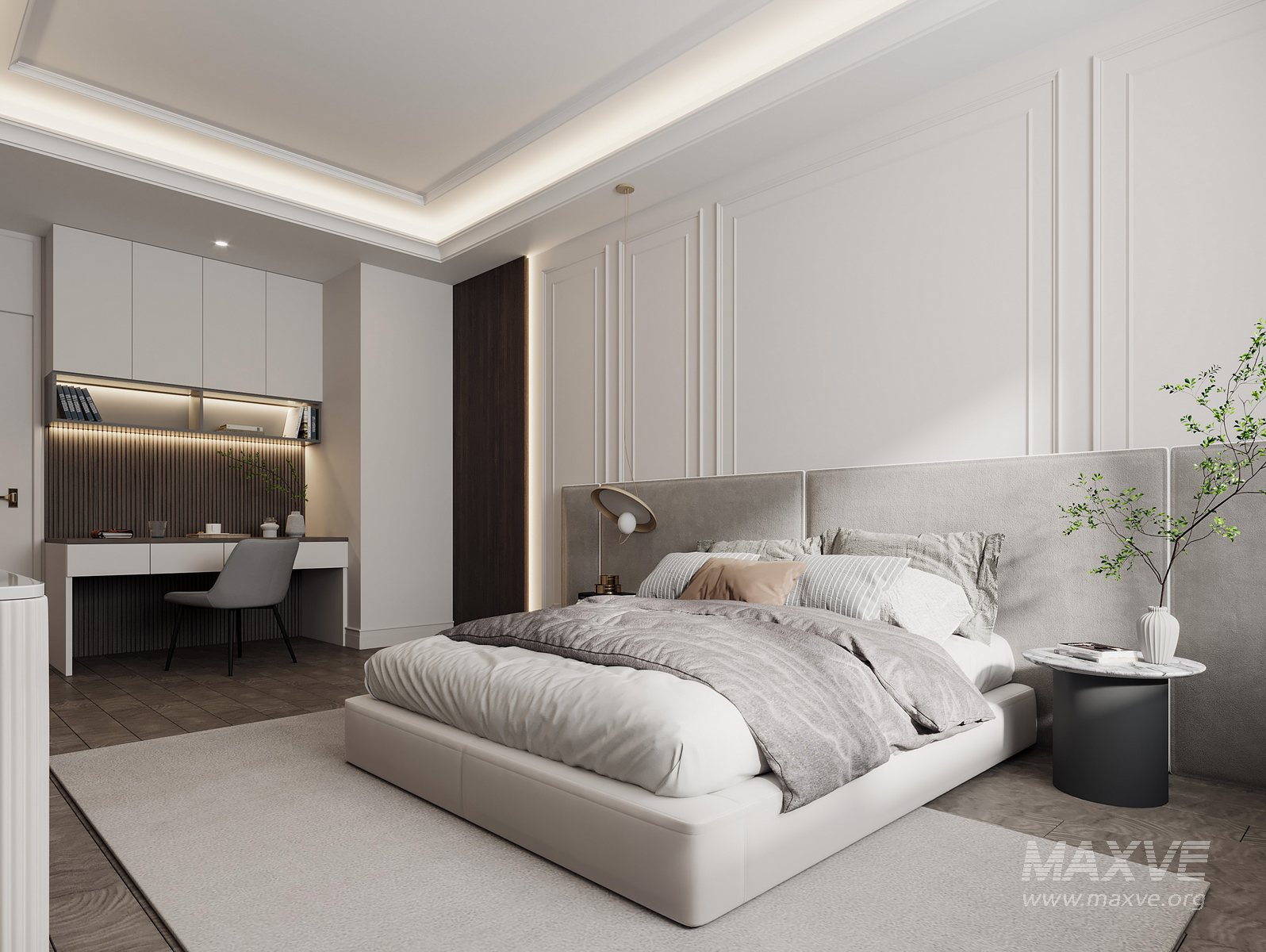This Modern bedroom 3D scene was built in 3ds Max 2014 and rendered using Vray. It includes clean geometry, proper scene organization, and is optimized for smooth rendering performance. The model setup follows standard practices, making it easy to import and adapt into a variety of workflows. Delivered in MAX format, it is well-suited for architectural visualization, concept development, or design presentation.