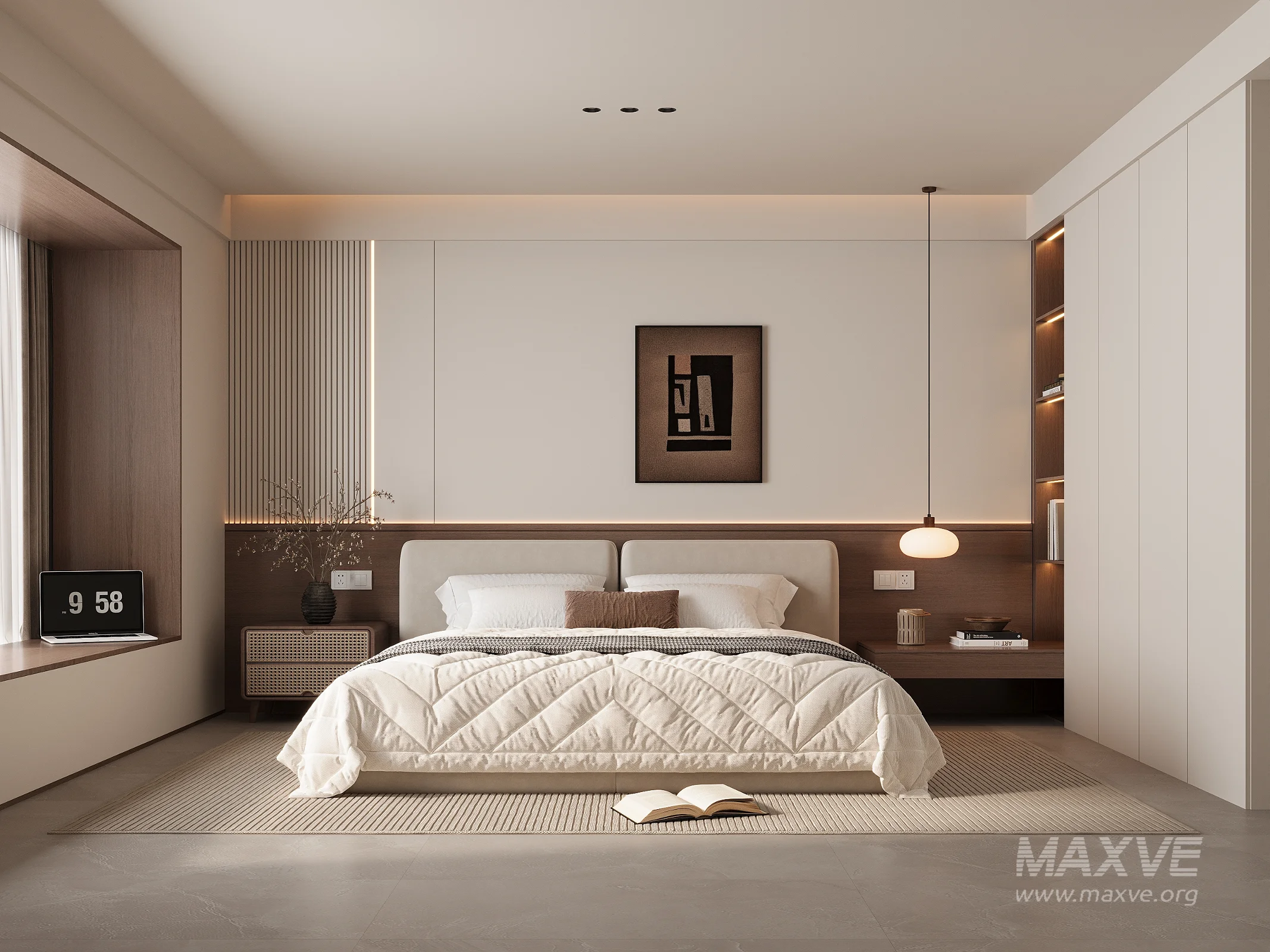This modern bedroom 3D scene was built in 3ds Max 2018 and rendered using Vray. It includes clean geometry, proper scene organization, and is optimized for smooth rendering performance. The model setup follows standard practices, making it easy to import and adapt into a variety of workflows. Delivered in MAX format, it is well-suited for architectural visualization, concept development, or design presentation.