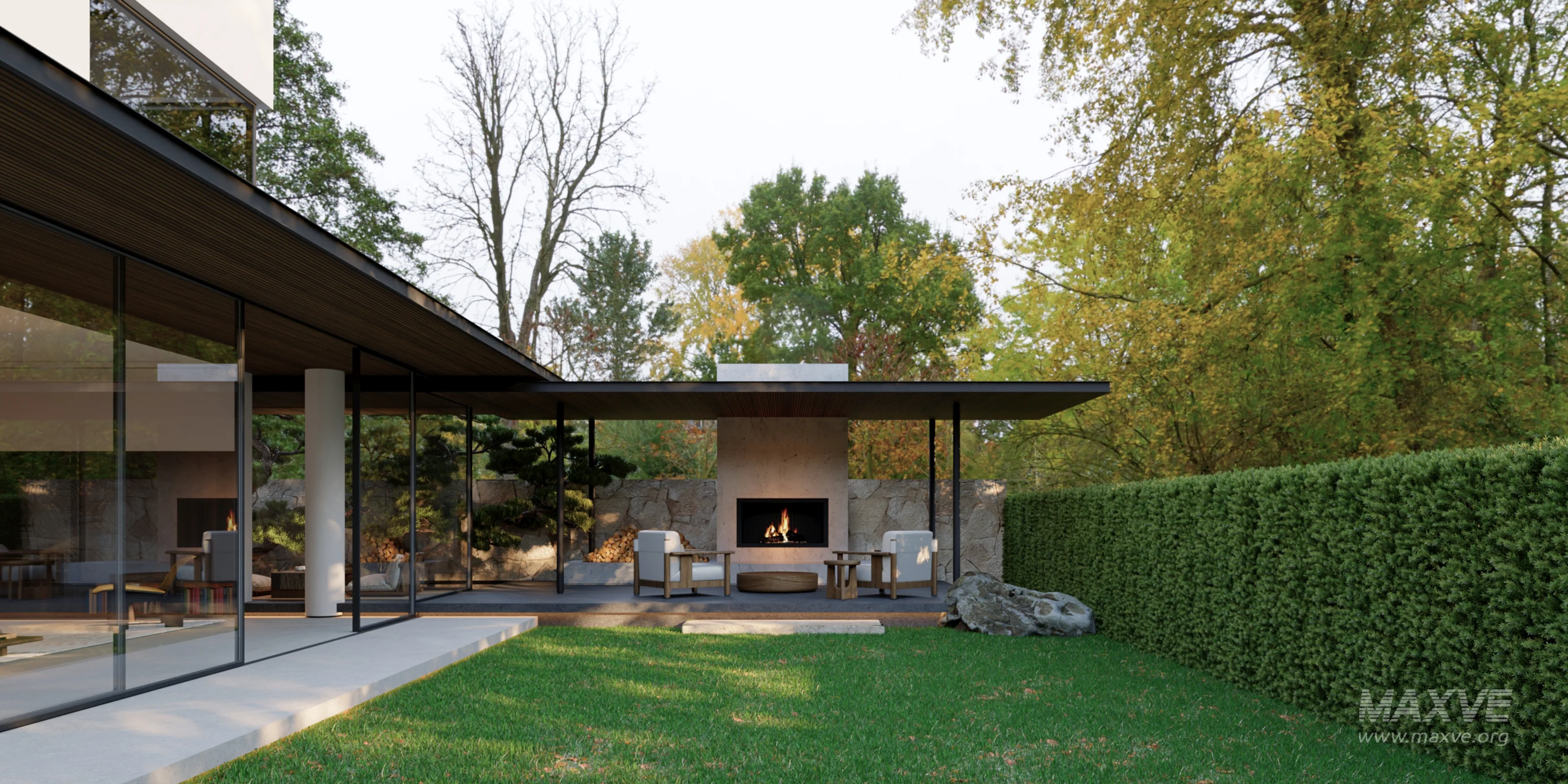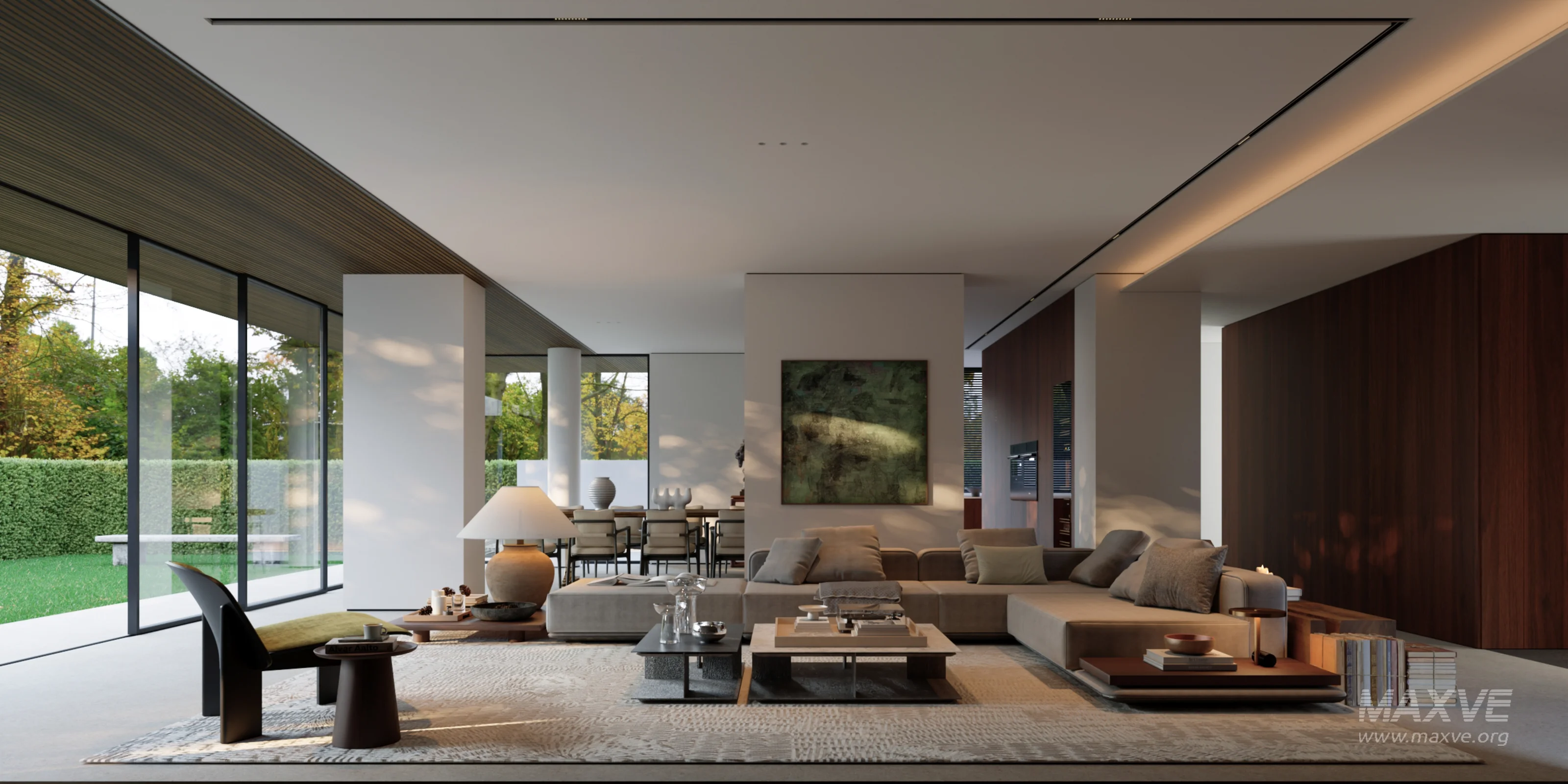Modern courtyard living room and dining room