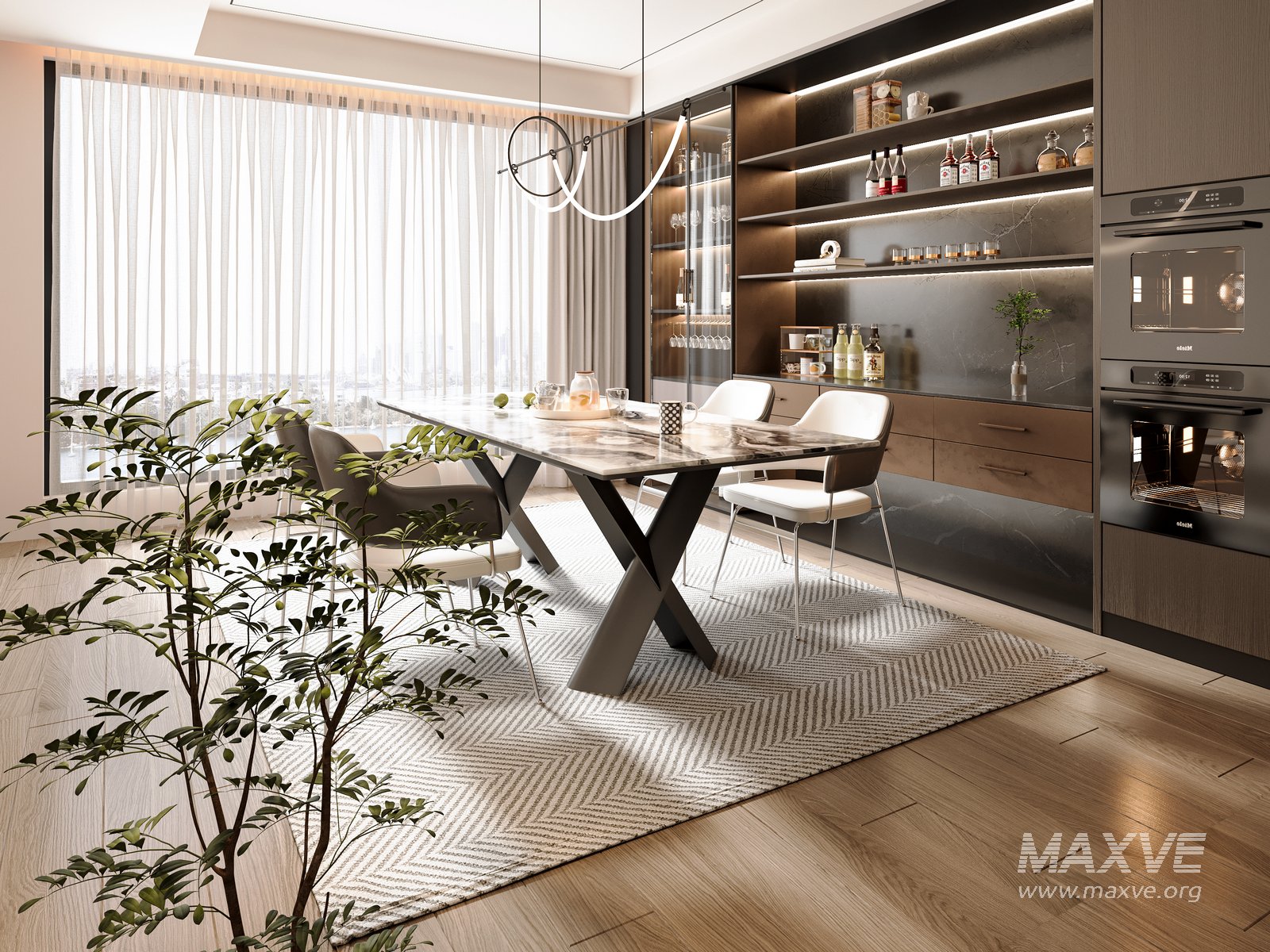This Modern dining room 3D scene was built in 3ds Max 2018 and rendered using Vray. It includes clean geometry, proper scene organization, and is optimized for smooth rendering performance. The model setup follows standard practices, making it easy to import and adapt into a variety of workflows. Delivered in MAX format, it is well-suited for architectural visualization, concept development, or design presentation.