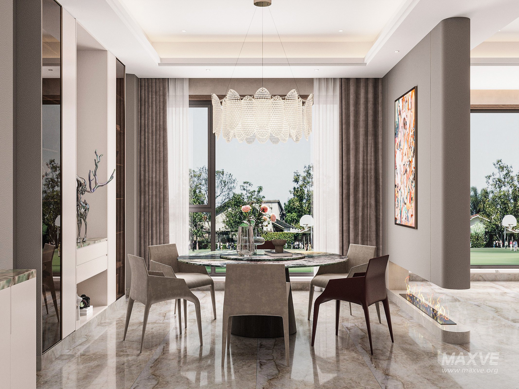 This Modern dining room 3D scene was built in 3ds Max 2018 and rendered using Vray. It includes clean geometry, proper scene organization, and is optimized for smooth rendering performance. The model setup follows standard practices, making it easy to import and adapt into a variety of workflows. Delivered in MAX format, it is well-suited for architectural visualization, concept development, or design presentation.