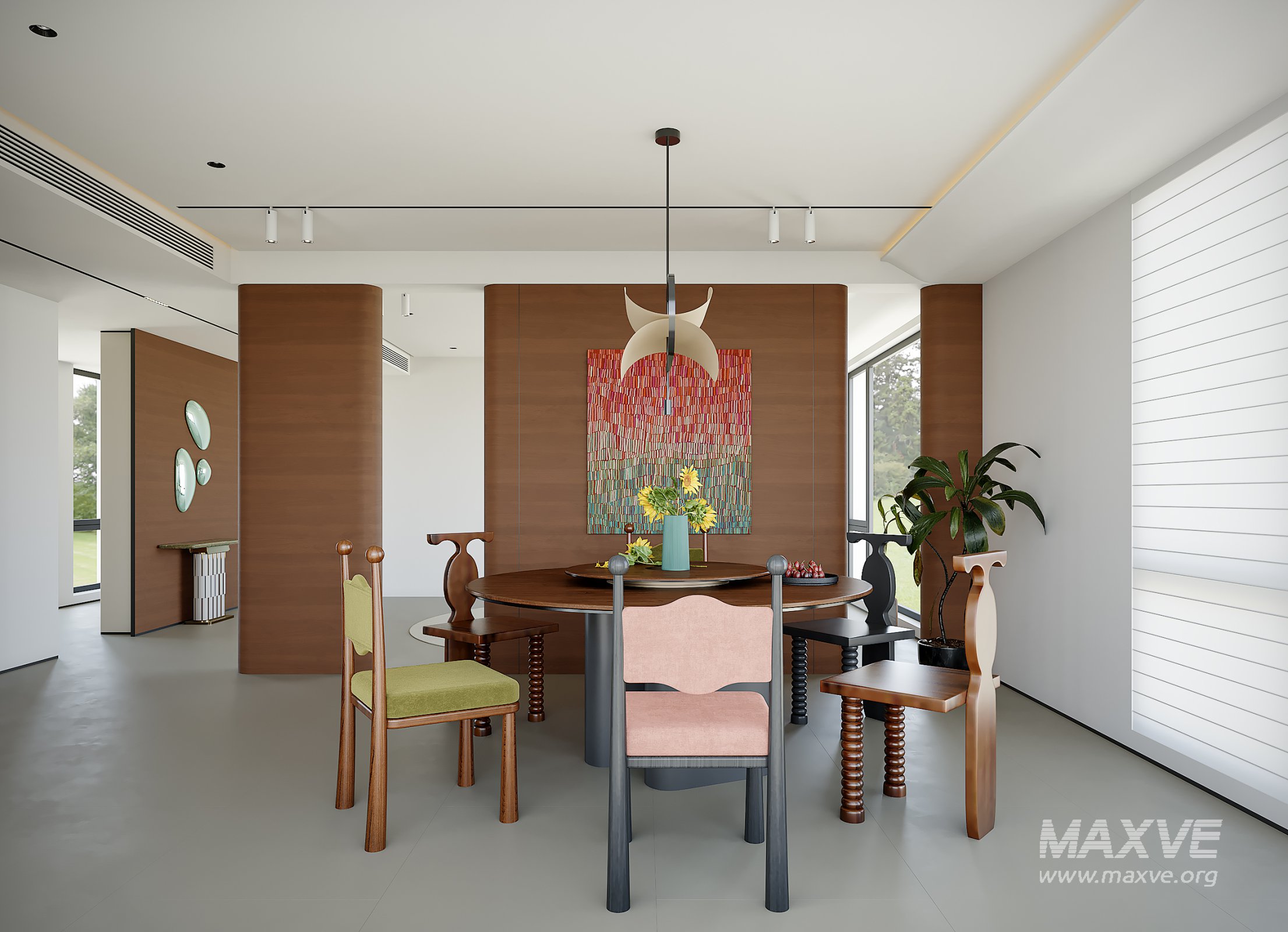 This Modern dining room 3D scene was built in 3ds Max 2018 and rendered using Corona. It includes clean geometry, proper scene organization, and is optimized for smooth rendering performance. The model setup follows standard practices, making it easy to import and adapt into a variety of workflows. Delivered in MAX format, it is well-suited for architectural visualization, concept development, or design presentation.