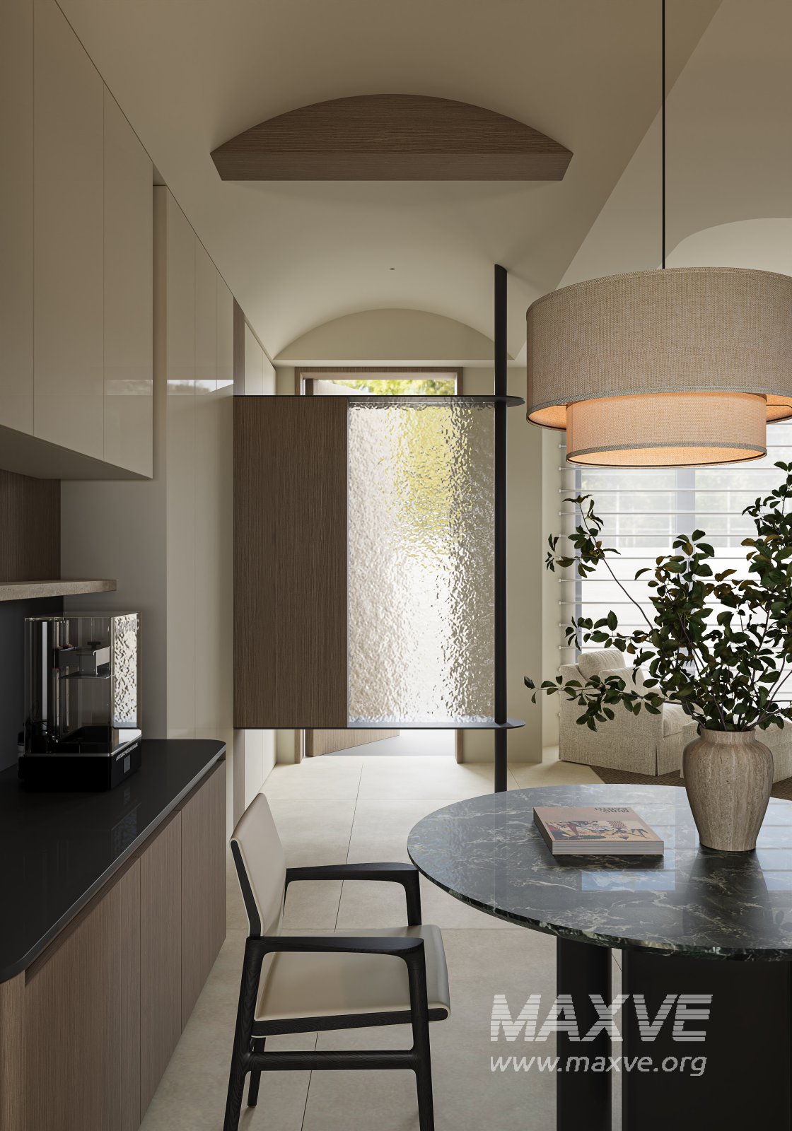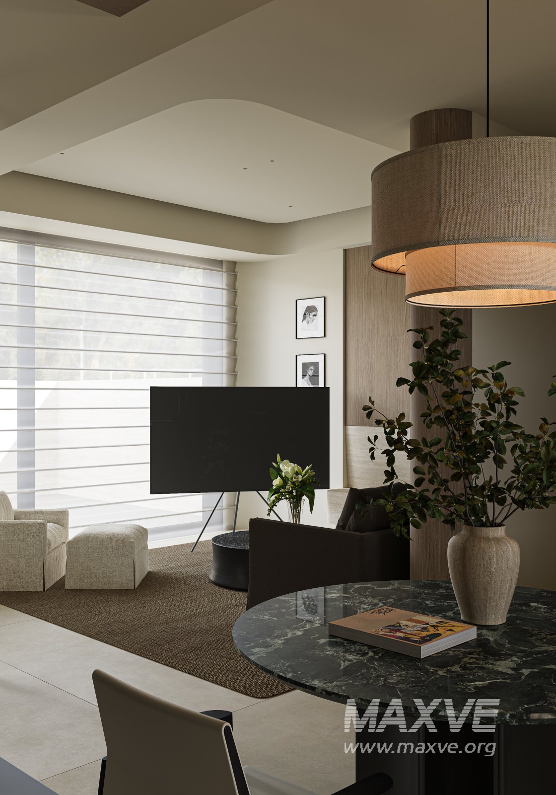 This Modern living and dining room 3D scene was built in 3ds Max 2021 and rendered using Corona. It includes clean geometry, proper scene organization, and is optimized for smooth rendering performance. The model setup follows standard practices, making it easy to import and adapt into a variety of workflows. Delivered in MAX format, it is well-suited for architectural visualization, concept development, or design presentation. Dominant color tones include: White tones, Beige tones, Silver tones.