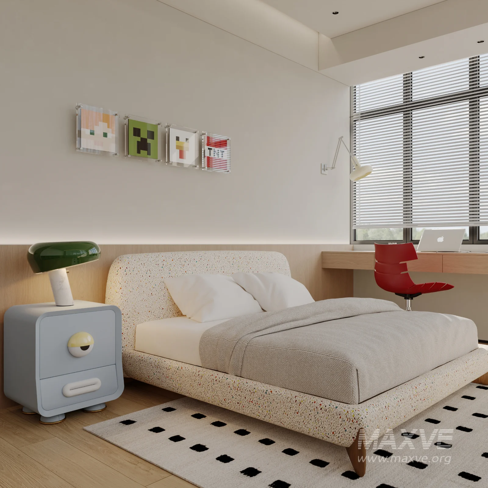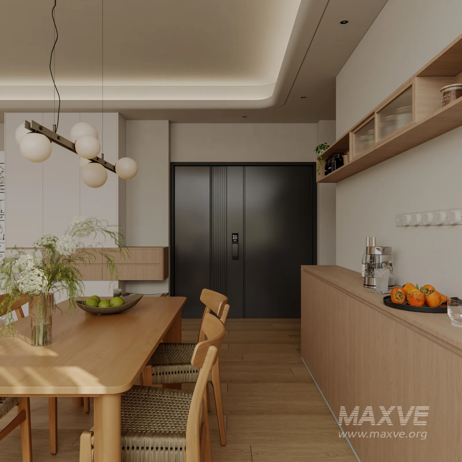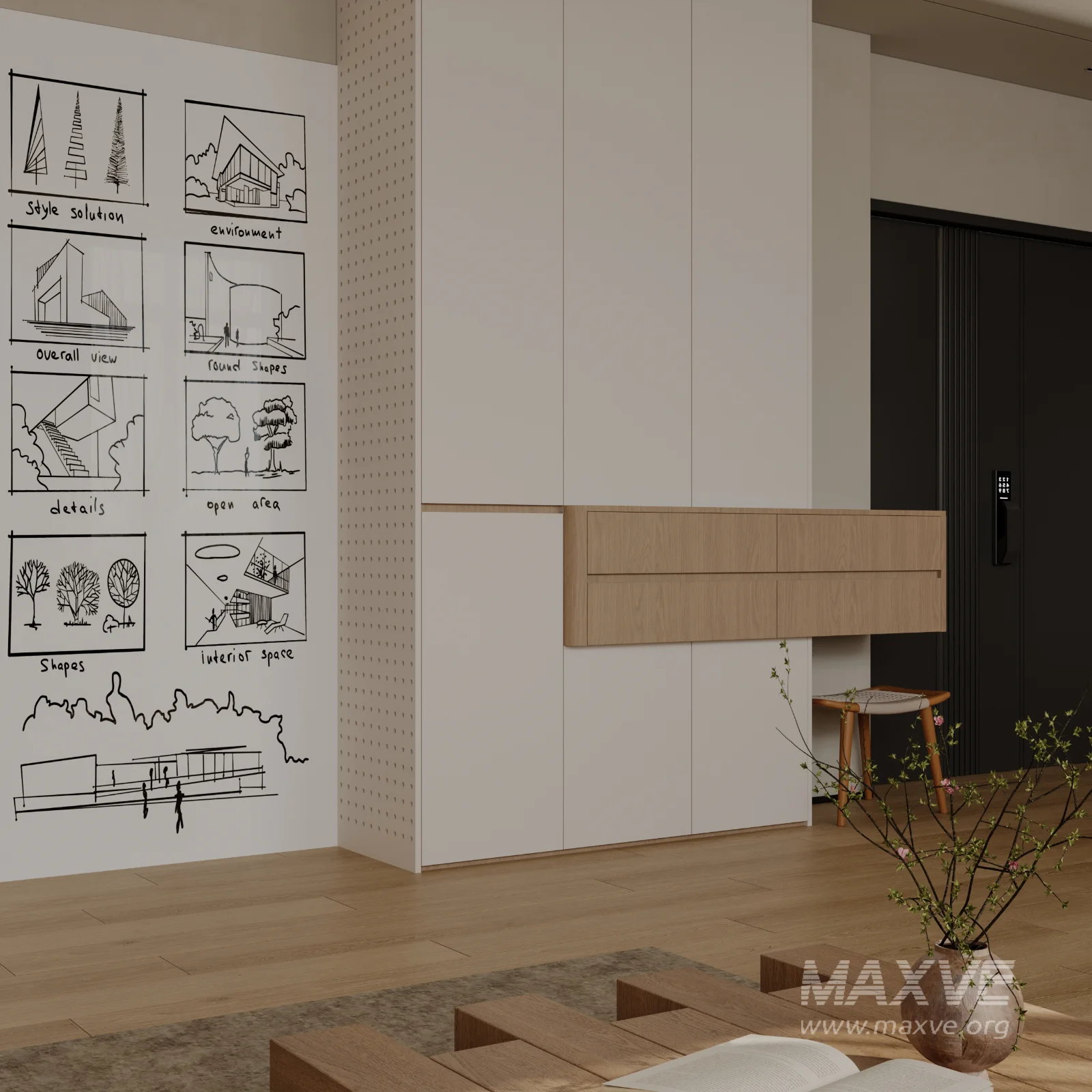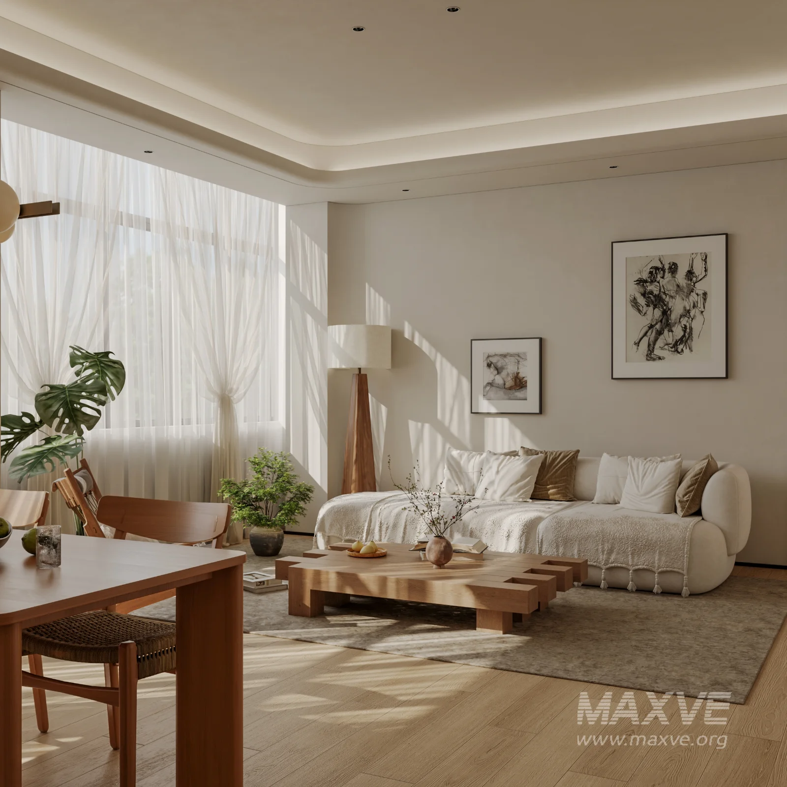 This Modern living and dining room bedroom 3D scene was built in 3ds Max 2021 and rendered using Corona. It includes clean geometry, proper scene organization, and is optimized for smooth rendering performance. The model setup follows standard practices, making it easy to import and adapt into a variety of workflows. Delivered in MAX format, it is well-suited for architectural visualization, concept development, or design presentation. Dominant color tones include: White tones, Beige tones, Silver tones.