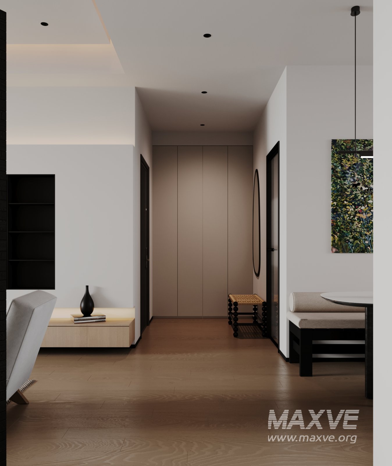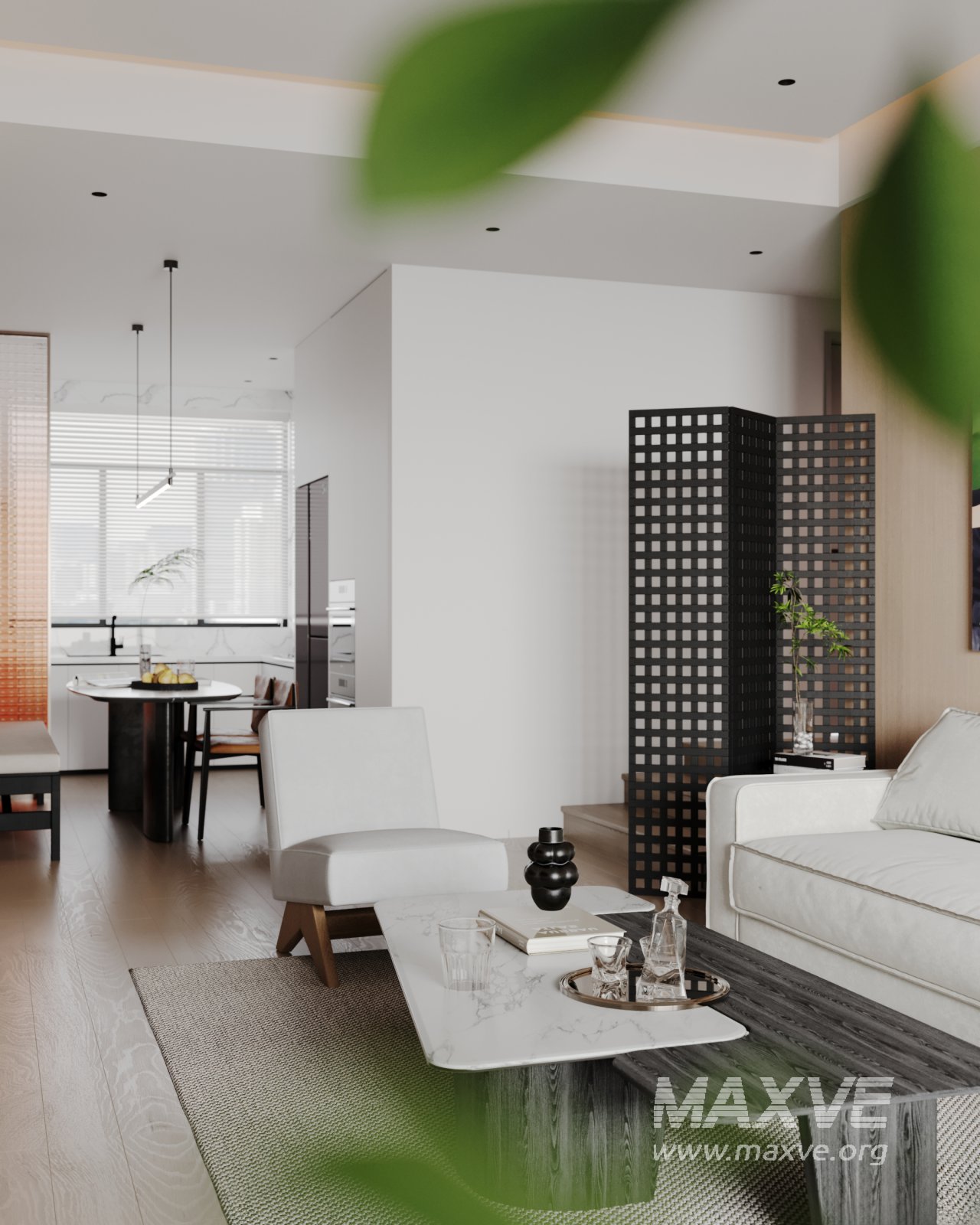 This Modern living room and dining room interior scene 3D scene was built in 3ds Max 2021 and rendered using Corona. It includes clean geometry, proper scene organization, and is optimized for smooth rendering performance. The model setup follows standard practices, making it easy to import and adapt into a variety of workflows. Delivered in MAX format, it is well-suited for architectural visualization, concept development, or design presentation. Dominant color tones include: White tones, Beige tones, Silver tones.